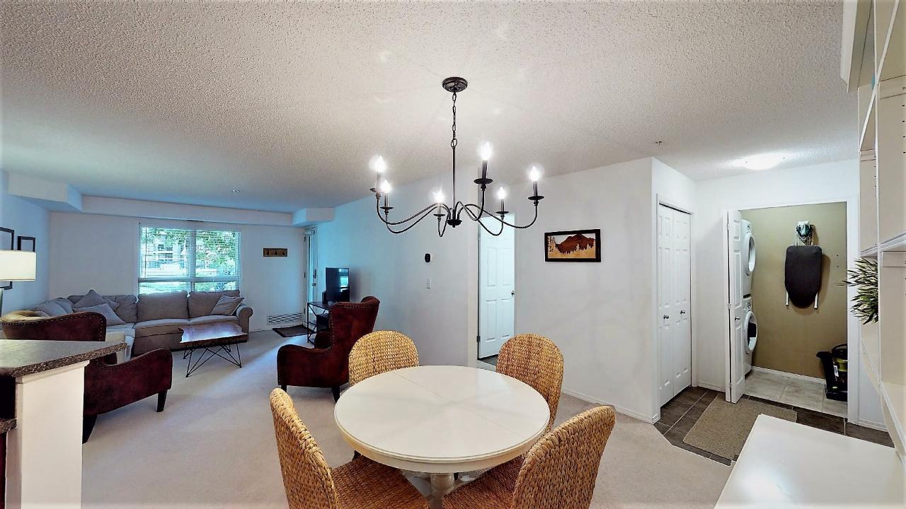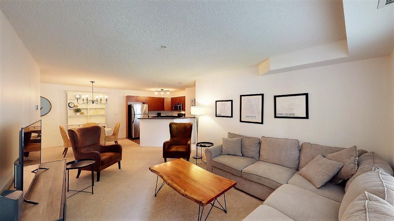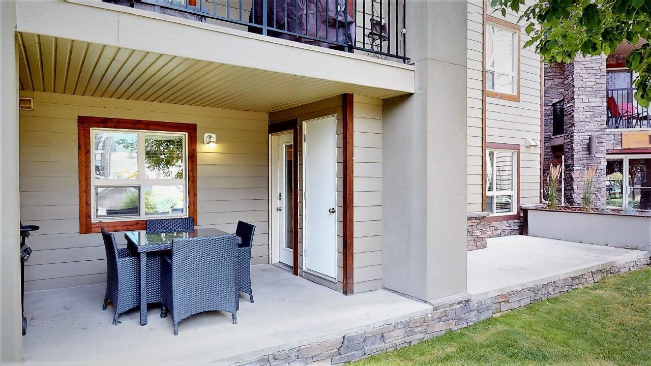 FULLY FURNISHED ground floor 2 bedroom, 2 bathroom condo with a RARE STORAGE LOCKER and a secured underground parking spot in the Bruce Building overlooking the courtyard at Lake Windermere Pointe . Enjoy easy access to the pool, hot tubs, fitness center right from your doorstep. Step out onto the covered patio and take advantage of indoor-outdoor living. Located near Lake Windermere, this property offers both convenience and charm. You'll find restaurants, stores, and more within reach. Outdoor enthusiasts will appreciate being just a block away from Lake Windermere and James Chabot beach, as well as being surrounded by top-notch golf courses and skiing opportunities in the Columbia Valley. This property is incredibly versatile. Whether you're looking for a full-time residence, a vacation home, or an investment opportunity, Lake Windermere Pointe has you covered. With a solid track record as a vacation rental hotspot, this could be an excellent income-generating option when you're not using it personally. Don't miss out on the chance to explore this fantastic property. Contact your REALTOR(R) today to schedule a viewing and discover the possibilities that this property offers. Click on Play/3D Showcase for a 3d tour. (id:22211)