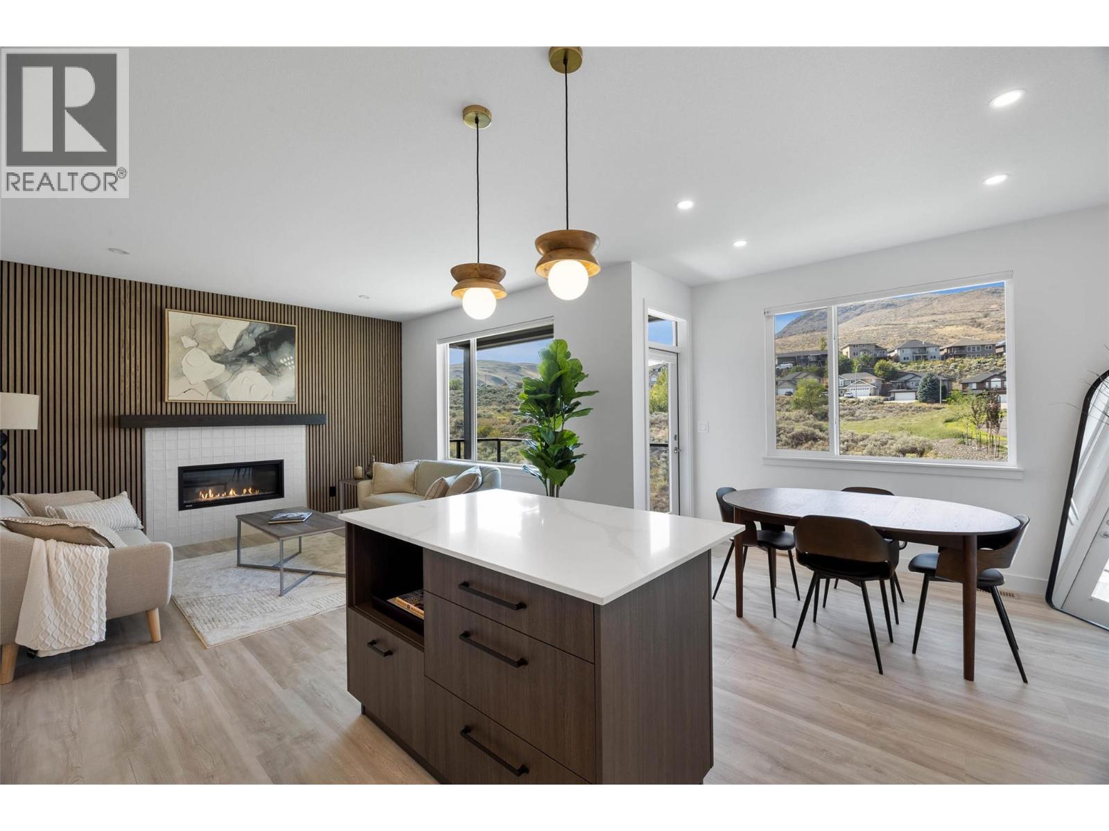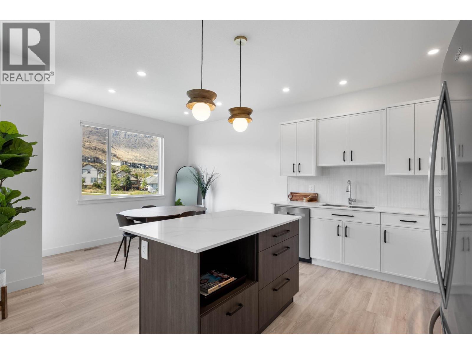 Mesa Ridge is an exclusive community of 56 thoughtfully designed duplex-style homes set in the scenic hills of Batchelor Heights. This brand-new 2-storey half duplex showcases a bright, open-concept main floor with expansive windows that flood the space with natural light. The kitchen, dining, and living areas connect seamlessly, creating a comfortable flow for both everyday living and entertaining. With 3 bedrooms and 3 bathrooms, including a spacious primary suite with a private ensuite, the layout is designed for comfort and functionality. Interior finishes highlight timeless craftsmanship with a walnut slat accent wall, quartz countertops, and quality cabinetry from Excel Industries. Laminate flooring brings a modern touch to main living areas, plush carpet adds warmth to bedrooms, and tile ensures durability in bathrooms. The basement provides flexibility for future development whether a rec room, home office, or guest suite. Additional features include a double-car garage and a low-maintenance yard for added convenience. Just minutes from schools, parks, hiking trails, and all Kamloops amenities, Mesa Ridge offers the ideal blend of modern design, hillside tranquility, and community living. (id:61201)