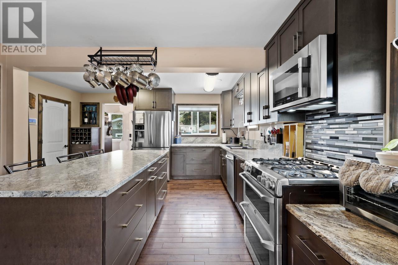 Welcome to 520 Mackenzie Avenue, this adorable 3 bedroom home has undergone a beautiful transformation in the last 5 years. Main floor renovation includes, flooring, custom eat-in kitchen, 2 bathrooms, xeriscaping, many windows, sewer main, HE furnace, HWT, insulation & more. Enter the home into a sunny entryway leading to an open concept living space with large custom kitchen, hardwood flooring and cozy living room finding the perfect balance between stunning renovations all while maintaining the charm of this 1950s house. The spacious primary bedroom features a beautifully renovated ensuite and large closet. Laundry and a second full bath on the main floor makes this true one level living. The basement was finished with 2 other bedrooms /dens and the backyard features a detached shop and additional parking. This corner lot sides onto Yew street park and is right at the centre of the vibrant Shore community, steps to Bright Eye Brewing and 5 Bean Bar. (id:22211)