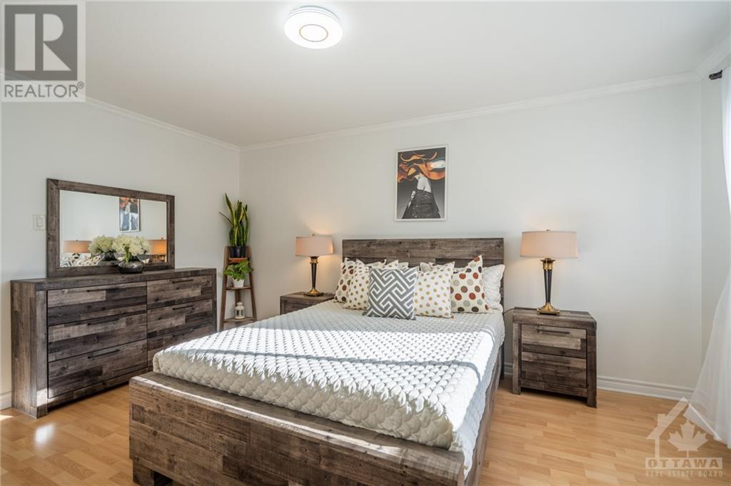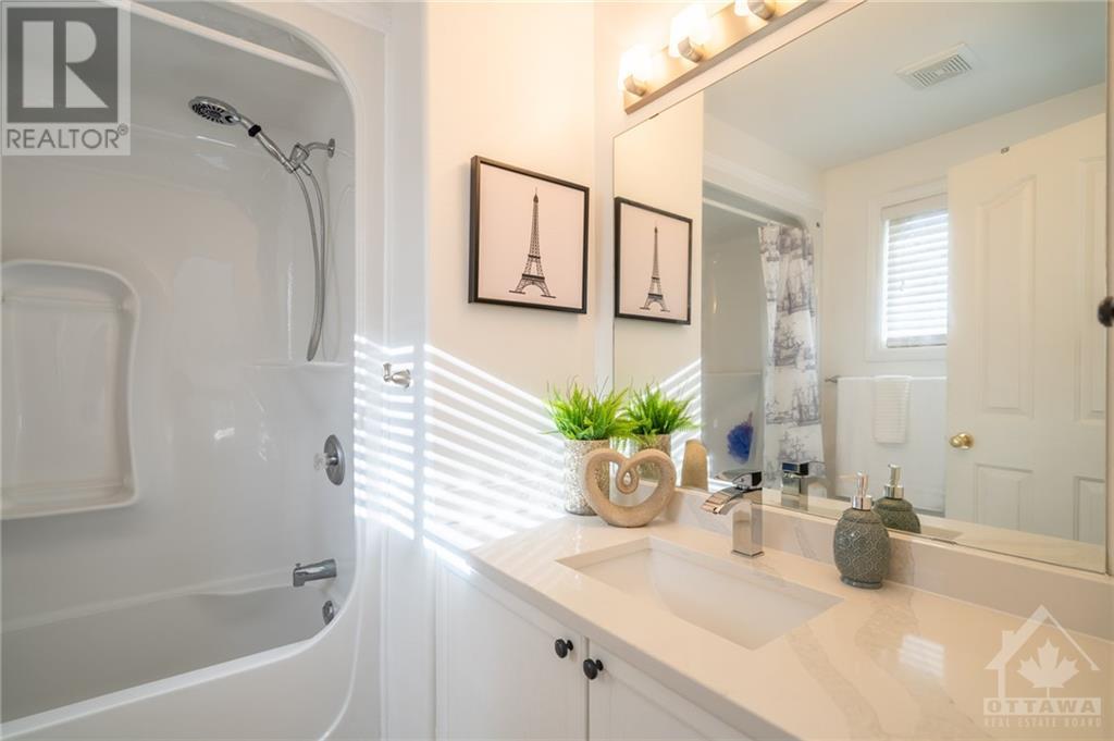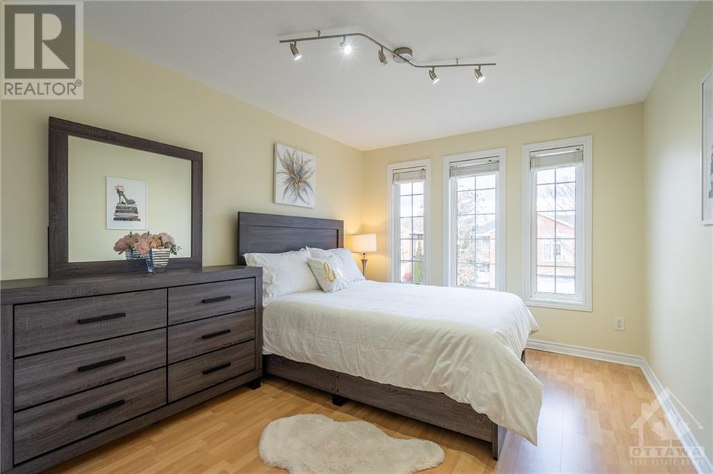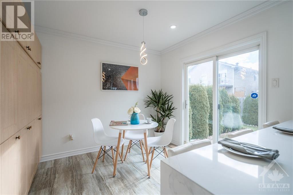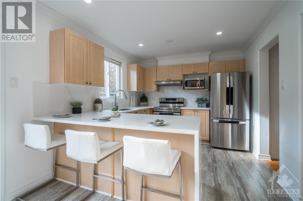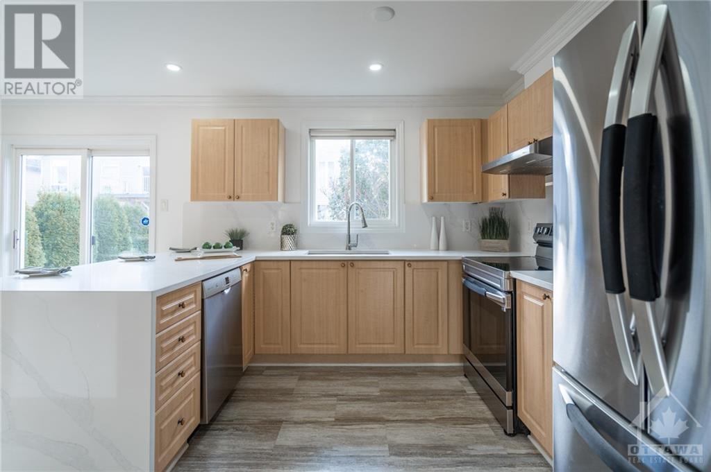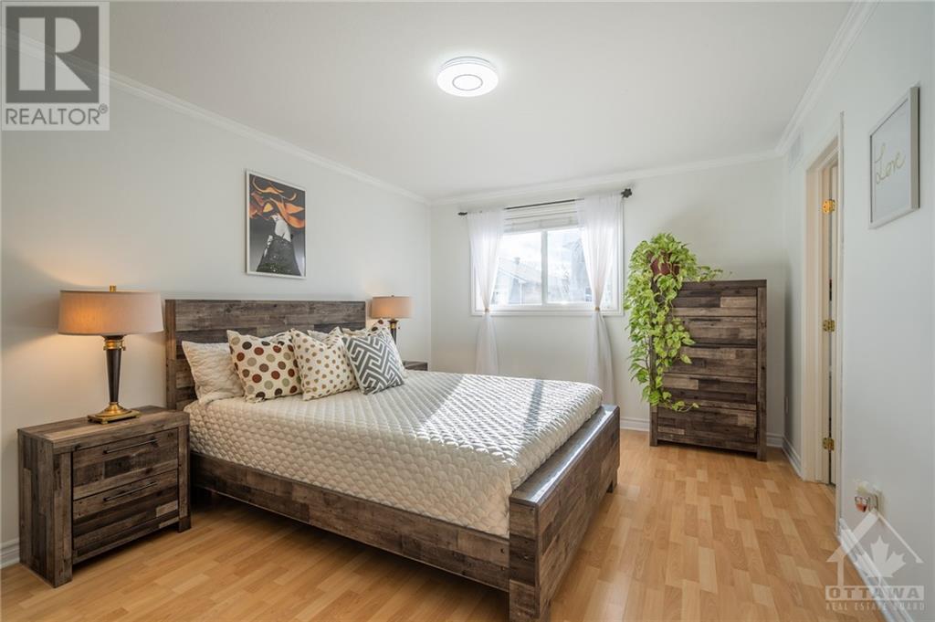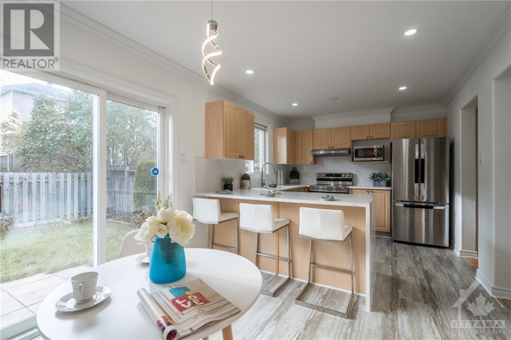 Great Location! East facing! Meticulously maintained END UNIT townhome located in sought-after Morgan's Grant neighborhood, close to Two parks and schools (200m), South March Trails (300m). Kitchen with BRAND NEW countertop, waterfall and backsplash with the popular Calacatta Quartz offers a bright eating area and a patio door leads to a beautiful, landscaped backyard with natural Cedars fencing and perennials. Hardwood main floor and premium laminate on upper floor. Crown moldings in kitchen, living and master. New pot lights throughout the main floor and stairway. Master bedroom with ensuite and WIC and another bedroom offers a balcony, ideal for morning coffee. Basement has a gorgeous vinyl flooring. Roof (2016), Nest thermostat, BRAND NEW furnace (two stage 96%), undermount sinks and Faucets (kitchen, two bathrooms), dishwasher, Refrigerator, Range with Air Fryer, hood fan (650 cfm), washer all installed in September 2021. Move-in Ready! (id:22211)