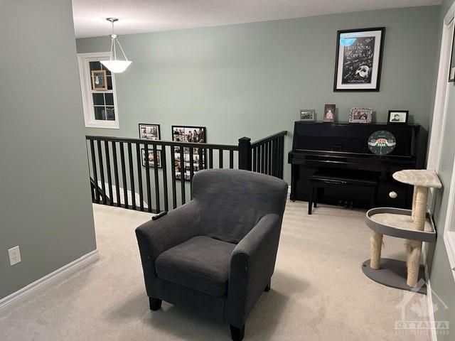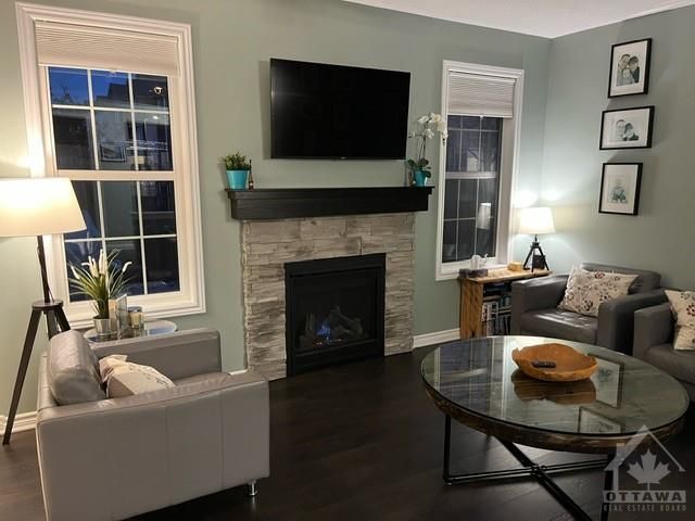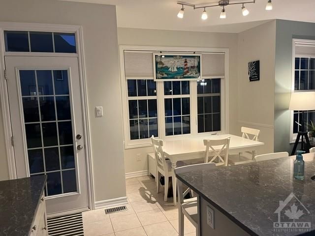 Flooring: Tile, Stunning single-family detached home in Kanata's desirable Monahan Landing, built in 2017 by Mattamy (The Waterside model). This spacious home boasts a 2-car garage with insulated doors and WiFi-enabled openers. The main level features a large open-concept layout, a private office, a gourmet kitchen with upgraded cabinets, quartz counters, and a breakfast bar, plus an eat-in area. Enjoy a cozy family room with a gas fireplace, a dining room, and a 2-piece bathroom. Upstairs, discover 4 bedrooms, a versatile loft, a luxurious primary suite with a 5-piece ensuite and walk-in closet. The professionally finished basement includes a rec room and 3-piece bath and additional bedroom. Upgrades galore: 9’ ceilings, low-maintenance yard, perennial garden, and a cellular security system. Steps to parks, top schools, transit, and shopping. This is one of the largest model in the community—don’t miss out! Desired closing in summer 2025...enjoy today's prices at next year interest rates., Flooring: Hardwood, Flooring: Laminate