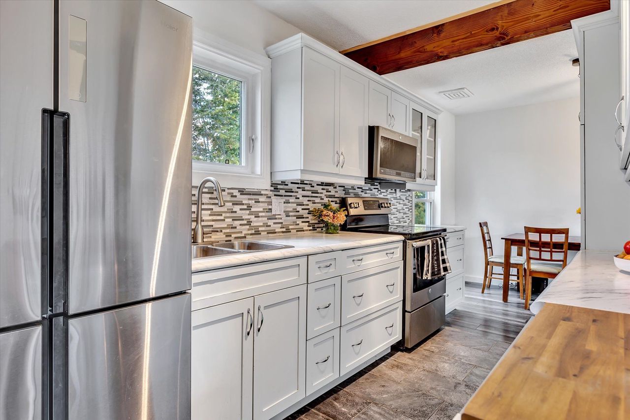 Come, check out this rare chalet-style home on a quiet cul-de-sac in the sought-after Sturgeon Lake community. This is the closest you can be to owning on the lake without the added costs and work! Sunny, breezy outdoor living on your large double lot and expansive decks. Plus, tall trees & perennial flowers surround you, with a very hard-to-find setting of no visible neighbours on 3 sides. Extensive upgrades include new 4 pc bath (2022), dishwasher/fridge (2022), windows (2017), new septic tank & bed (2016). Top of the line Napoleon wood stove for those cosy winter nights.