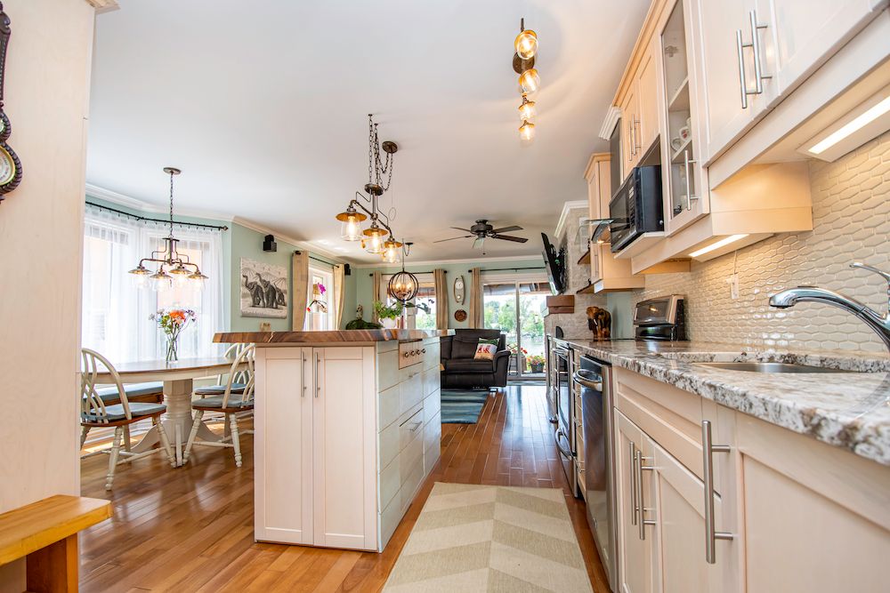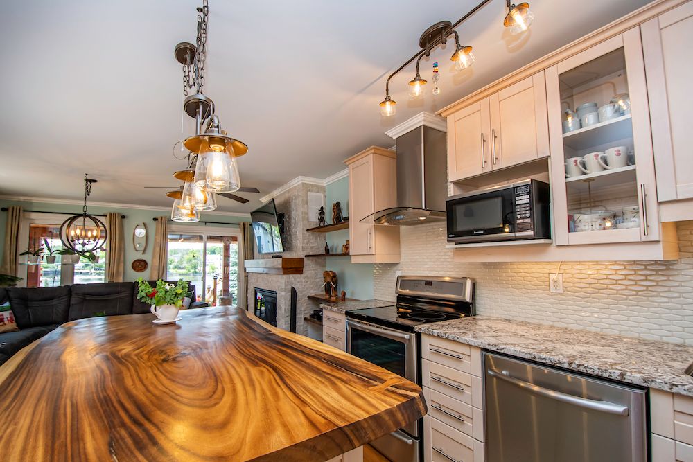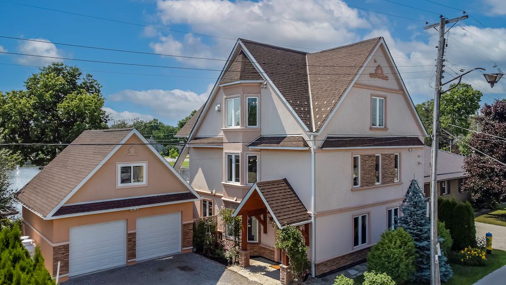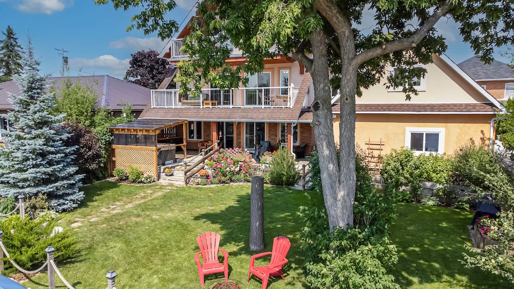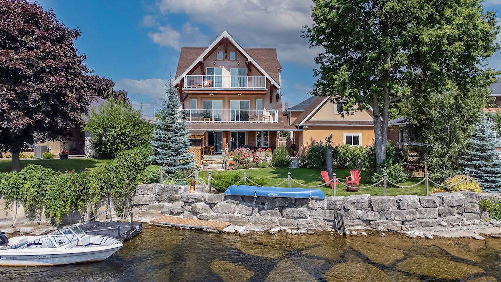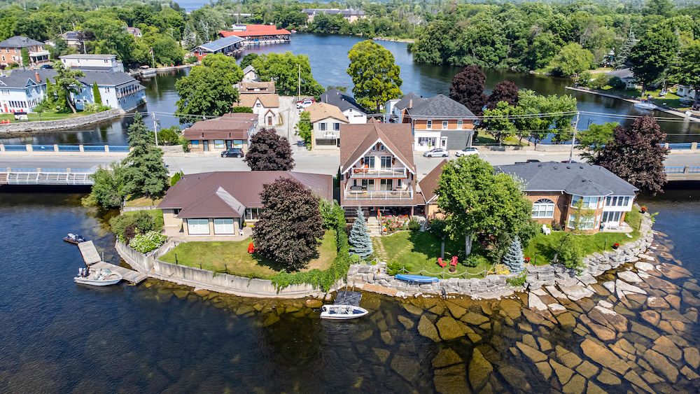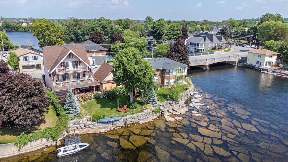 Enjoy breathtaking western sunset views from this spectacular 2819 sq ft, 3 storey lake house/legal duplex. Built in 2014, offers everything a discriminating buyer could want, all in the heart of downtown Bobcaygeon! This stunning 4+ bedroom, 3 kitchen, 5 bathroom home has a detached heated double garage with finished loft area for extra sleeping. Bright open concept kitchen/LR/DR with quartz countertops & a custom island with stunning Acacia wood countertop. Gleaming birch hardwood floors on main level, custom cabinetry, light filled rooms with walkouts & views to gorgeous rear yard overlooking Big Bob Channel & Sturgeon Lake. There are 2 H.E. furnaces with Wi-fi smart thermostat on each floor with remote access, 2 central a/c units New HWT's (2022), central vac on every level, highly efficient home. 3 fireplaces. 2 upper decks. Private floating dock. Property is zoned C1 with unlimited possibilities but currently used as Residential only.