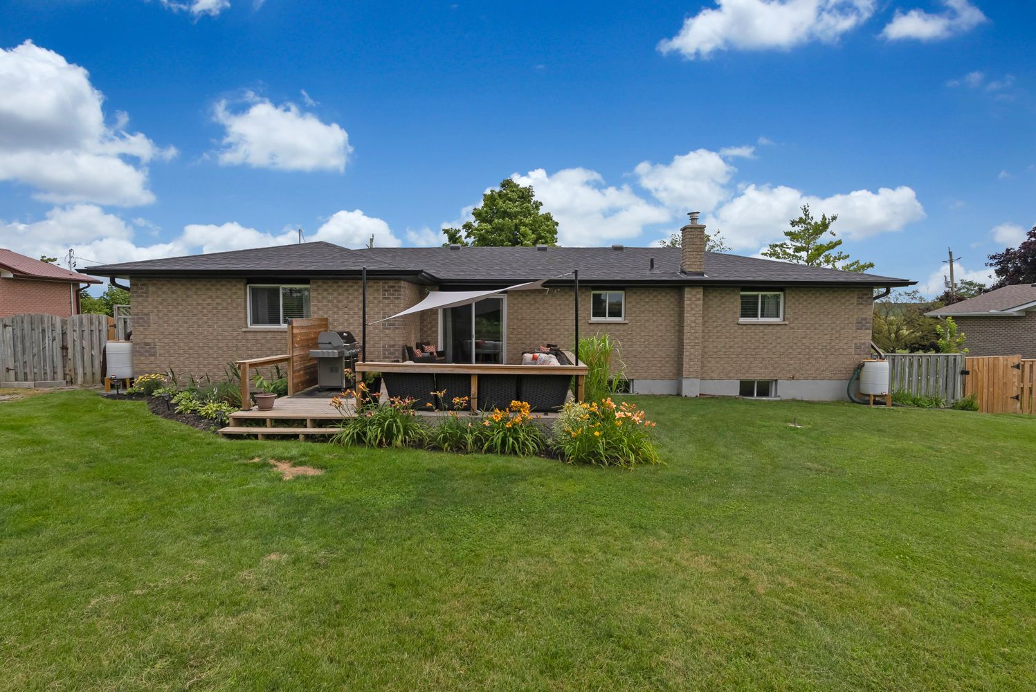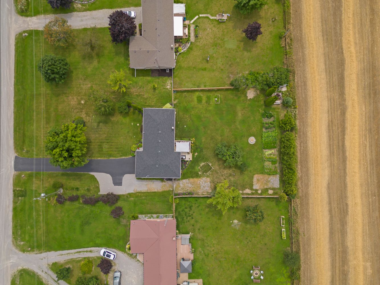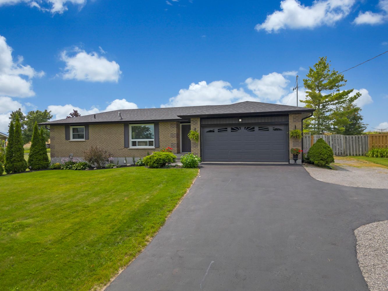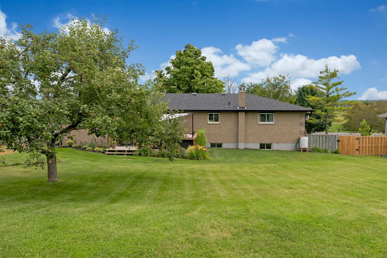 This Updated 3 Bedroom Bungalow, backs onto picturesque farmers fields situated on just under 1/2 an acre. Open concept main floor with new floors, bright white kitchen, dining space and coffee bar with walk-out to the rear deck. Living room with large windows, primary bedroom with walk-in closet and 3pc ensuite. 2 additional good sized bedrooms both with walk-in closets. The lower level features new gas fireplace and shiplap, 2 pc bath combined with laundry, amble storage and workshop space. Large yard with apple trees, garden beds, fire-pit and deck to sit and watch the sunset. Country living, close to all commuter routes! Natural Gas Heat, Generlink and Generator, Lots of upgrades inside and out!