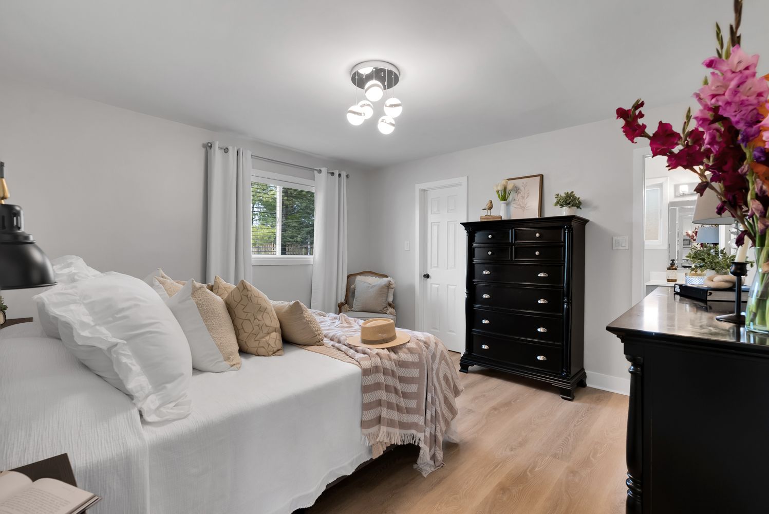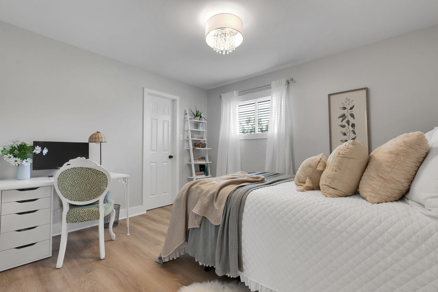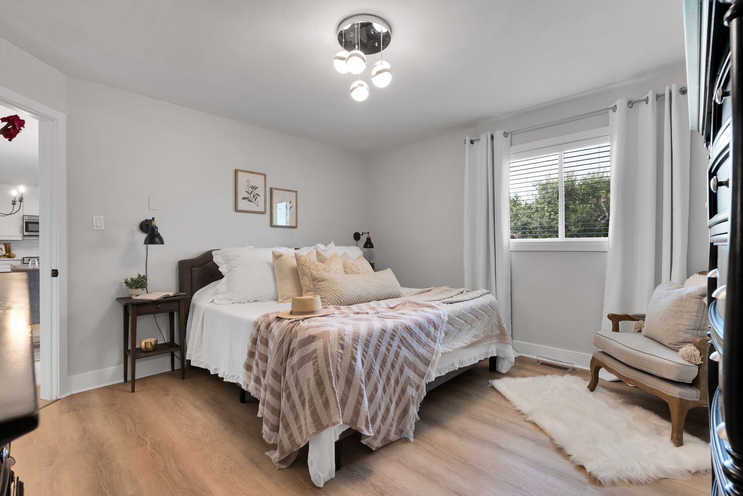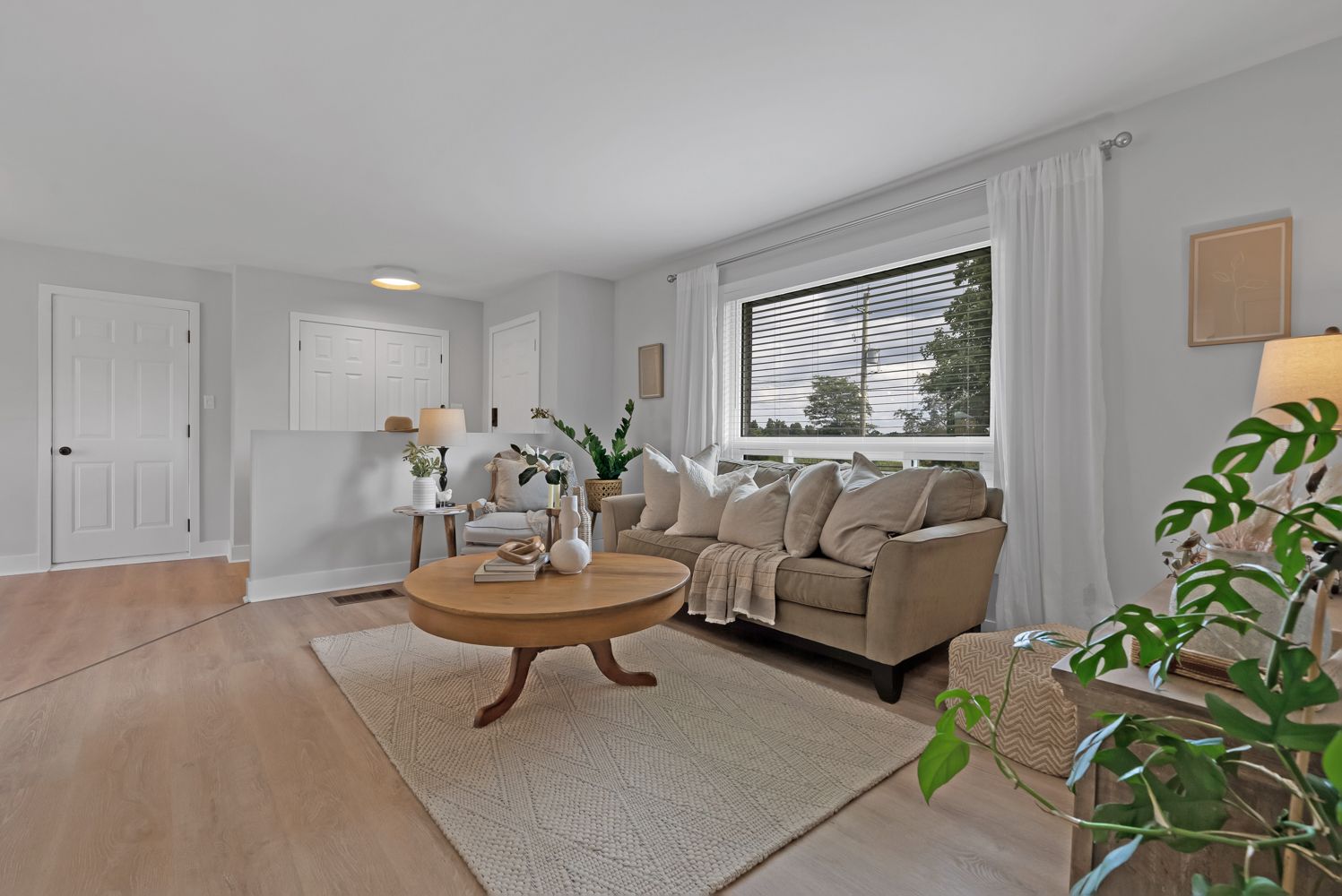 This Updated 3 Bedroom Bungalow, backs onto picturesque farmers fields situated on just under 1/2 an acre. Open concept main floor with new floors, bright white kitchen, dining space and coffee bar with walk-out to the rear deck. Living room with large windows, primary bedroom with walk-in closet and 3pc ensuite. 2 additional good sized bedrooms both with walk-in closets. The lower level features new gas fireplace and shiplap, 2 pc bath combined with laundry, amble storage and workshop space. Large yard with apple trees, garden beds, fire-pit and deck to sit and watch the sunset. Country living, close to all commuter routes! Natural Gas Heat, Generlink and Generator, Lots of upgrades inside and out!