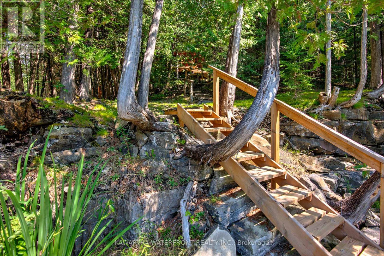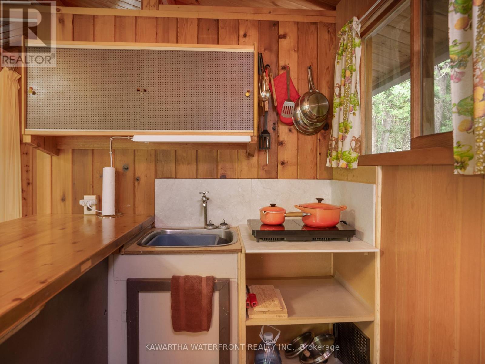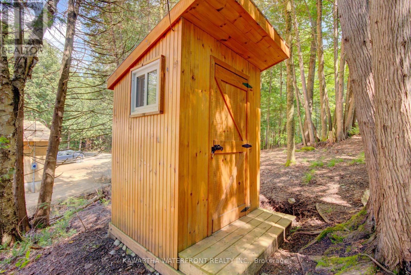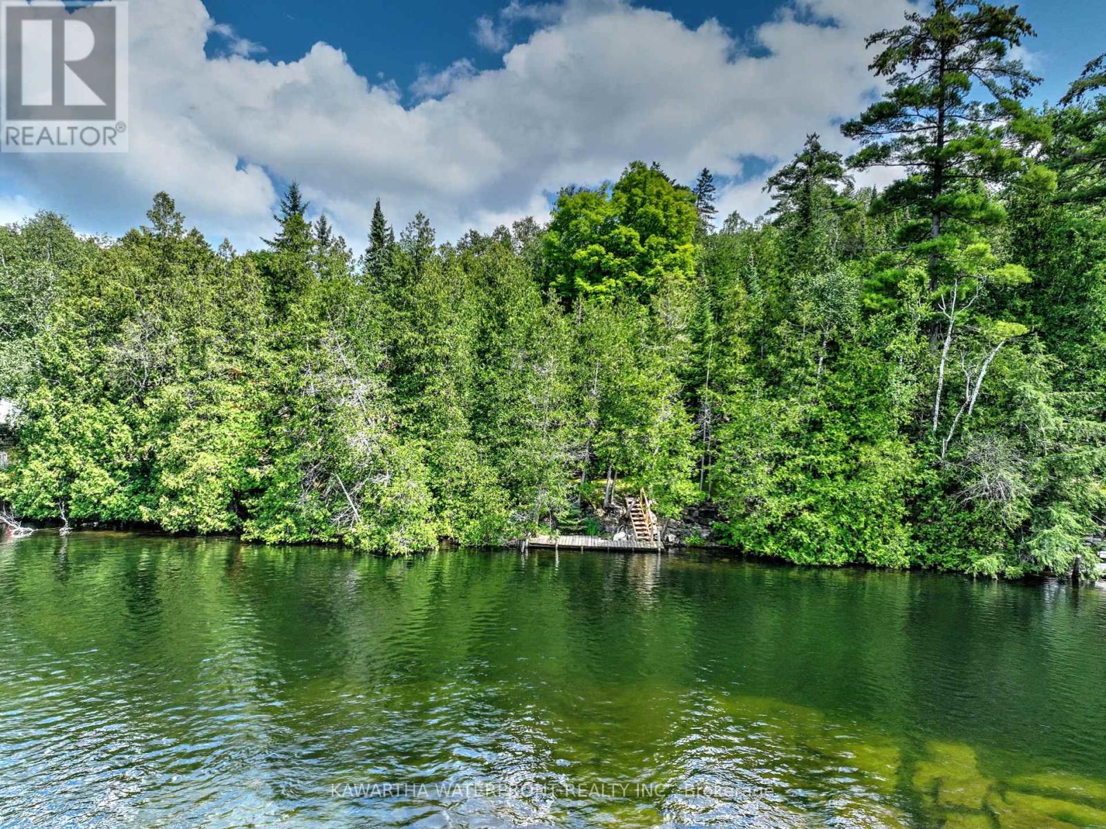 This charming 3-season chalet-style cottage on the southern Gull River section of the Shadow Lake System was designed and built by the original owners and has been in the same family for over 50 years. It has cedar siding and ceilings, large picture windows, open-concept living, kitchen and dining areas and two bedrooms, with heating provided by portable electric heaters and a wood stove. A verandah, deck and stone patio wrap around the cottage and provide views of the wooded lot and the river. The 0.35 acre property features 100 ft of waterfront and has a large sturdy dock for boating and recreation. The gentle current provides for safe swimming in the crystal-clear water as well as fishing and tubing down the river. The location of the cottage is idyllic as it resides on the widest part of the river with no cottages on the opposite shore. This property will appeal to those longing to re-acquaint themselves with the wonders of nature, while providing the option for future expansion.**** EXTRAS **** Recent enhancements (2020) include a new deck, verandah, stairs to the waterfront and outhouse. A site survey was also completed in 2020. It is a short 5-minute drive to amenities in Coboconk. (id:22211)
