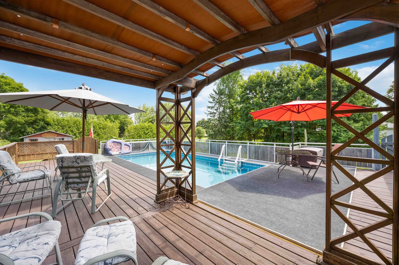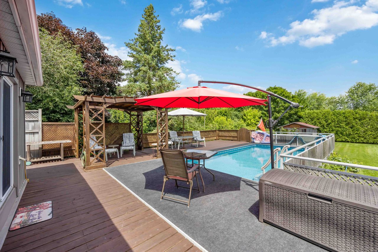 Visit REALTOR website for additional information. Lovely 4 level backsplit on large lot (nearly 1/2 acre) in desired waterfront community of Pleasant Point just steps to the lake. Quiet court, family friendly. 20 minutes to Port Perry or Lindsay. Walk to park or boat launch. Large deck surrounds the pool area. Fun & relaxing for whole family. Kitchen features backsplash, pot lights, SS appliances & pantry.Living room w hardwood & picture window. Large primary BR w 4 pc ensuite & w/out to deck & pool. Lower level family room w fireplace & stone surround. Games room w pool table. Municipal water. Steel Roof. Very well maintained. Must see!