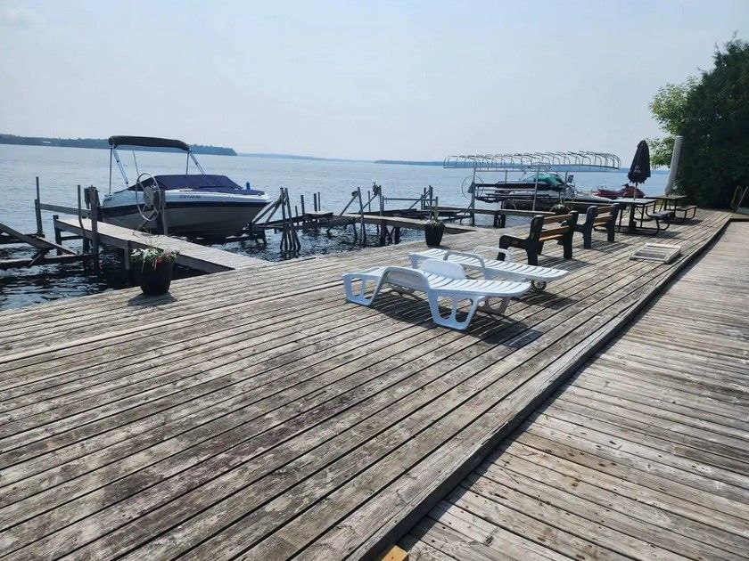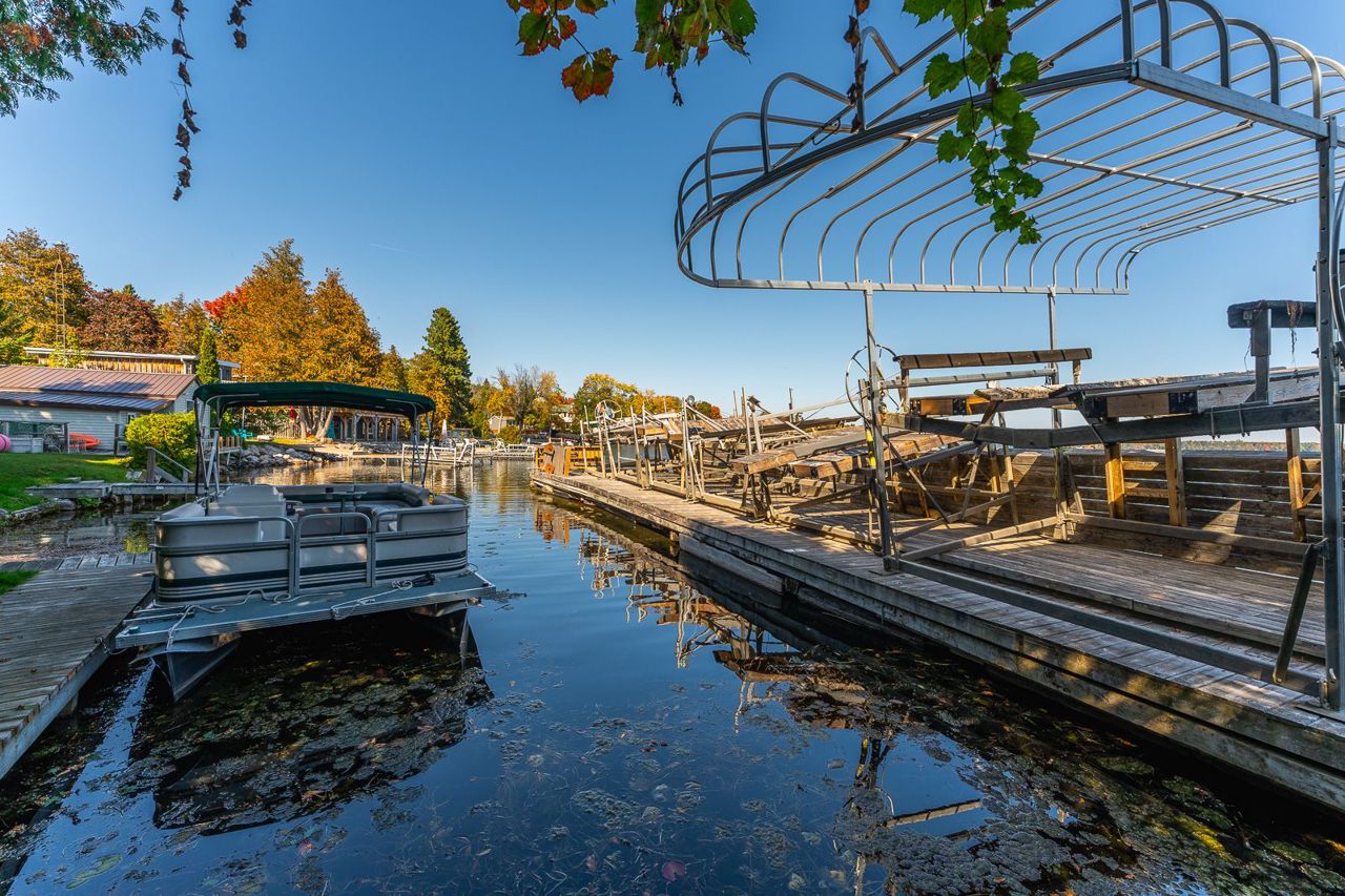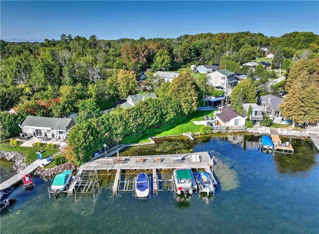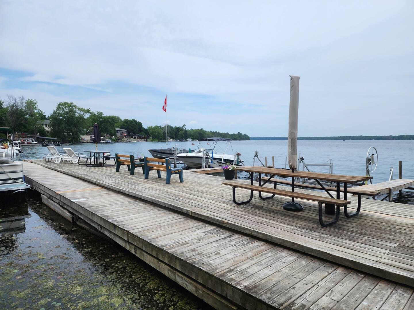 Welcome to this beautiful, 2 residence property with deeded access to Balsam Lake w/private slip! This property is comprised of 2 separate residences, w/separate hydro meters, 200 amp service & propane tanks, making it perfect for a large family, multiple families, a rental or investment. Step inside to this beautiful renovated Front cottage that boasts a new steel roof, renovated 4pc bthrm, kitchen w/quartz counter tops & stainless steel appliances, all new windows, fireplace in living rm, 2 bdrms & 1 bath. Cottage has spray foam insulation and a new heat pump for max efficiency. New laundry rm for convenience. Step outside to its own private porch. Head on over to the 2nd & back cottage, which feats a fireplace in the living rm, kitchen w/granite counter tops & a sunroom w/lrg vaulted ceilings & lrg windows. 3 Bdrms await your family or guests, along w/ a powder rm & full bath. Step outside onto the wrap around porch with 2 tiered deck & high top seating for4 people & a fire pit. Extra storage can be found in the crawl space under the back cottage. The piece de resistance? Just a few steps away is deeded access to your very own boat slip with lift & seating area! 12 car parking!!