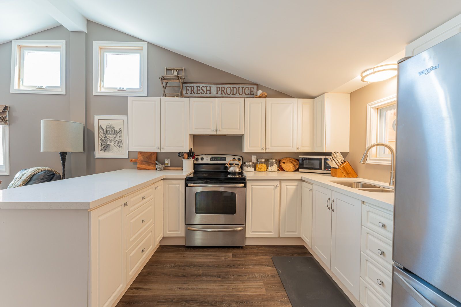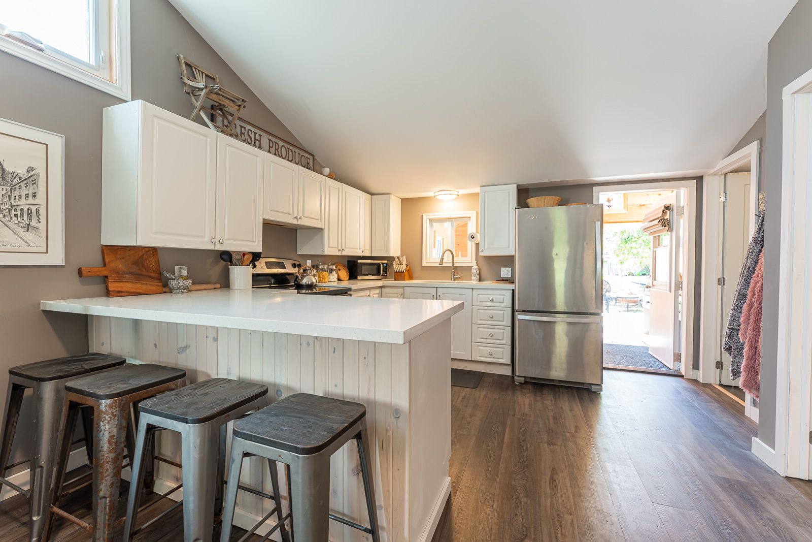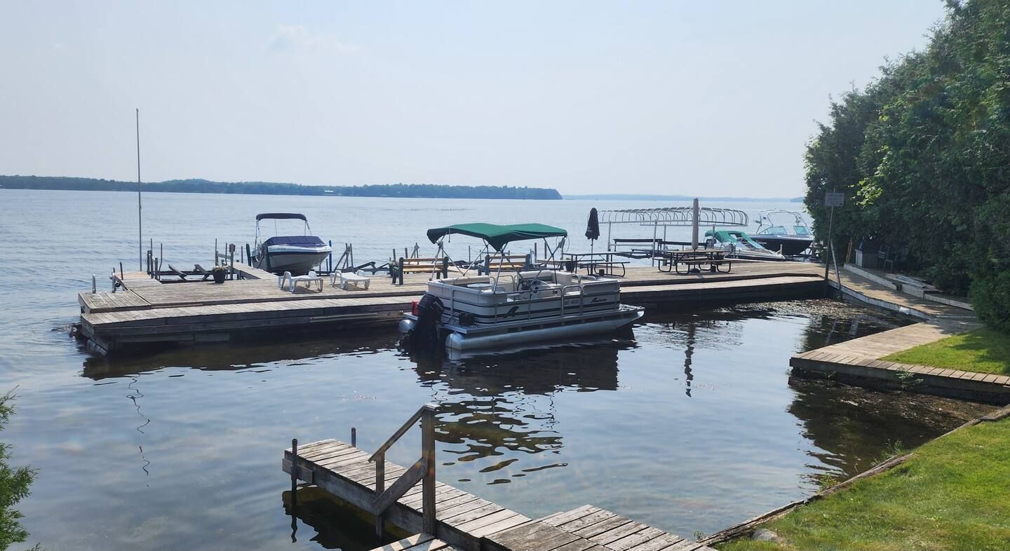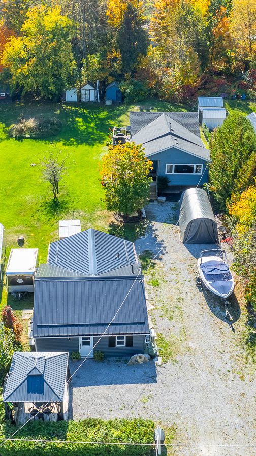 Welcome to this beautiful, 2 residence property with deeded access to Balsam Lake w/private slip! This property is comprised of 2 separate residences, w/separate hydro meters, 200 amp service & propane tanks, making it perfect for a large family, multiple families, a rental or investment. Step inside to this beautiful renovated Front cottage that boasts a new steel roof, renovated 4pc bthrm, kitchen w/quartz counter tops & stainless steel appliances, all new windows, fireplace in living rm, 2 bdrms & 1 bath. Cottage has spray foam insulation and a new heat pump for max efficiency. New laundry rm for convenience. Step outside to its own private porch. Head on over to the 2nd & back cottage, which feats a fireplace in the living rm, kitchen w/granite counter tops & a sunroom w/lrg vaulted ceilings & lrg windows. 3 Bdrms await your family or guests, along w/ a powder rm & full bath. Step outside onto the wrap around porch with 2 tiered deck & high top seating for4 people & a fire pit. Extra storage can be found in the crawl space under the back cottage. The piece de resistance? Just a few steps away is deeded access to your very own boat slip with lift & seating area! 12 car parking!!
