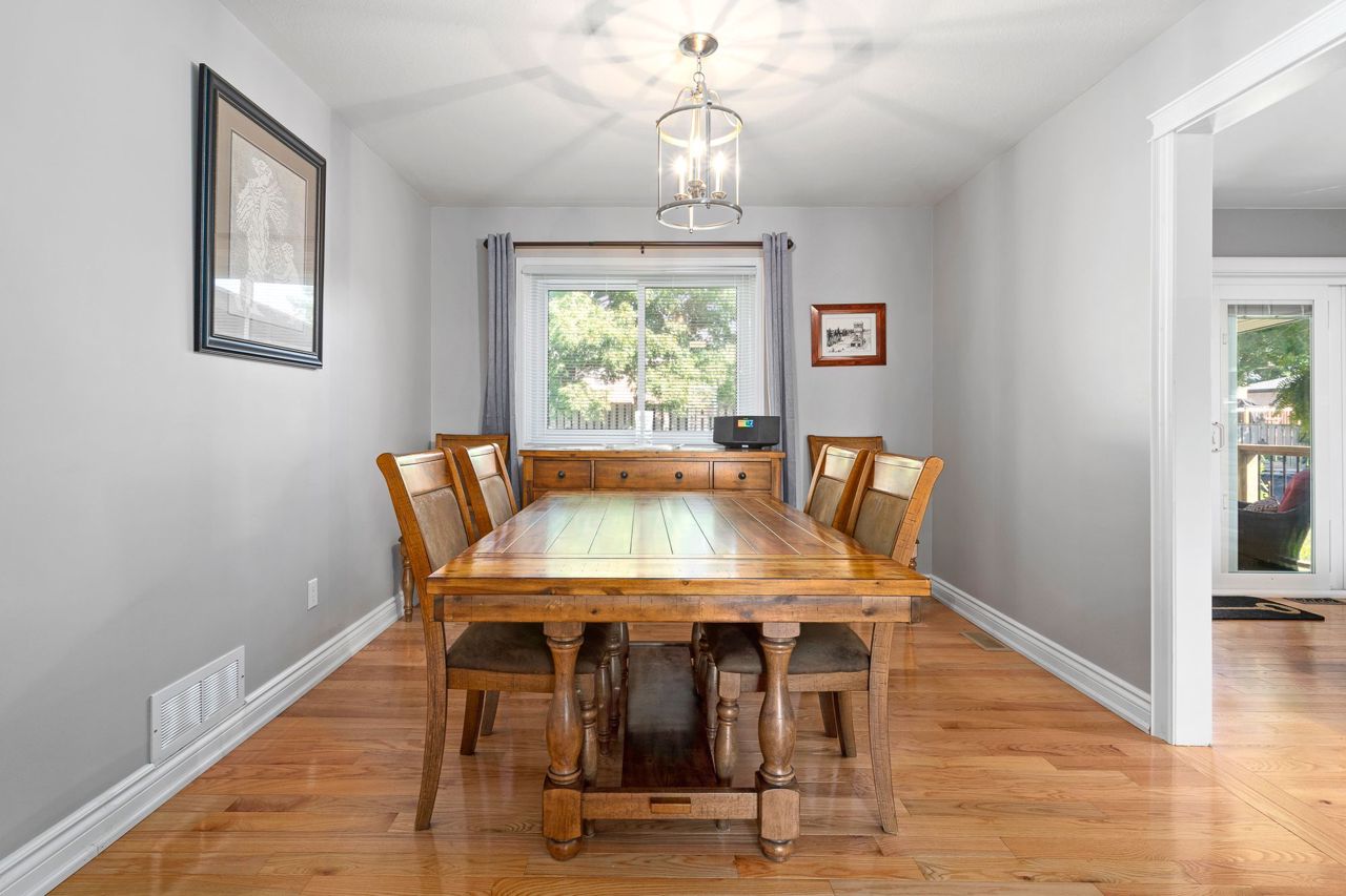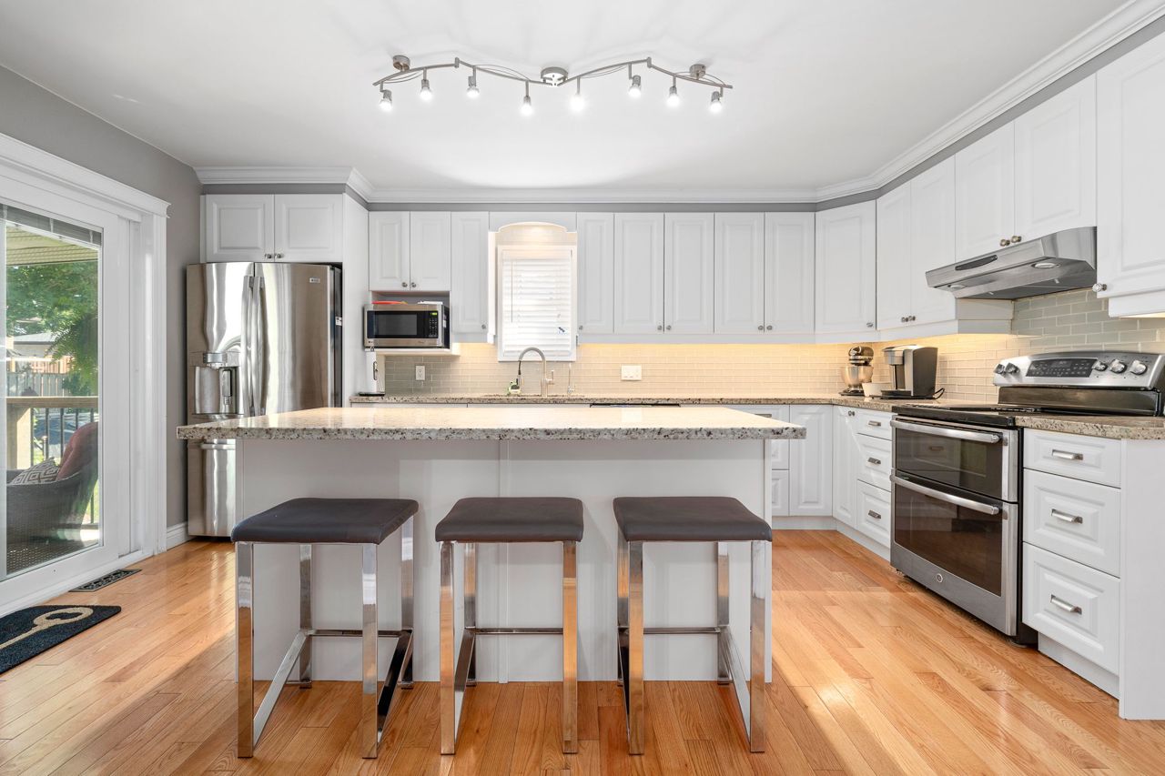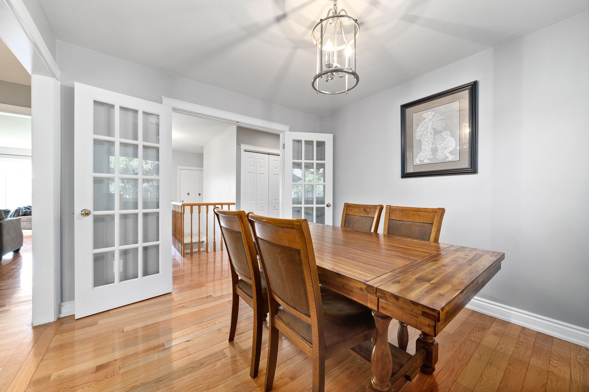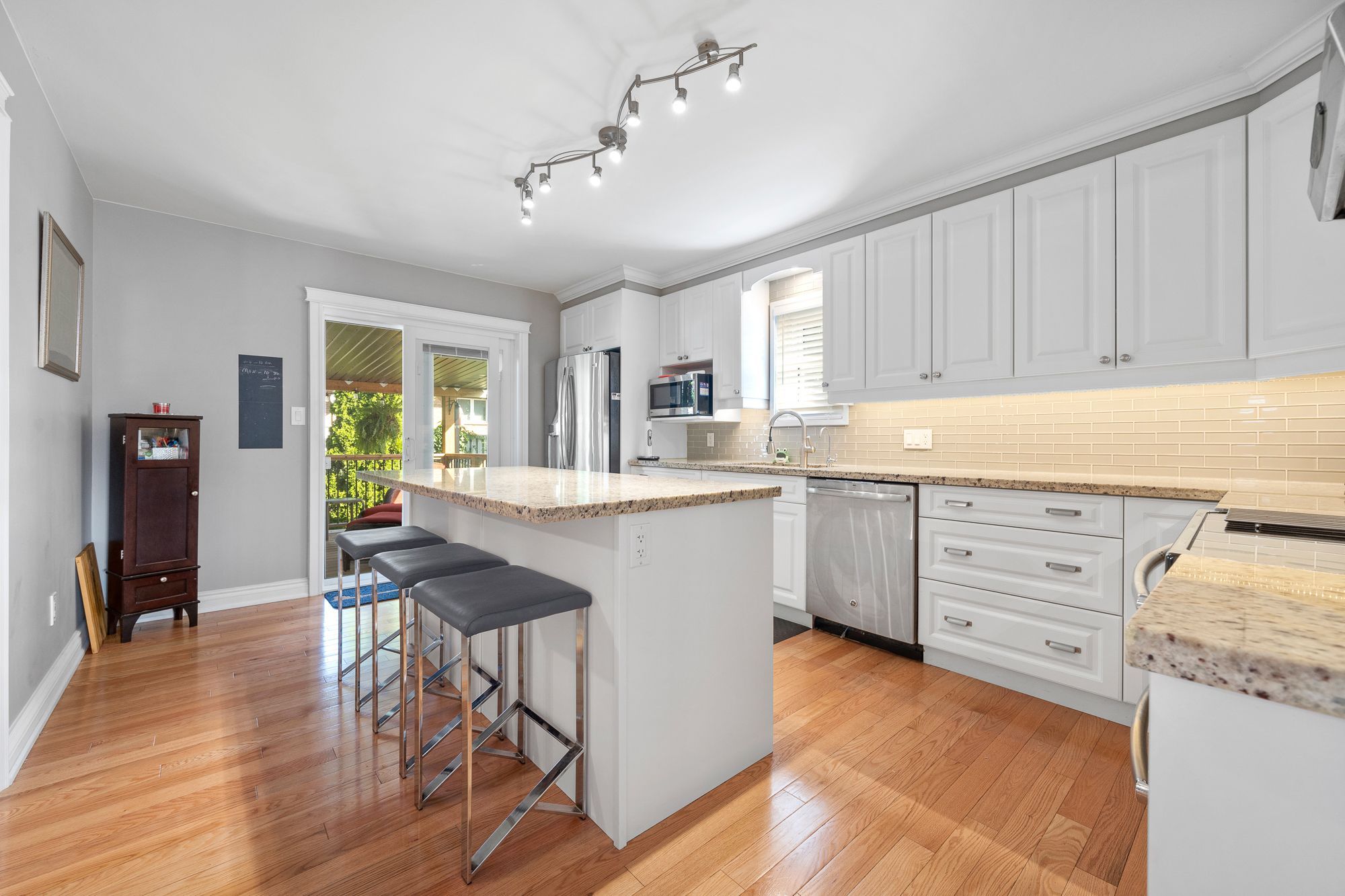GORGEOUS Warm, Welcoming “Move-in Ready” Bungalow. Just Walk In & Start Living! Love the flow… from its sleek, stylish & striking kitchen, to the formal dining area with French doors, & inviting patio doors to the coziest covered rear deck & lush yard. The kitchen favors luxurious granite surfaces including a large island breakfast bar, the clean lines of white shaker cabinets topped with crown molding, classic subway backsplash, undercabinet lighting, undermount sink, and stainless-steel appliances/double oven. Just waiting to be enjoyed are the elegant living room with beautiful neutral-toned hardwood, south facing bay window, the 2 bedrooms plus a den and the 2 lovely baths. And can’t wait to show you the rec room! Main floor laundry. 2 car insulated & drywalled garage. Turnkey comfort, numerous upgrades, lovingly cared for inside & out. Come take a look and see for yourself.