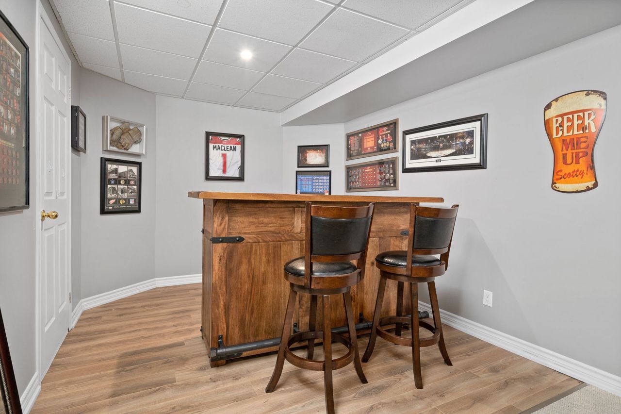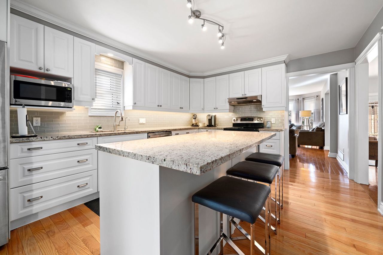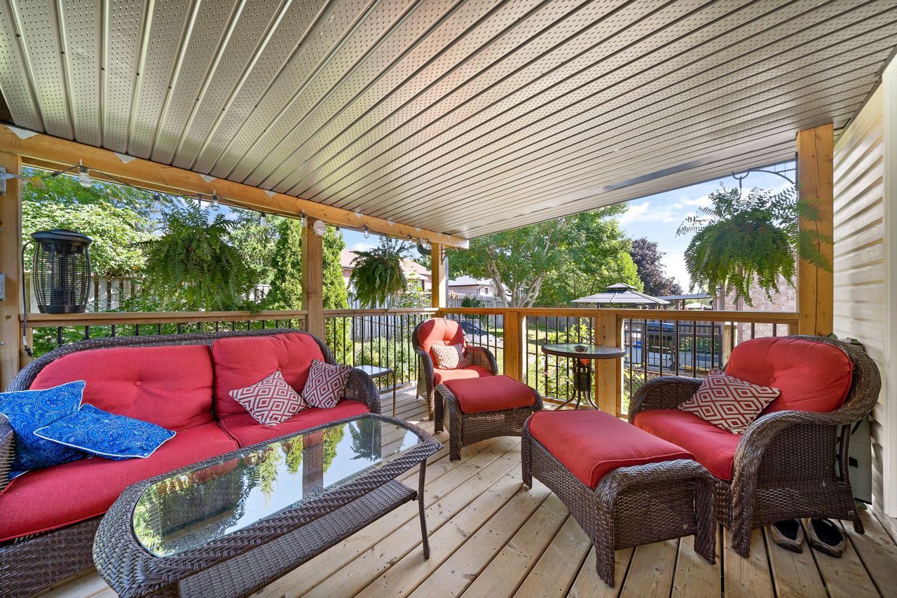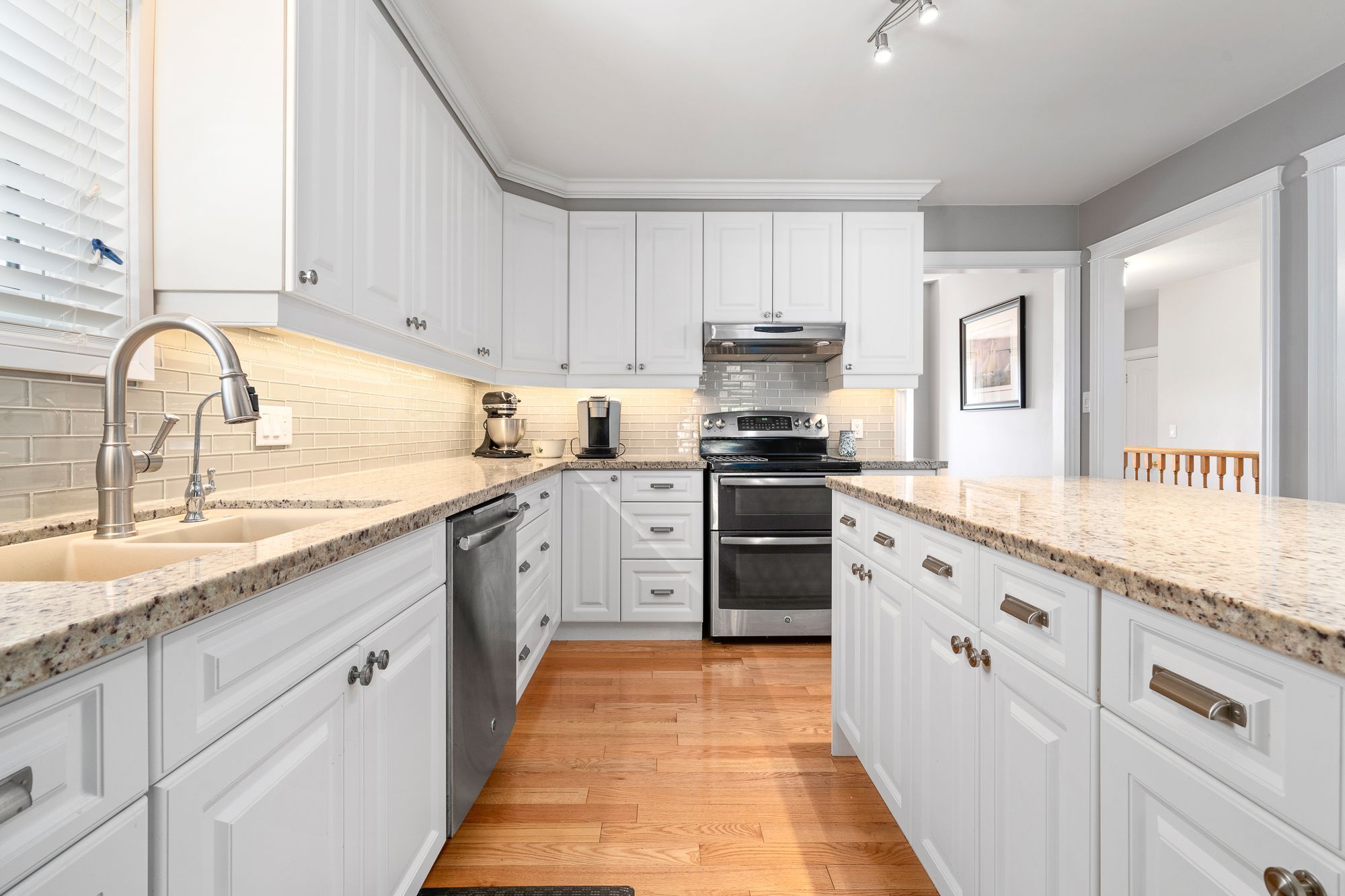 GORGEOUS Warm, Welcoming “Move-in Ready” Bungalow. Just Walk In & Start Living! Love the flow… from its sleek, stylish & striking kitchen, to the formal dining area with French doors, & inviting patio doors to the coziest covered rear deck & lush yard. The kitchen favors luxurious granite surfaces including a large island breakfast bar, the clean lines of white shaker cabinets topped with crown molding, classic subway backsplash, undercabinet lighting, undermount sink, and stainless-steel appliances/double oven. Just waiting to be enjoyed are the elegant living room with beautiful neutral-toned hardwood, south facing bay window, the 2 bedrooms plus a den and the 2 lovely baths. And can’t wait to show you the rec room! Main floor laundry. 2 car insulated & drywalled garage. Turnkey comfort, numerous upgrades, lovingly cared for inside & out. Come take a look and see for yourself.
