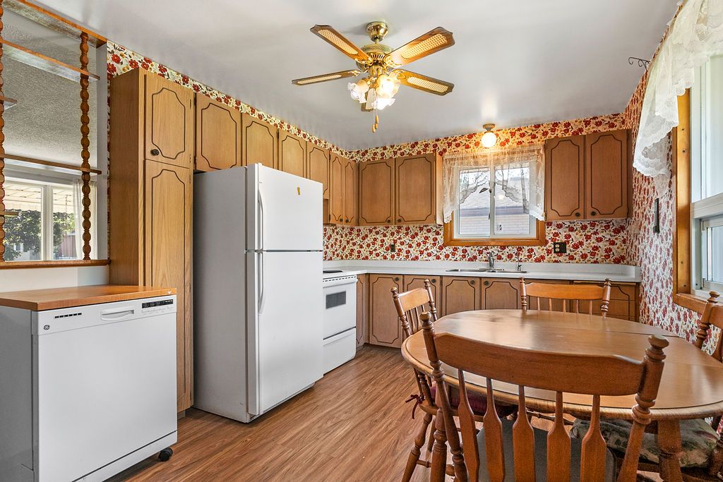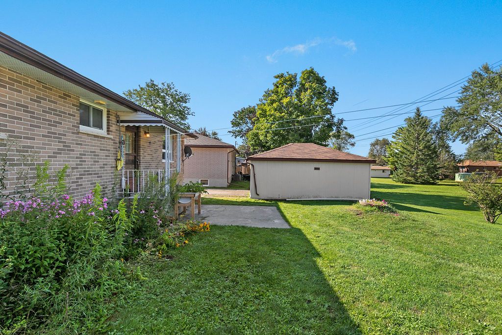 All brick bungalow in nice area of town. Good size living, dining and kitchen area. 2+2 bedrooms, 1-4pc bathroom on main floor and 2 pc in lower level. Large rec room with gas fireplace and bar area -great for entertaining. Shingles, furnace and air conditioner in good condition. 17x15 detached garage. Interior of home requires some updating.