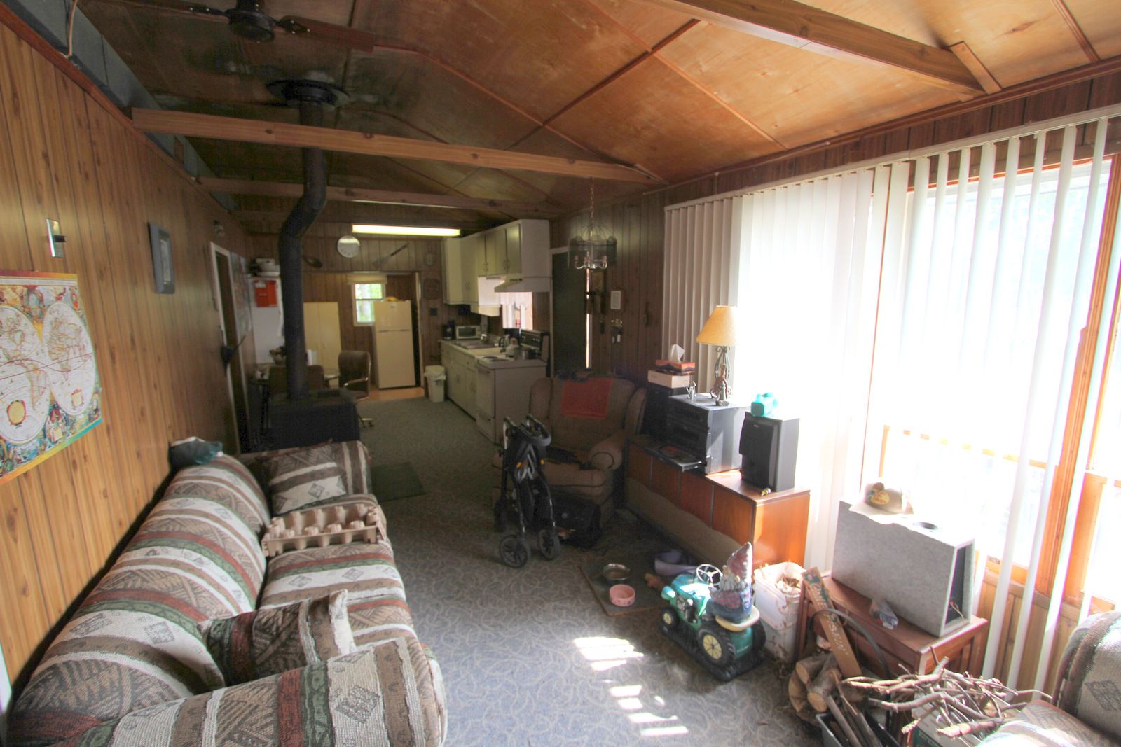 Affordable 2-bedroom 3 season cottage in the Kawartha Lakes with year-round access. Nice size lot measuring 71 ft x 224 ft and backing on to wooded farm land. Open concept kitchen living room area with cathedral ceiling. Separate family room with large picture window to the front. Large sun room also off front of home with wall-to-wall windows. Existing 2pc bath but sink is currently not hooked up. 5 min walk to shared water access to Canal Lake c/w dock and boat launch. Canal Lake is part of the Trent Severn Waterways and great fishing and endless boating. Close proximity to atv & snowmobile trail. Home serviced by forced air propane furnace, 60 amp hydro with fuses, dug well and holding tank. Large storage shed, enclosed carport and 2 additional storage sheds 8’x8’. Year road fee $175.