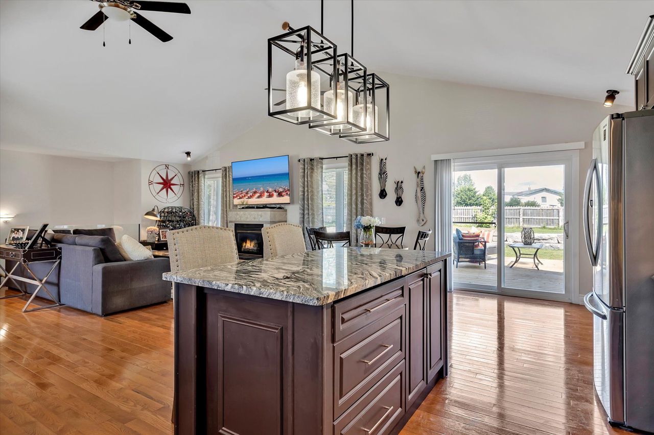 WELCOME TO THE JEWEL OF KENEDON PARK! This 3 Bedroom, 3 Bath Stone Bungalow on a 1+ Acre Lot Has it ALL! Waterfront Access, Snowmobile Trail at Your Doorstep, Hilltop View from the Covered Front Porch and Natural Gas Heat. Present Owners have Completed All the Quality Finishing Touches over the Past Two Years. The Open Concept Living Space Features a Vaulted Ceiling, Fireplace, Hardwood Floors and Walkout to the New 18' x 17' Deck in the Private Back Yard. All Rooms are Sized Very Generously. Between the Humungous Attached Heated Garage with Epoxy Floor, the 2400 SF Detached Garage/Workshop with Natural Gas Fired Radiant Heated Floor and the Expansive Crushed Asphalt Driveway, You Could Fit 60+ Cars! Workshop/Garage has Three 12' Wide Doors (one 10' High) and 11' 8" Ceiling Height. RR2 Zoning Permits Home Occupation Usage.