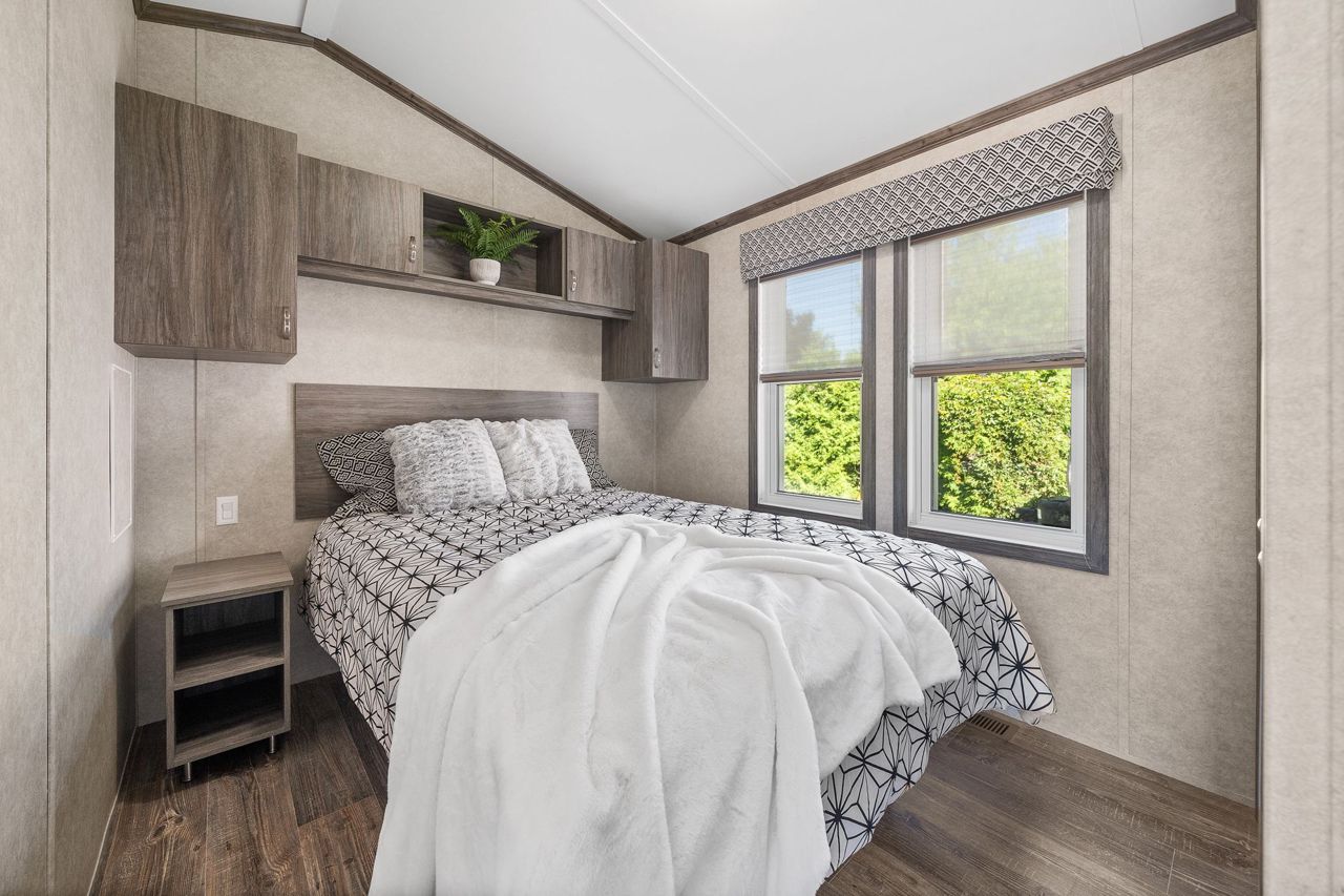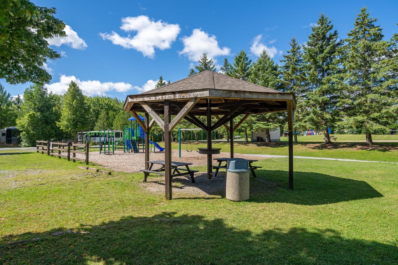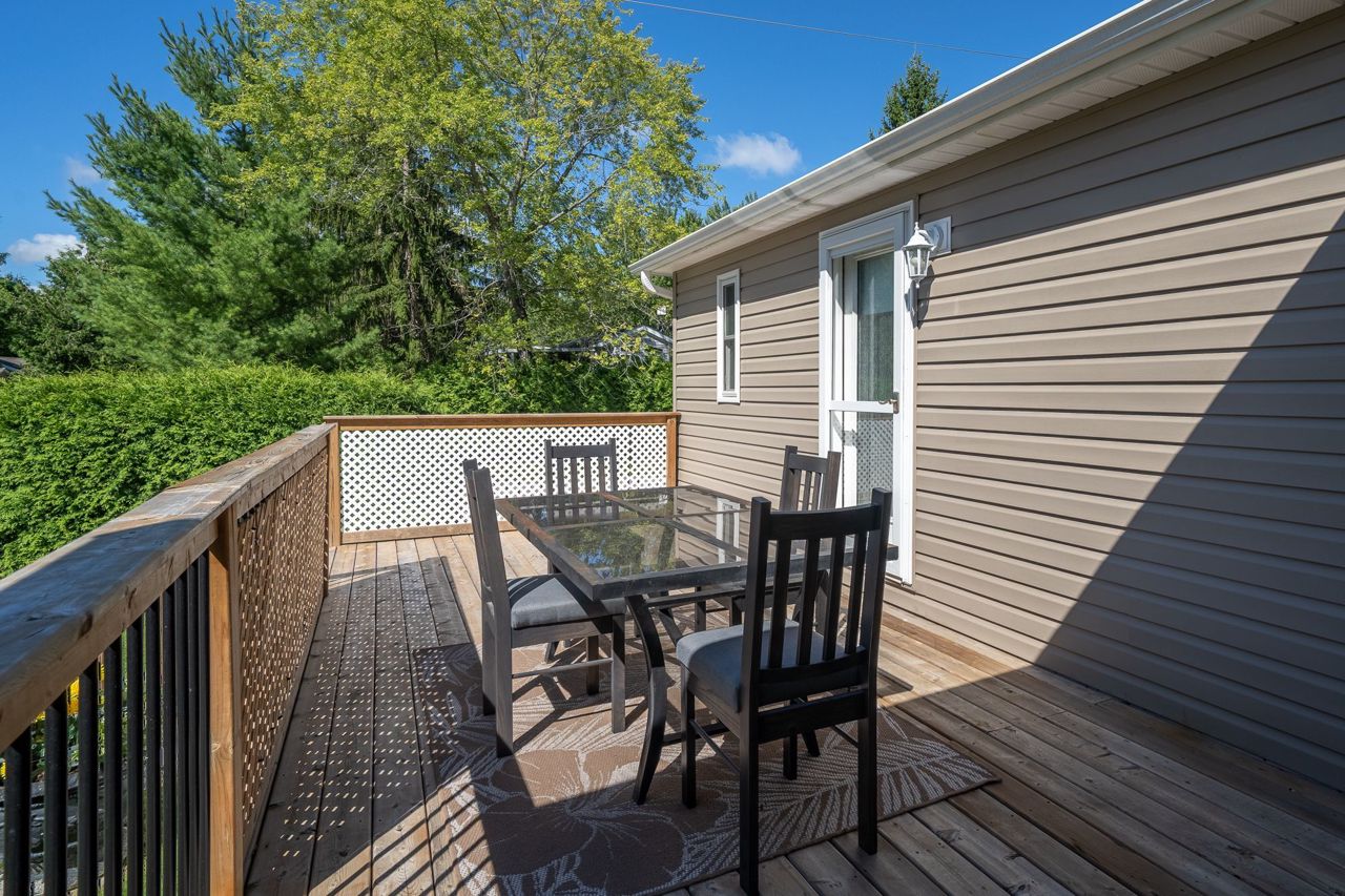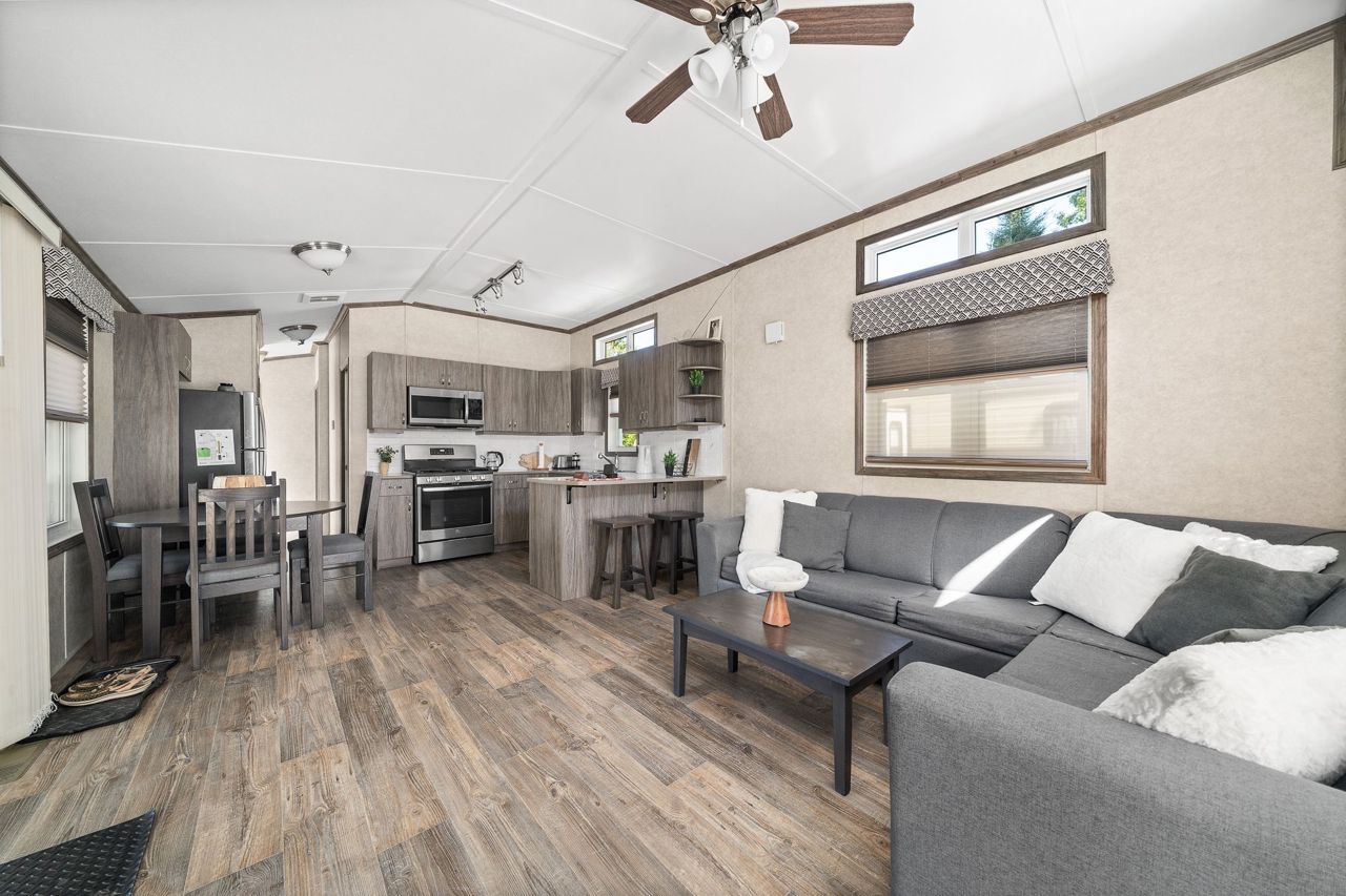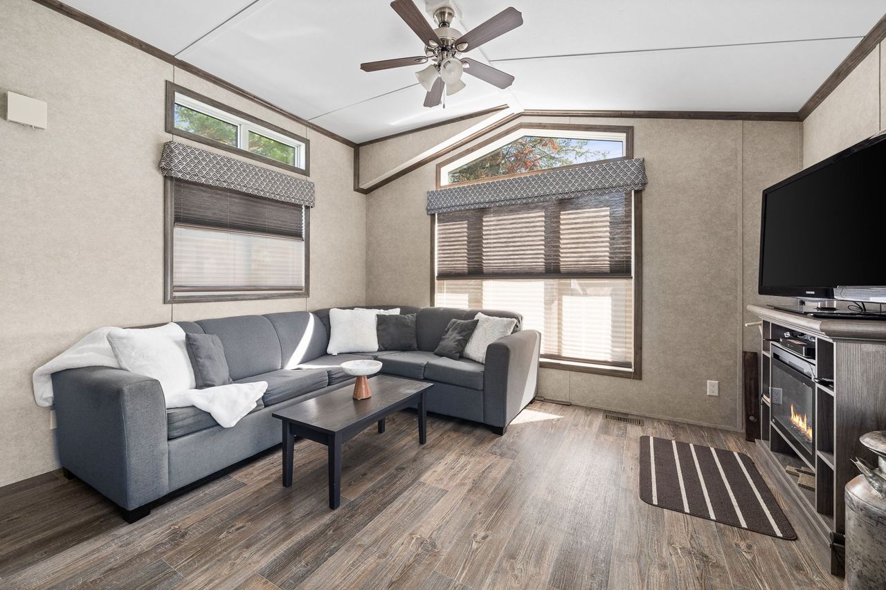 KICK-BACK & RELAX AT AMENITY-RICH "NESTLE IN" RESORT ALONG EMILY CREEK - Discover an affordable way to enjoy the Summer season with this 2018 Frontier modular unit by General coach gives you 540 sq ft of open concept living featuring vaulted ceilings. This unit comes fully furnished & is bright & spacious, modern & inviting for the May - Oct season. The kitchen is massive & features a peninsula with bar stools for casual eating. By any measure, this is one of the best kitchens you can have with full appliances, double sink, windows & a built-in microwave for all your needs. There are 2 bedrooms & 1 3-piece bath that all have tons of storage, clean vinyl plank flooring. Bedroom 2 has a custom bunk bed with easy to access stairs with storage for safety & functionality. Outside, the huge deck coverage partially by an sizable permanent hard covered awning give you options for full sun or shade or protection from the rain & eaves all around. This lot is private & walkable to the docks,beach, community pool, gym, playground, rec hall, store, horseshoe pit & more! Plus you can boat along Emily Creek into Sturgeon Lake & the rest of the Trent Severn Waterway. Don't miss your chance to Summer in style at Nestle In!