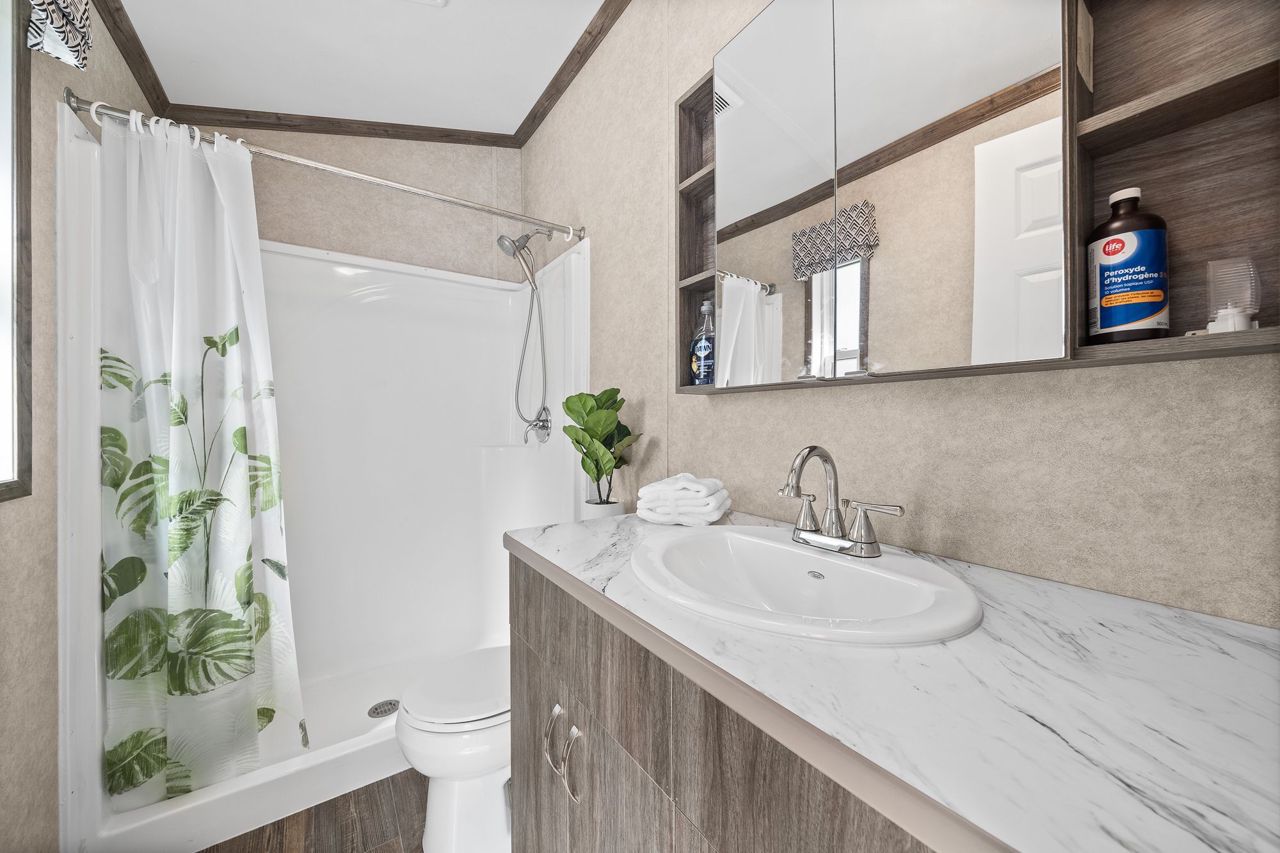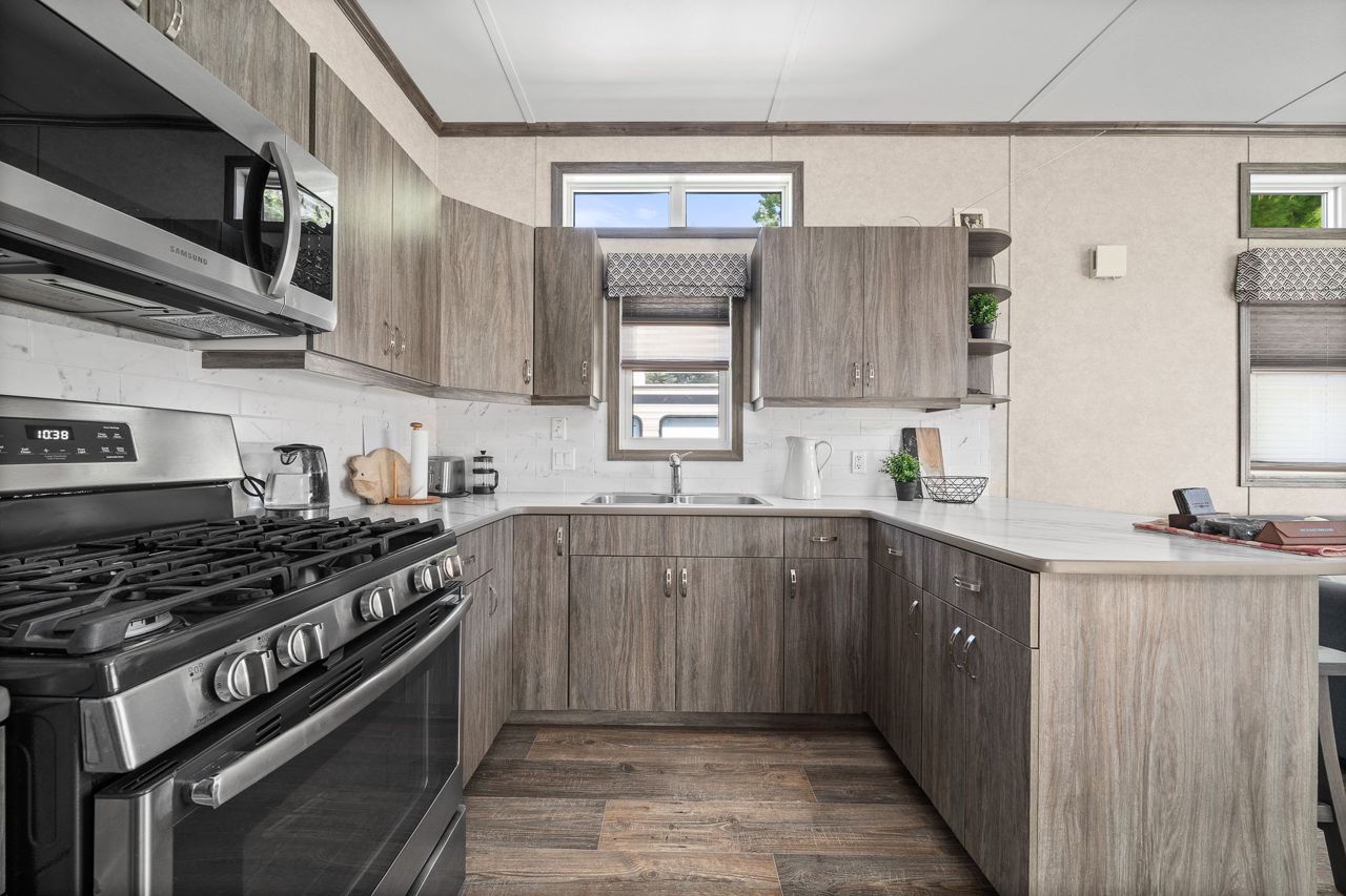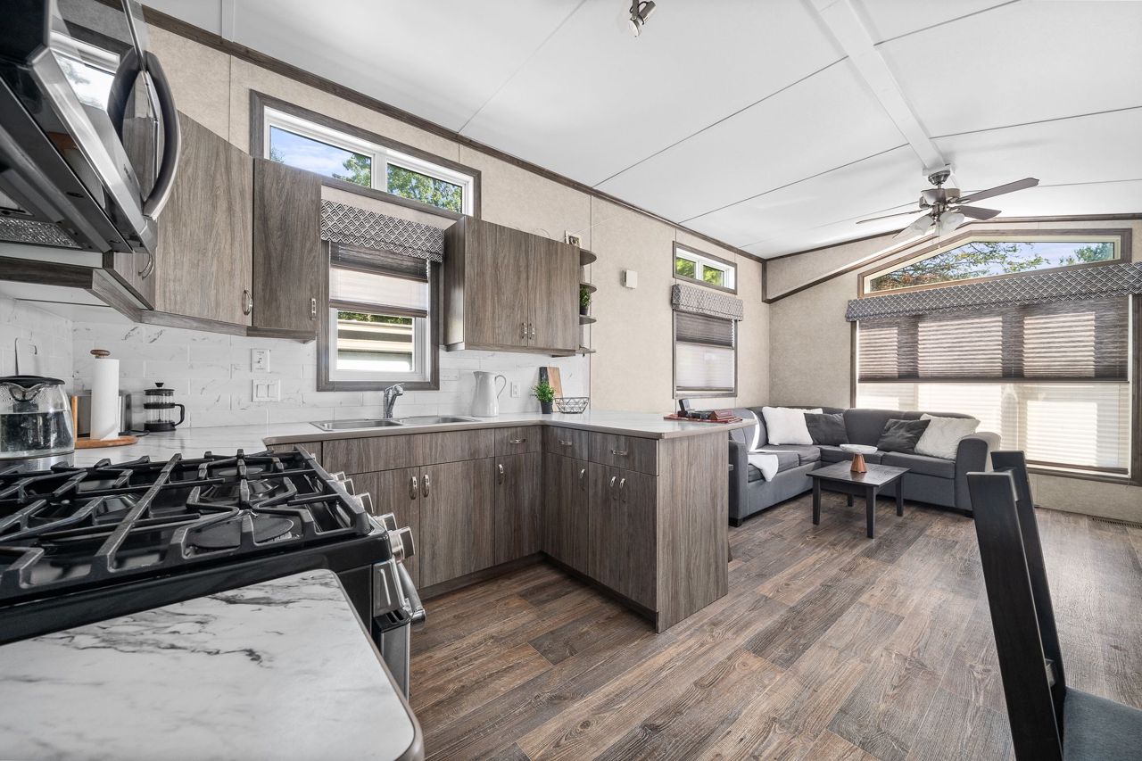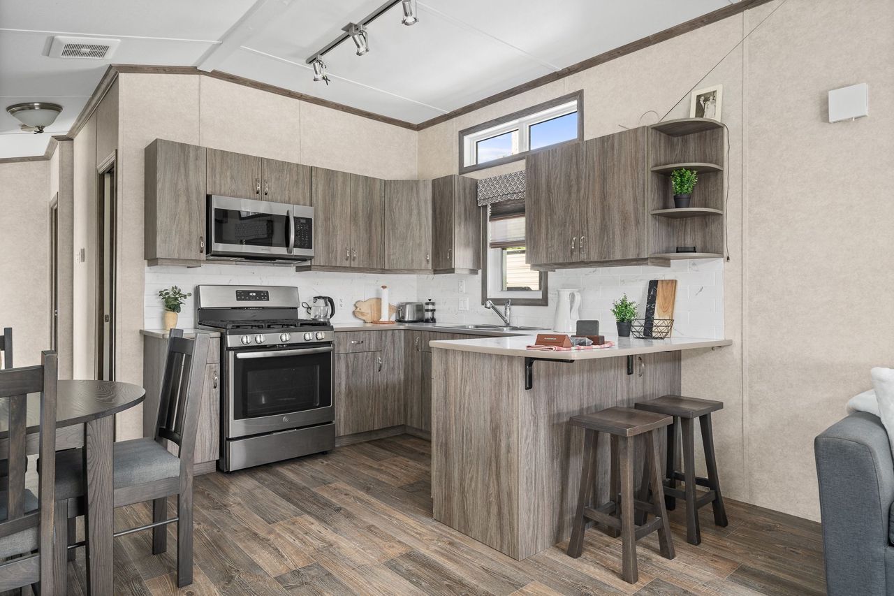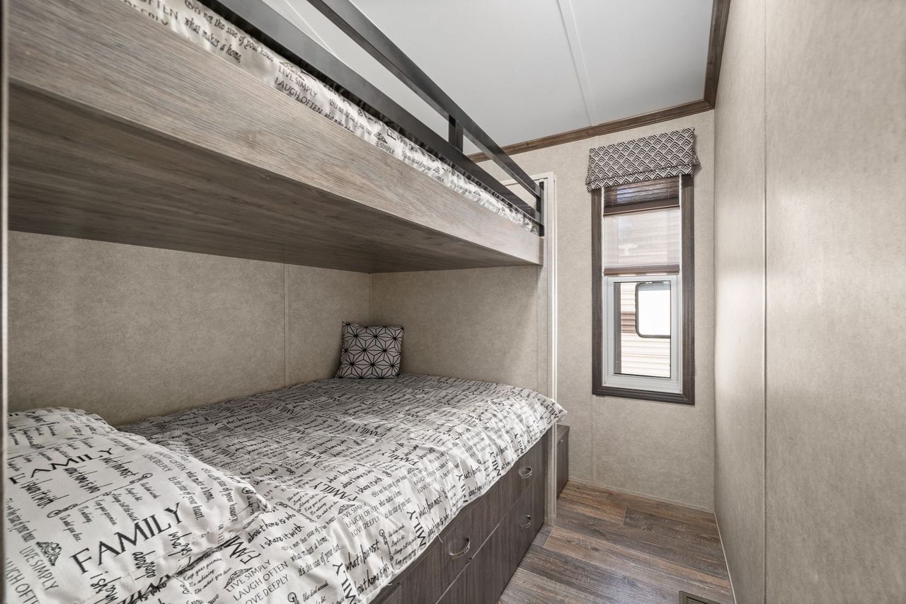 KICK-BACK & RELAX AT AMENITY-RICH "NESTLE IN" RESORT ALONG EMILY CREEK - Discover an affordable way to enjoy the Summer season with this 2018 Frontier modular unit by General coach gives you 540 sq ft of open concept living featuring vaulted ceilings. This unit comes fully furnished & is bright & spacious, modern & inviting for the May - Oct season. The kitchen is massive & features a peninsula with bar stools for casual eating. By any measure, this is one of the best kitchens you can have with full appliances, double sink, windows & a built-in microwave for all your needs. There are 2 bedrooms & 1 3-piece bath that all have tons of storage, clean vinyl plank flooring. Bedroom 2 has a custom bunk bed with easy to access stairs with storage for safety & functionality. Outside, the huge deck coverage partially by an sizable permanent hard covered awning give you options for full sun or shade or protection from the rain & eaves all around. This lot is private & walkable to the docks,beach, community pool, gym, playground, rec hall, store, horseshoe pit & more! Plus you can boat along Emily Creek into Sturgeon Lake & the rest of the Trent Severn Waterway. Don't miss your chance to Summer in style at Nestle In!