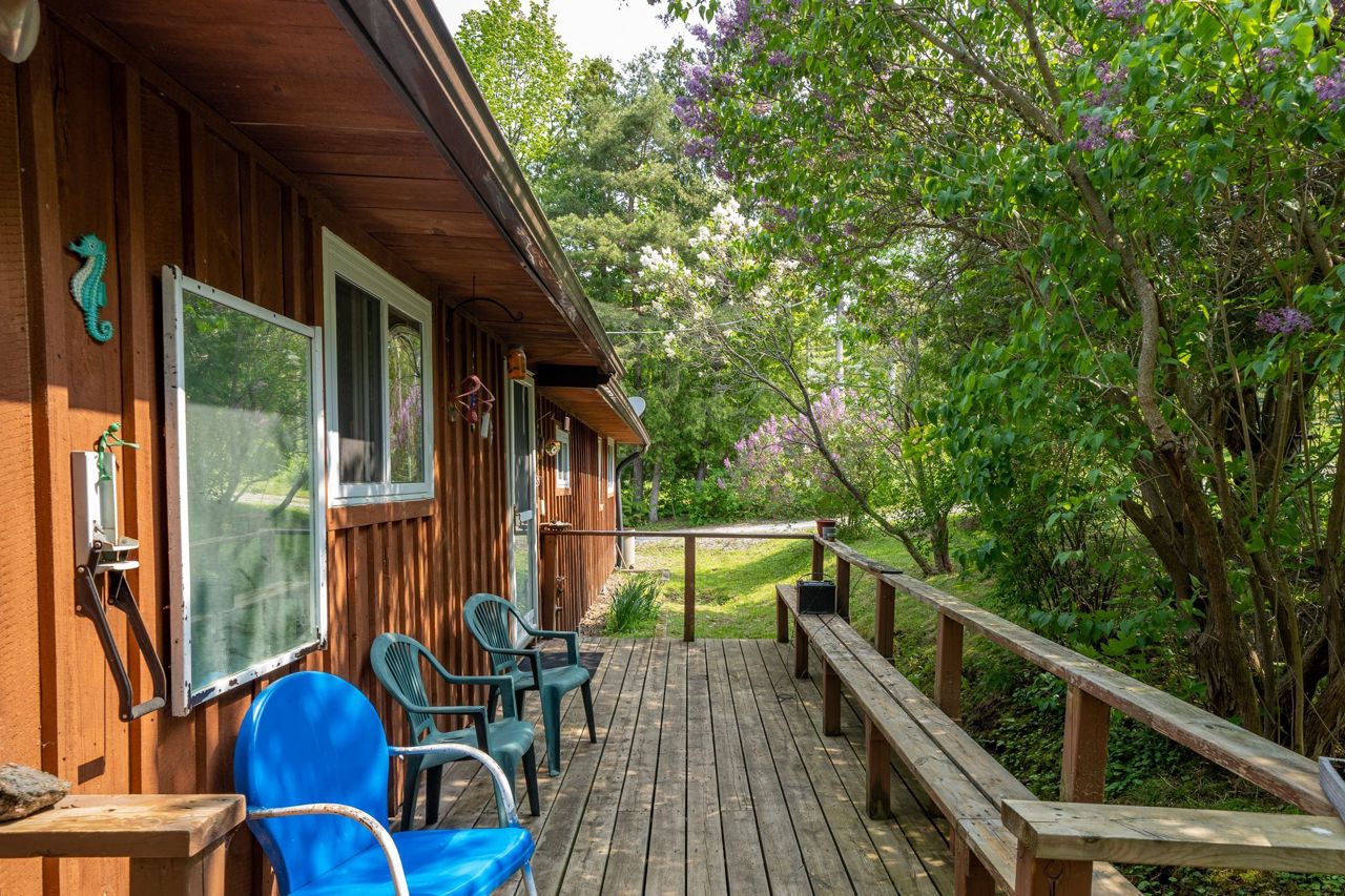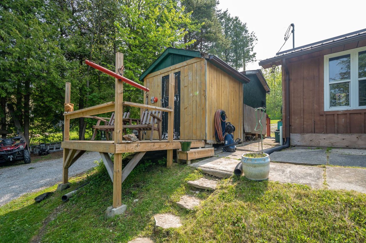 Welcome to Kirkfield Ontario, City of Kawartha Lakes, This Property has 3 separate sleeping accommodations all face west for utmost sunsets. Boat launch at park at end of road. Has 2 bdrms in the main cottage. The bunkie sleeps 2 w/5 ft deck. Prior boathouse has been renovated into amazing guest house with 2 murphy beds, compost toilet dry bar with deck all at waters edge.ALL APPLIANCES NEGOTIABLE -INDUCTION FLATTOP, - STORAGE GREENHOUSE NEGOTIABLE. SURVEY AVAIL- ALL BUT THE GARDEN SHED ARE METAL ROOVES. WATER FILTRATION SYSTEM IS TO BE REPAIRED BEFORE CLOSING,