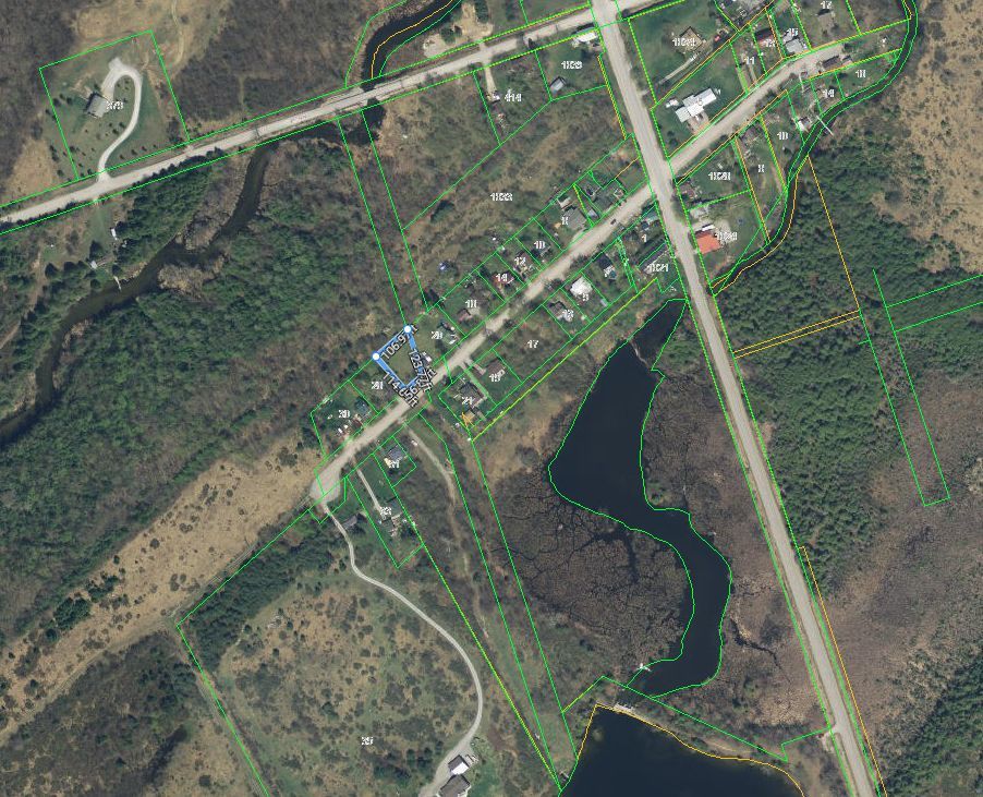 garage to the east encroaches the lot by 18”. This land is located north of Mitchell Lake and just over 6 km outside of