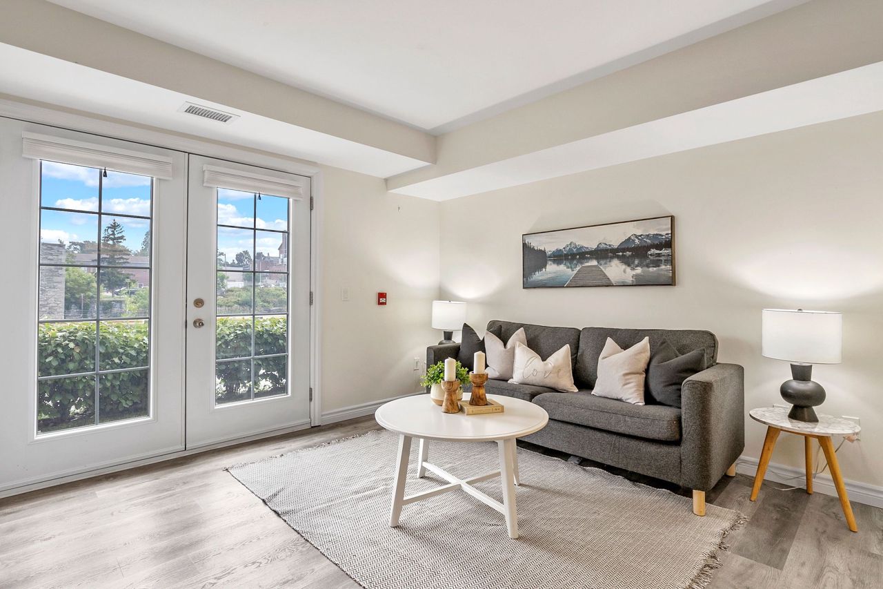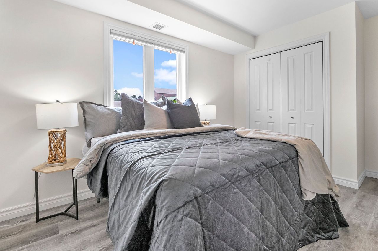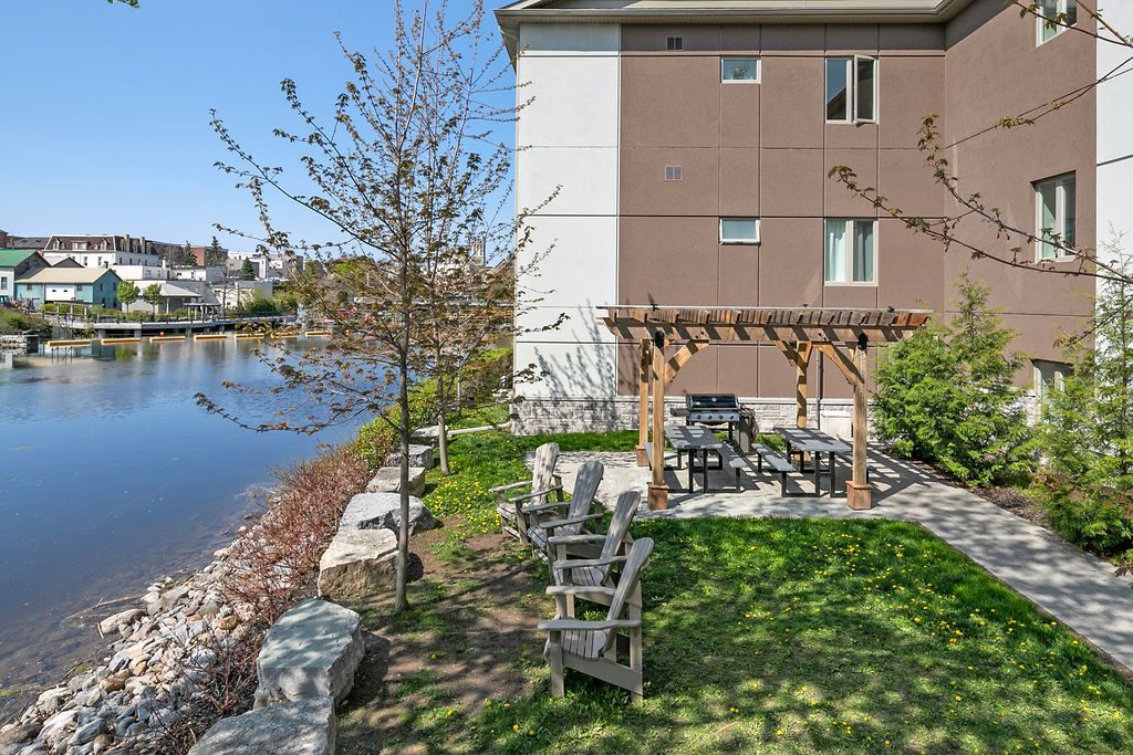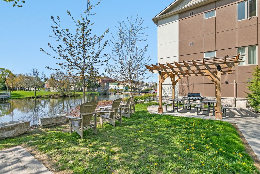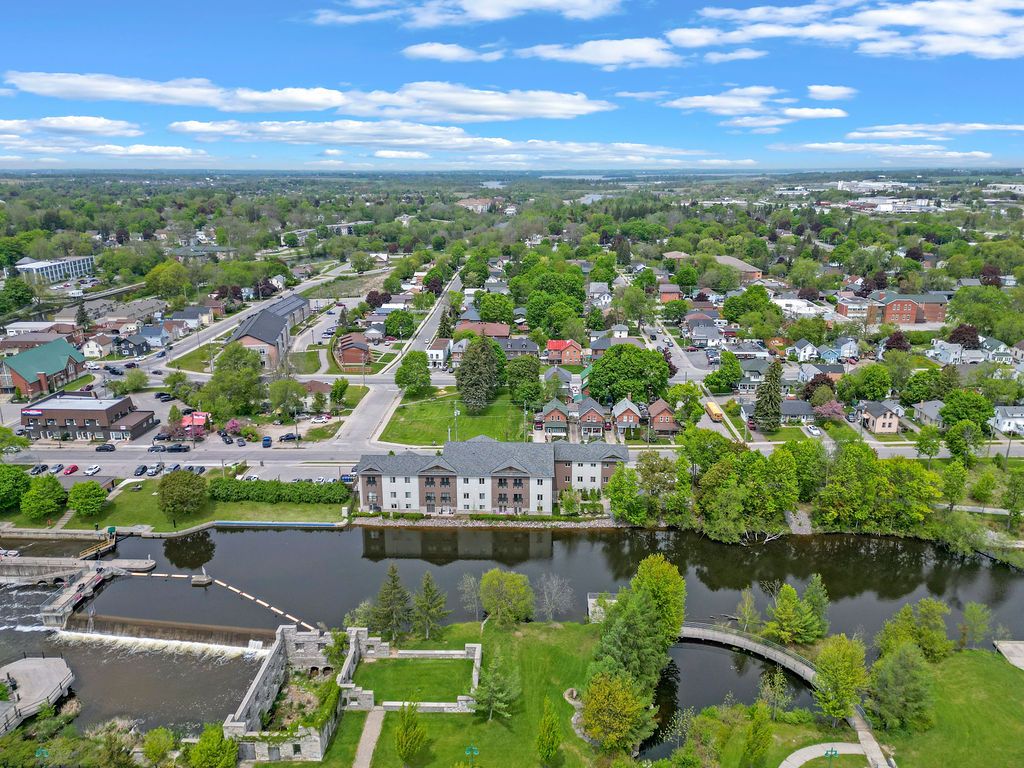 Welcome to the Pyjama Factory Condominium, right along the Scugog River and Lock 33. This gorgeous location gives you some beautiful views all year long. Plus, you are right on the Kawartha Victoria Trails, a walk to the theatre and downtown Lindsay. Beautifully finished 1075 sq ft open concept with stunning kitchen, 2 bedrooms and 2 full bathrooms. Walkout your garden doors to the patio which overlooks the river. Large primary bedroom with walk-in closet and 3-piece ensuite. The building also has a fully equipped gym, party room, an outside waterfront patio, BBQ space and more. Parking spot is #18.