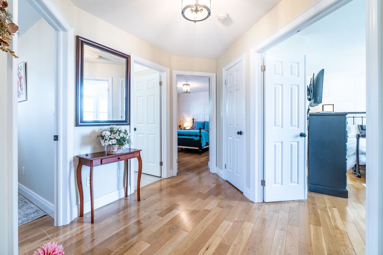This one checks all the boxes! Brick & vinyl 2 storey home located in a quiet neighbourhood close to schools, hospital & shopping. Main floor boasts 2 pc bath, large foyer, cozy living room with fireplace, kitchen/dining room combo with walk-in pantry, granite countertops, peninsula & walkout to deck/yard. 2nd flr boasts laundry closet, primary bdrm with huge walk-in closet & 3 pc ensuite. 2 additional bedrooms & 4 pc bath. Lower level boasts cold storage, bright rec rm with fireplace, walk out to yard, 3 pc bath, office & utility rm. 2 car attached 19' x 18' garage & paved drive. Beautifully landscaped with a fenced yard. Definitely shows pride of ownership!