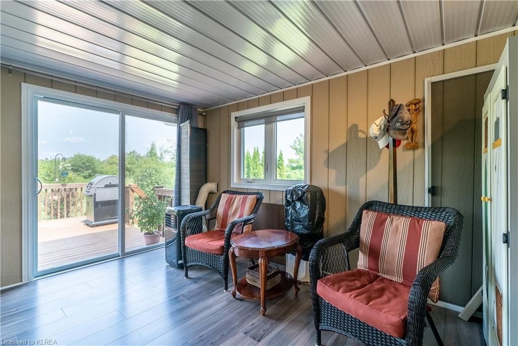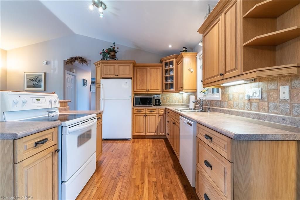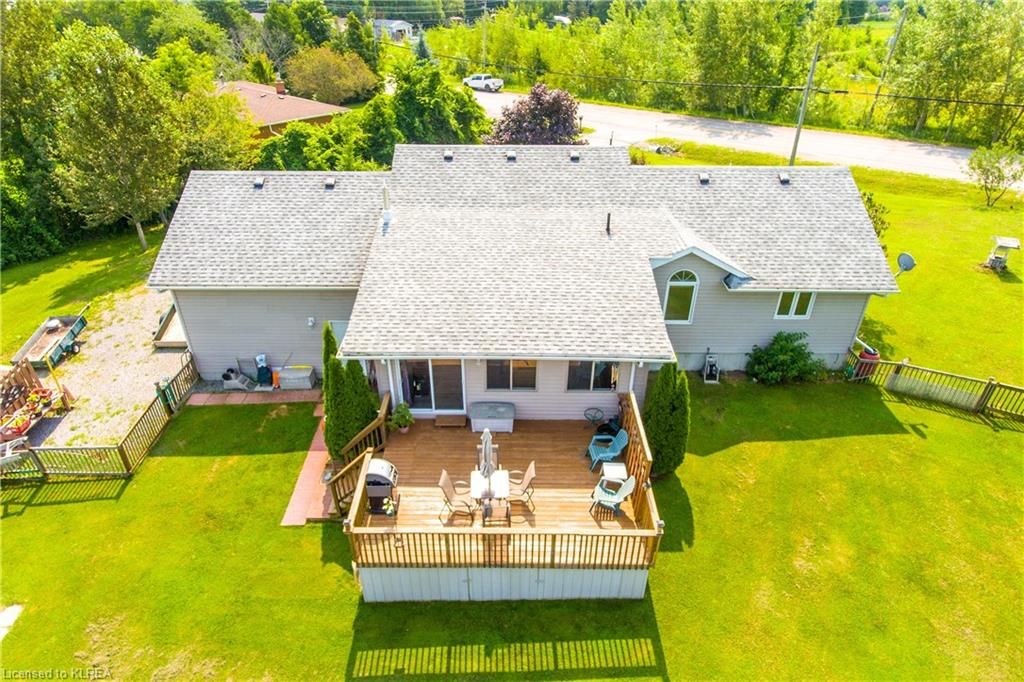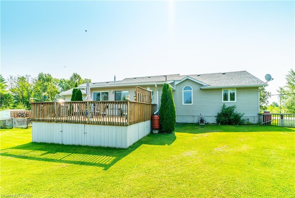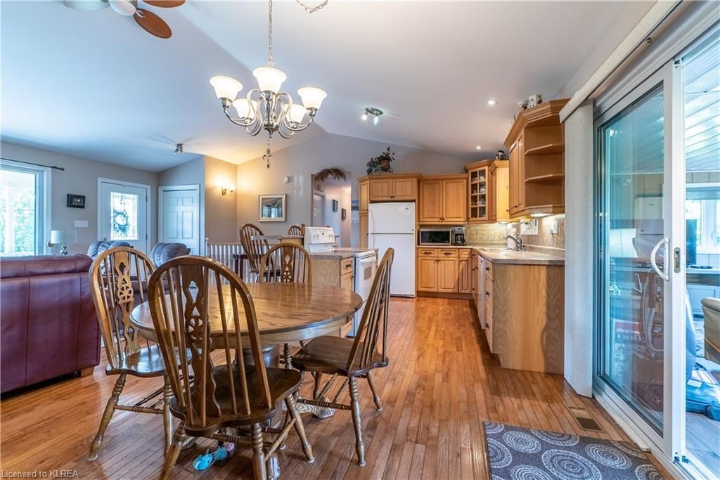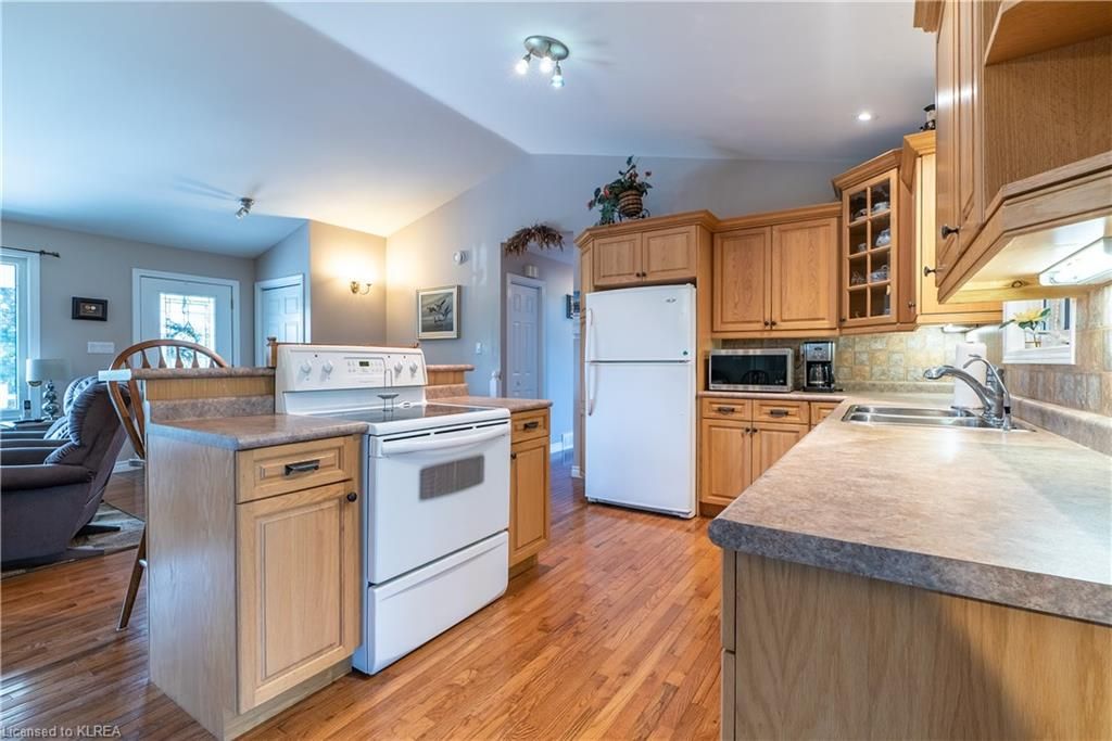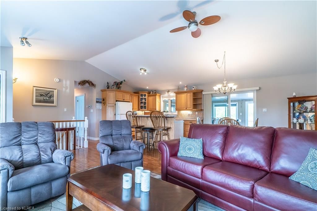 Modern country bungalow in close proximity to Lindsay and Fenelon Falls. Accented stone front with covered front veranda. Open concept design with vaulted ceilings, 3 bedrooms, upper and Lower baths including separate shower and whirlpool bath. Hardwood flooring including stairs, kitchen island and handy garage entry. Large year round main floor family room addition with gas stove and walkout to deck. Finished bright lower level with additional enormous family room and yet another gas stove. Forced air propane heat, central a/c, air exchange, reverse osmosis system and more.** Interboard Listing: The Kawartha Lakes Real Estate Association ** Directions to property: Hwy 35 North of Lindsay to right on Long Beach Rd., follow property on left before lake.