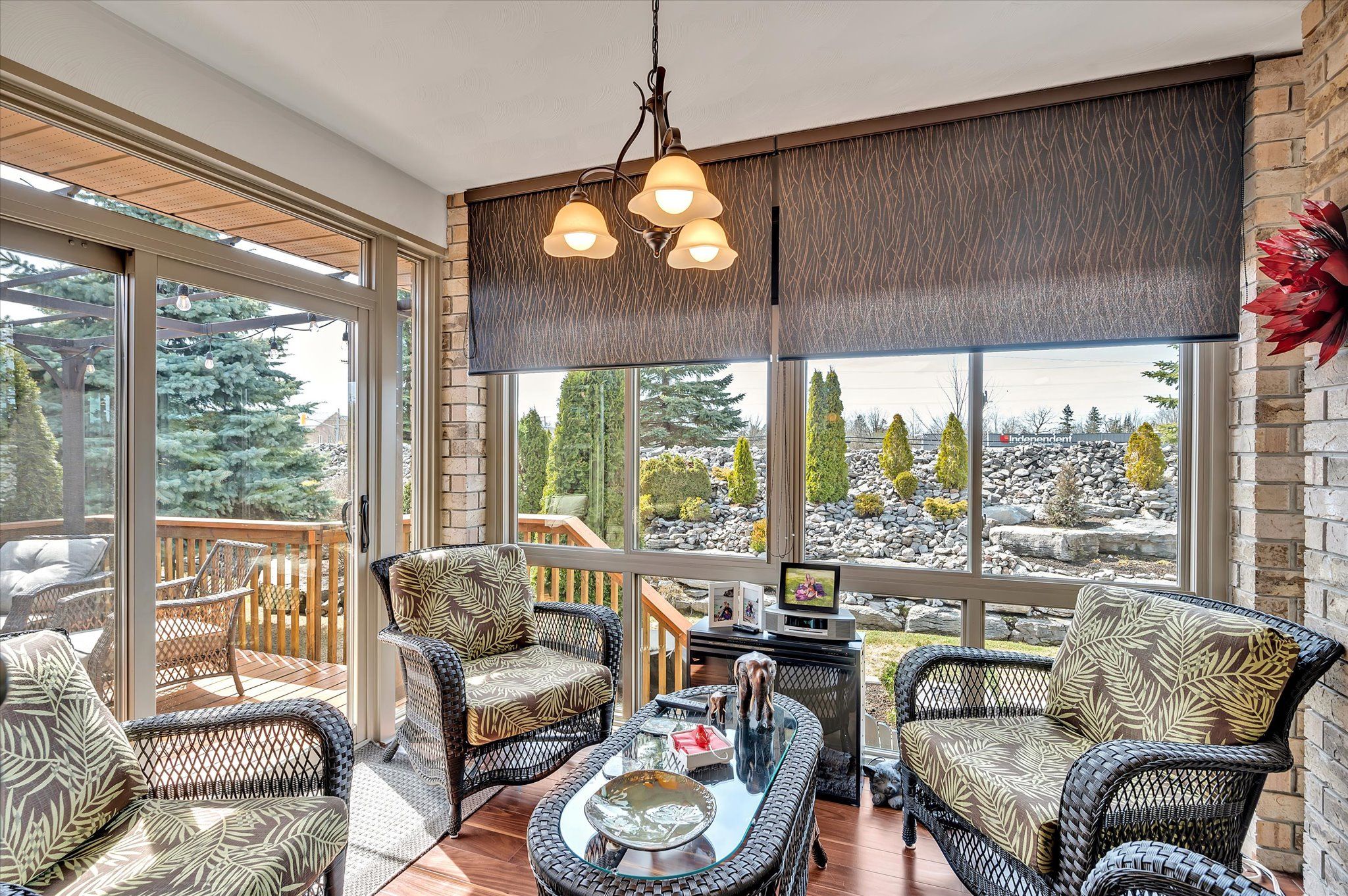 42 Huntingwood Cres, Bobcaygeon Port 32 Located in the highly sought-after Port 32 community, this beautifully maintained all-brick bungalow offers the perfect blend of small-town charm and active retirement living. Featuring 2+2 bedrooms, 3 bathrooms, and a 2-car garage, this home is designed for both comfort and efficiency. The primary bedroom boasts a private ensuite, while the main floor also includes a second bedroom, main floor laundry, and a bright sunroom overlooking the professionally landscaped yard. The finished basement offers a large family room, two additional bedrooms, and a dedicated office, providing ample space for guests or hobbies. Built to R2000 energy-efficient standards, this home is economical to run, with a newer heat pump and electric furnace ensuring year-round comfort. Step outside to a beautifully landscaped yard with an irrigation system, featuring armour stone, interlocking brick, and a private patio perfect for relaxing or entertaining. As a Port 32 resident, you'll have access to the exclusive Shore Spa Community Club, which includes a pool, gym, pickleball and tennis courts and both the initiation fee and the 2025 annual membership ($480) have already been paid! This turn-key home is an exceptional opportunity to enjoy retirement living in one of Bobcaygeon's most desirable communities.