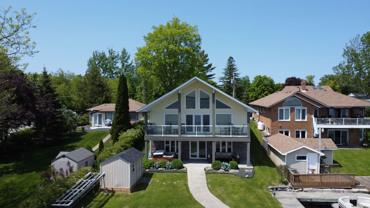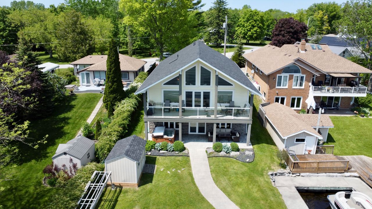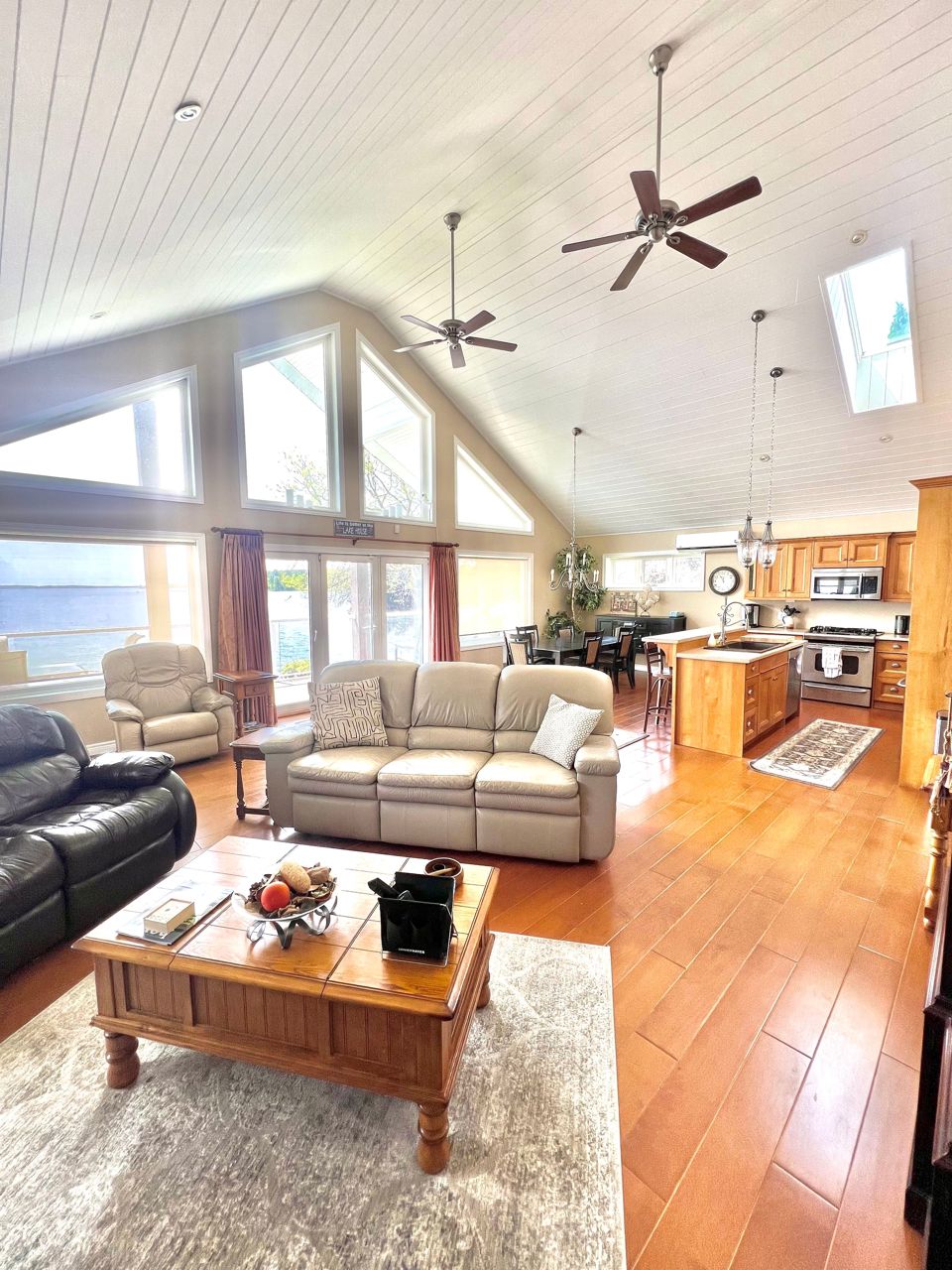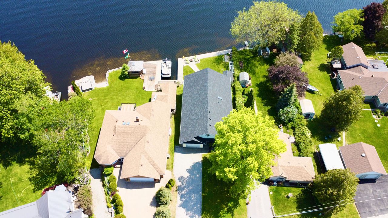 Stunning Bungalow with the Spectacular view of lake , Cathedral Ceiling, 3 bedroom & 3 bath , walkout on main and lower levels, in-floor heating system, Maibec exterior siding, new roof as of 2022, interlocking brick driveway, Concrete Breakwall, Stone Fireplace, 25' Dock, Turn-key, Just move in .all light fixtures, all furnishing included. excl: 4 muskoka chairs, 2 kayaks and kayak holder.