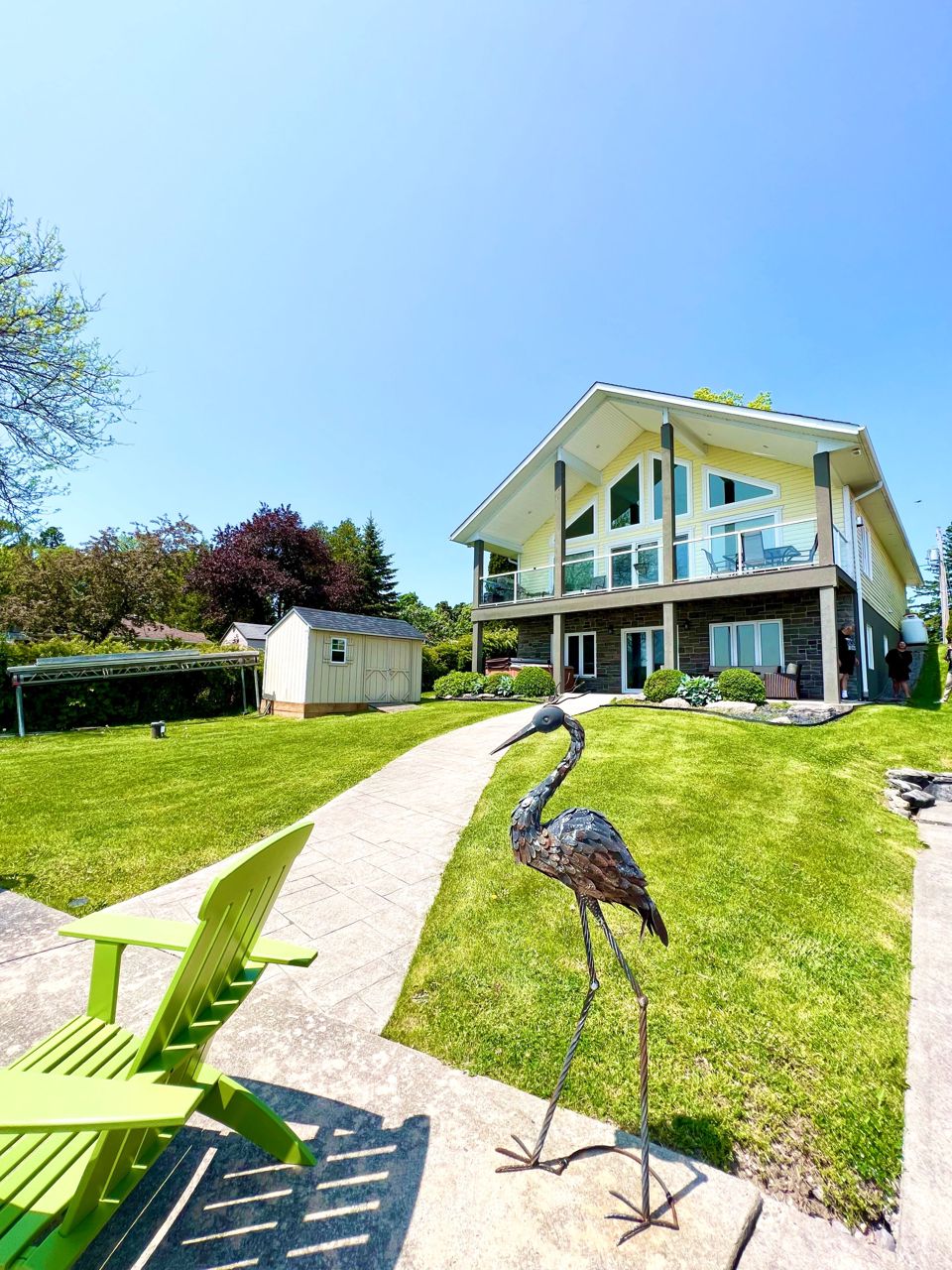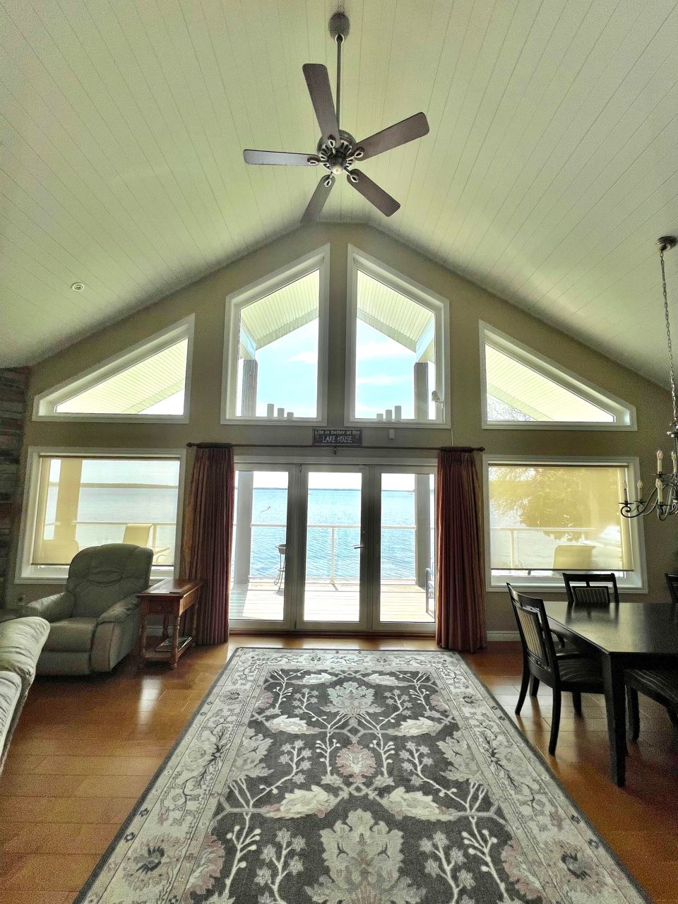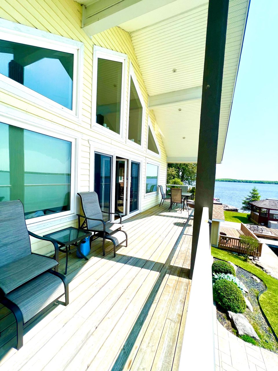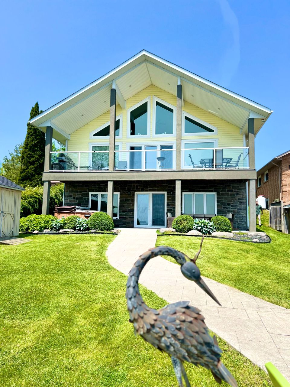 Stunning Bungalow with the Spectacular view of lake , Cathedral Ceiling, 3 bedroom & 3 bath , walkout on main and lower levels, in-floor heating system, Maibec exterior siding, new roof as of 2022, interlocking brick driveway, Concrete Breakwall, Stone Fireplace, 25' Dock, Turn-key, Just move in .all light fixtures, all furnishing included. excl: 4 muskoka chairs, 2 kayaks and kayak holder.