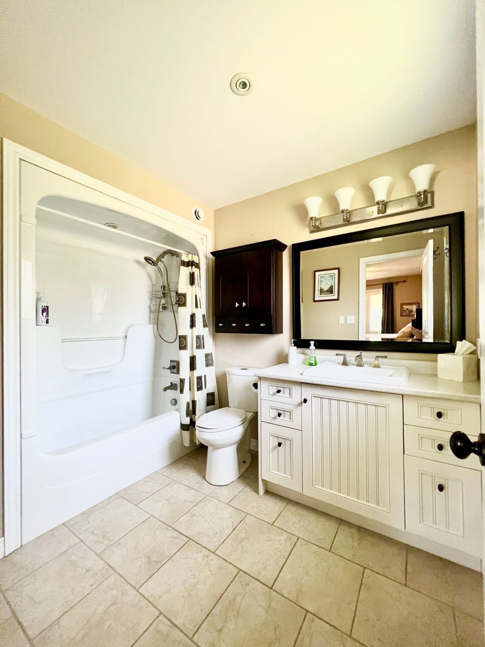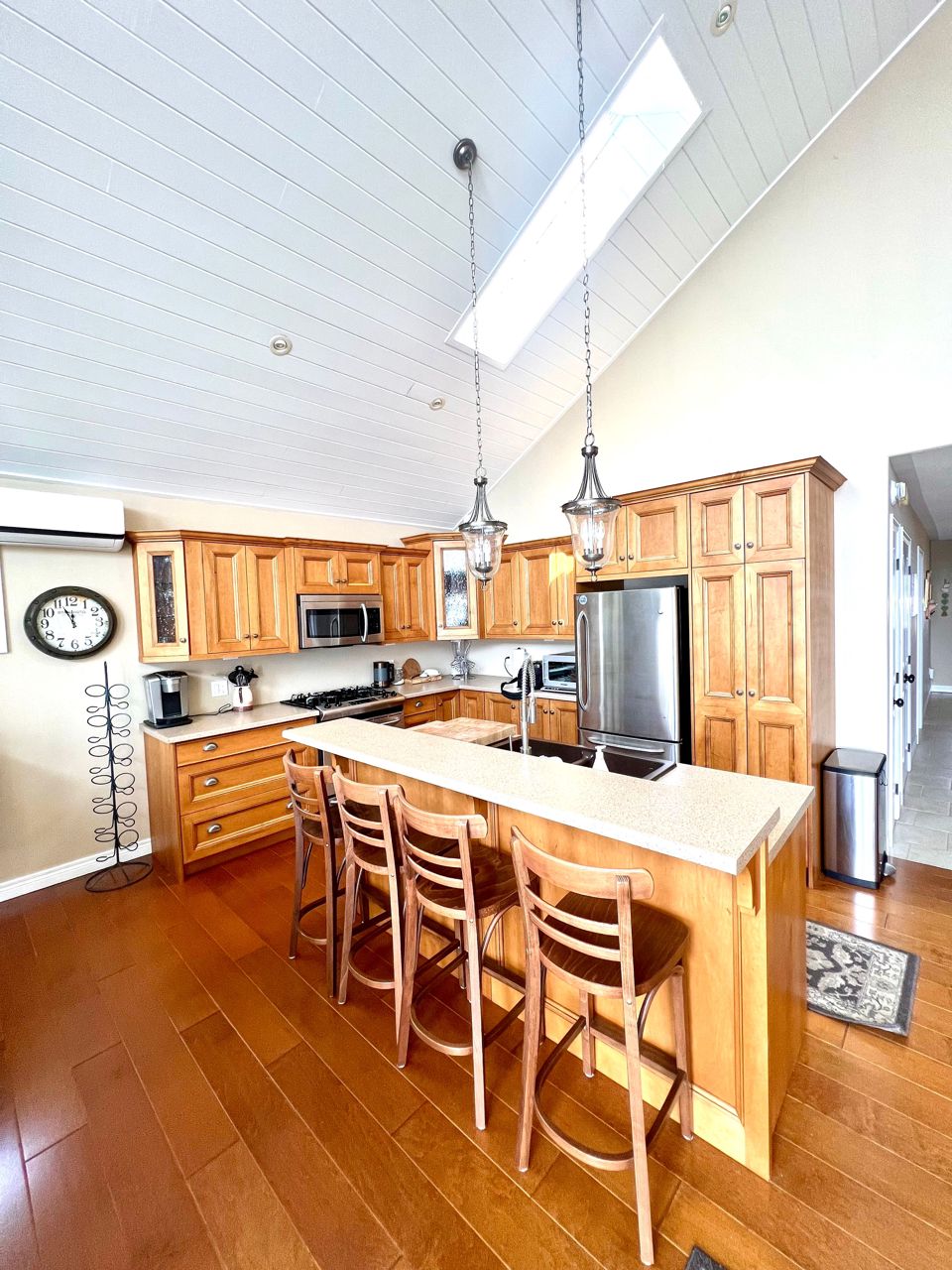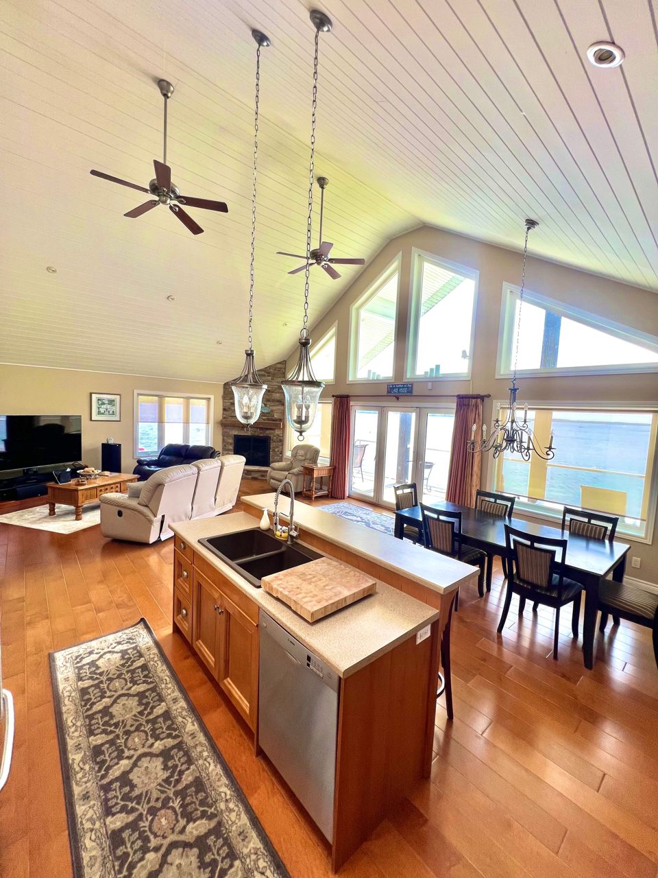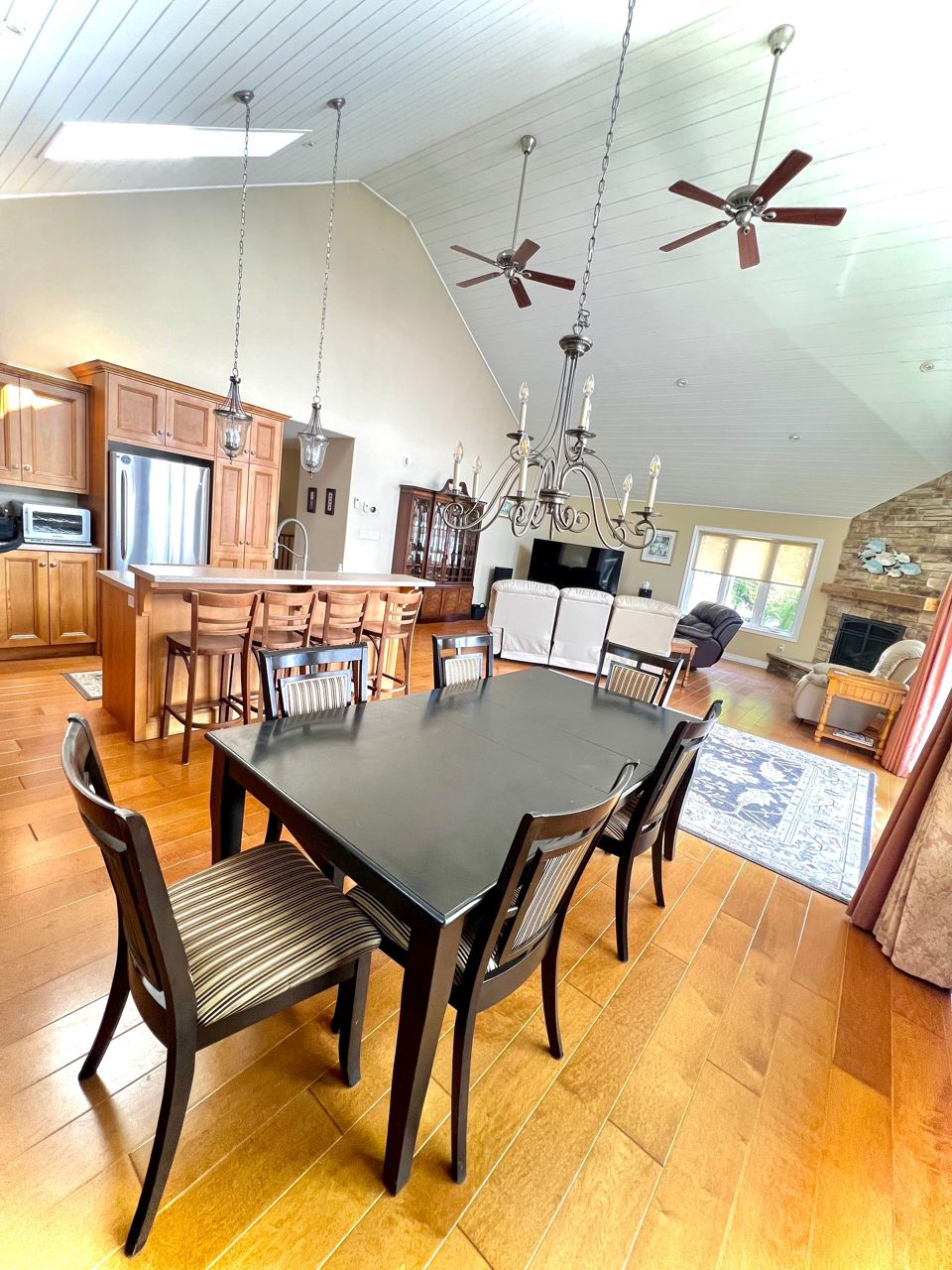 Stunning Bungalow with the Spectacular view of lake , Cathedral Ceiling, 3 bedroom & 3 bath , walkout on main and lower levels, in-floor heating system, Maibec exterior siding, new roof as of 2022, interlocking brick driveway, Concrete Breakwall, Stone Fireplace, 25' Dock, Turn-key, Just move in .all light fixtures, all furnishing included. excl: 4 muskoka chairs, 2 kayaks and kayak holder.