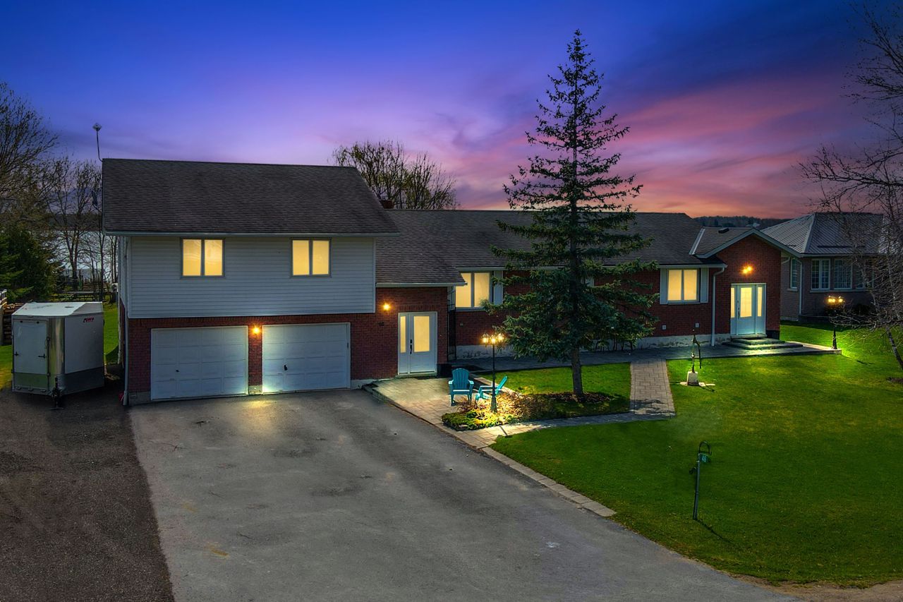 Lake Scugog home features 100 feet of waterfront. Main house has split level front entrance & open concept living/dining/kitchen. Chefs Island, solid surface counters & plenty of storage. Living/Dining with walk out to private deck, above ground pool & stunning lakeviews. Upper level has 3bed w 3pc bathroom. Lower level has a cozy rec room w/gorgeous entertaining bar, fireplace, 3 pc bathroom, mud room & access to the attached double car garage & exterior hot tub. Second side has separate entrance/full foyer, spacious chefs kitchen, eat in dining, grande great room w floor to ceiling windows and enchanting views & walk out to separate private deck. 2 bed & 3 pc washroom w glass shower. 2 separate lower levels one full workshop, one recreational area & full bathroom. Utility area & laundry. This home is so efficient with Geothermal Heating & Cooling w lake loop & minimal utility costs. Property is a rare find with 3500 Sq Ft on main level & lower level, caters to multi familyStunning large country lot with the benefit of lake life. Lake side gazebo, dock & dry boathouse/shed at the shoreline. Boat to the Lindsay locks & gain access from Scugog to Sturgeon & Cameron being part of the Trent Waterway.
