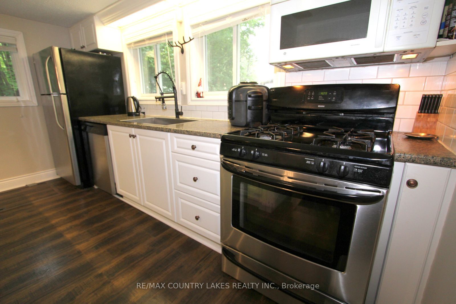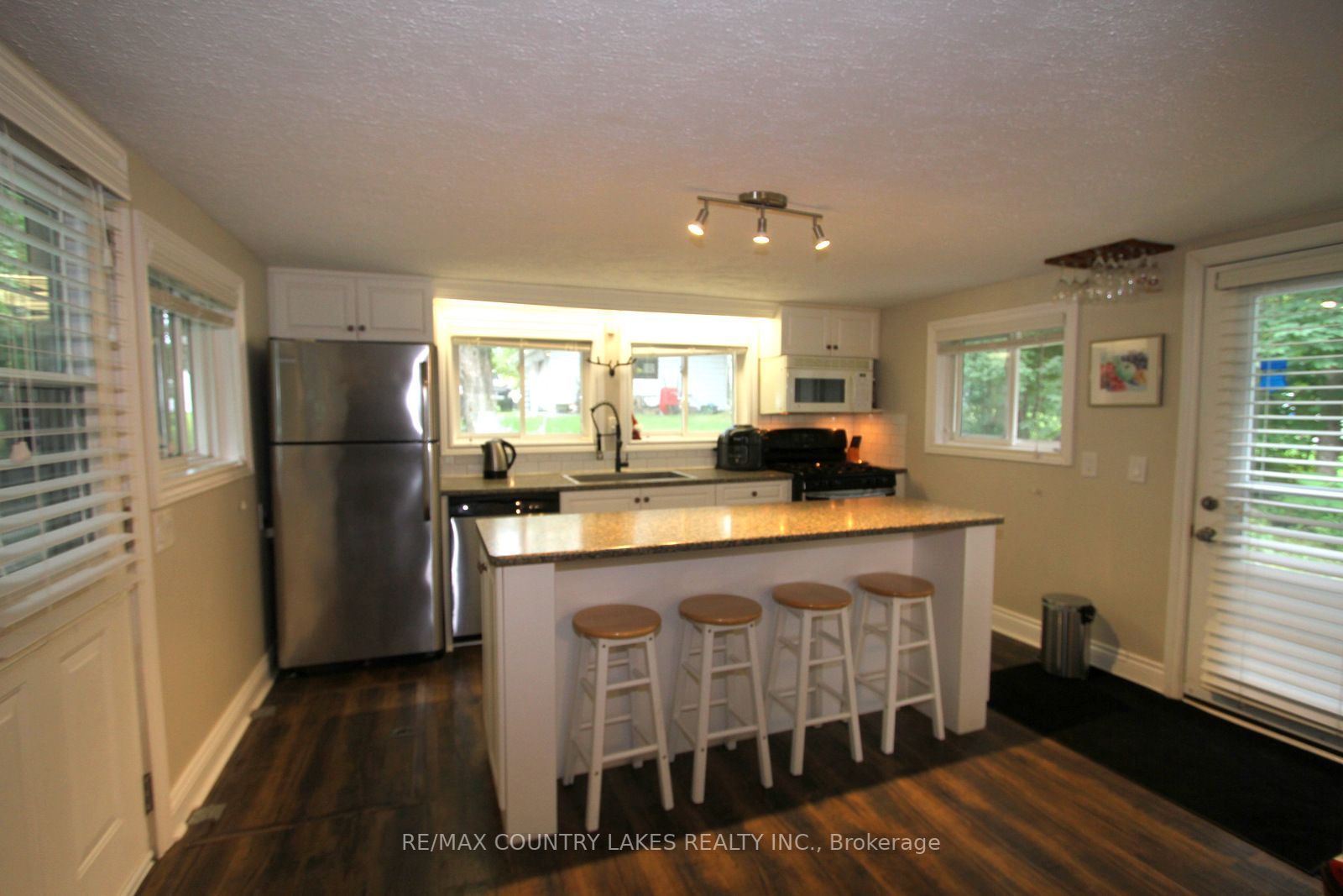 Enjoy the serenity of nature stunning sunsets & hearing the calls of the loon. This updated and 'move in ready' 3-bedroom year-round waterfront home on Mitchell Lake is an opportunity to own waterfront. Enjoy 64 feet of frontage with sandy shoreline c/w concrete retaining wall, boat launch, 30ft of dock, westerly exposure and stunning views across lake to woods and farm fields. Mitchell Lake is part of the Trent Severn Waterways with direct access to Balsam Lake, great fishing, swimming and endless boating. Open concept layout, kitchen with large center island, s/s appliances and walkouts to yard. Nice size living room with bay window overlooking water, airtight wood stove, air exchanger, central vacuum and walkout to large deck. 3rd bedroom combined with laundry c/w stackable washer dryer. Also offers the potential to work-from-home with high-speed Starlink Internet. Propane force air heat, steel roof, detached double car garage for the toys and dead-end street with no traffic.ATV trails and close proximity to OFSC snowmobile trails. Yearly road maintenance fee $150.00. Approx. 1.1/2 hrs from GTA.