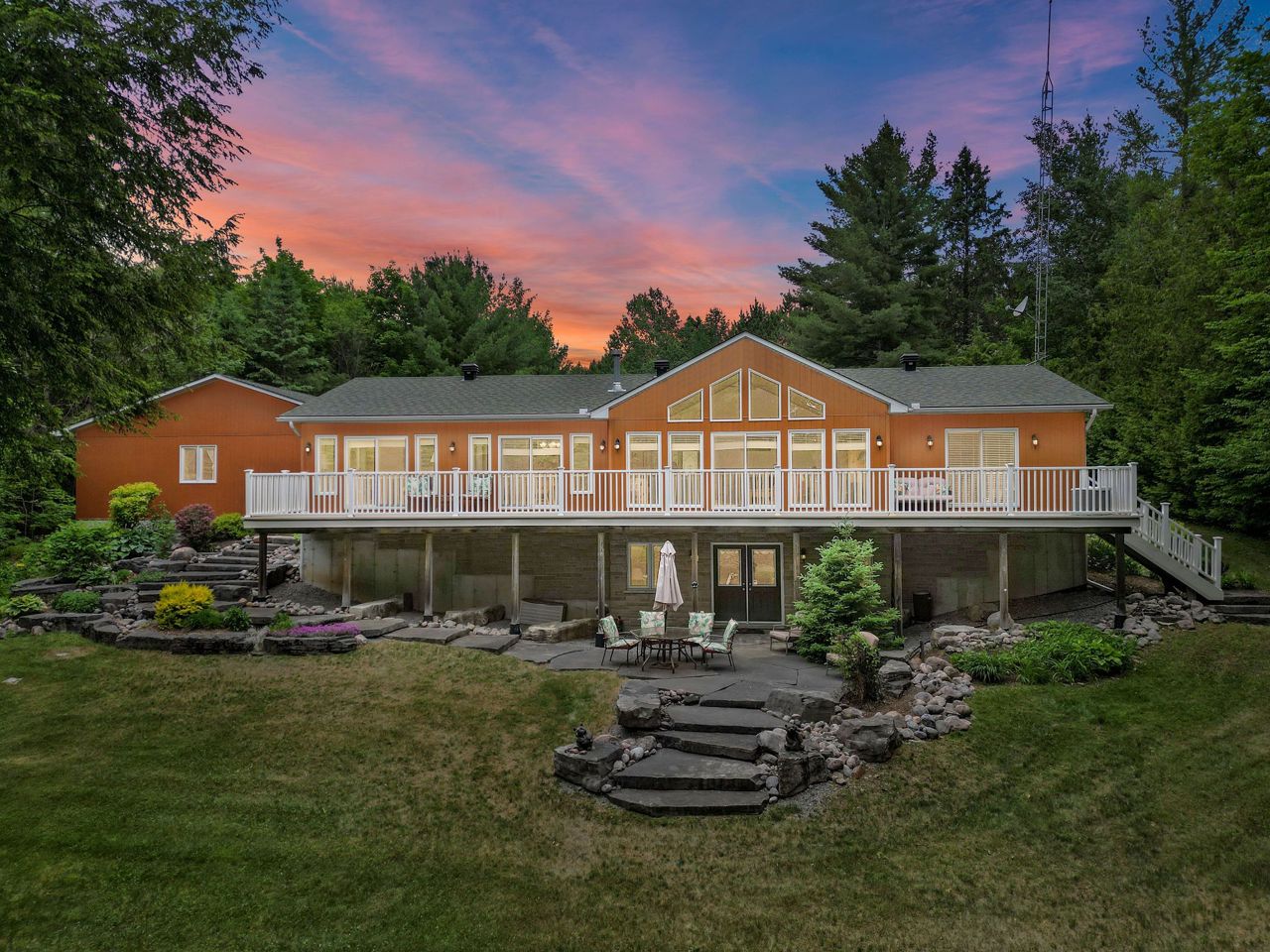 Custom built Royal Home with 6 (six) car garage measuring 47x39. Over 4000 sq ft of living space with 2210 Sq ft on both floors in one of the most desirable neighbourhoods "Black Bear Estates" on the Burnt River. This home boasts 3 bedrooms, 4 baths including ensuite, gorgeous living room with cathedral ceilings and 2 sided gas fireplace. Just under 140 ft of water-frontage with level access to water, new cedar dock and extensive natural stone landscaping all located on 1.66 acres with mature trees. The Burnt River is part of the Trent System & allows easy access to Cameron Lake. Open concept home with 4 patio doors to large composite maintenance free deck, plus full walkout on lower level. Lovely sunroom with French doors and fully finished rec/games room area with electric fireplace complete with main floor laundry. Oh, I did tell you about the 6 (six) car garage, right!Legal:PCL 7-1 SEC 57M765; LT 7 PL 57M765; KAWARTHA LAKES T/W EASE OVER BLOCK 8 PL 57M765 AS IN LT16969.