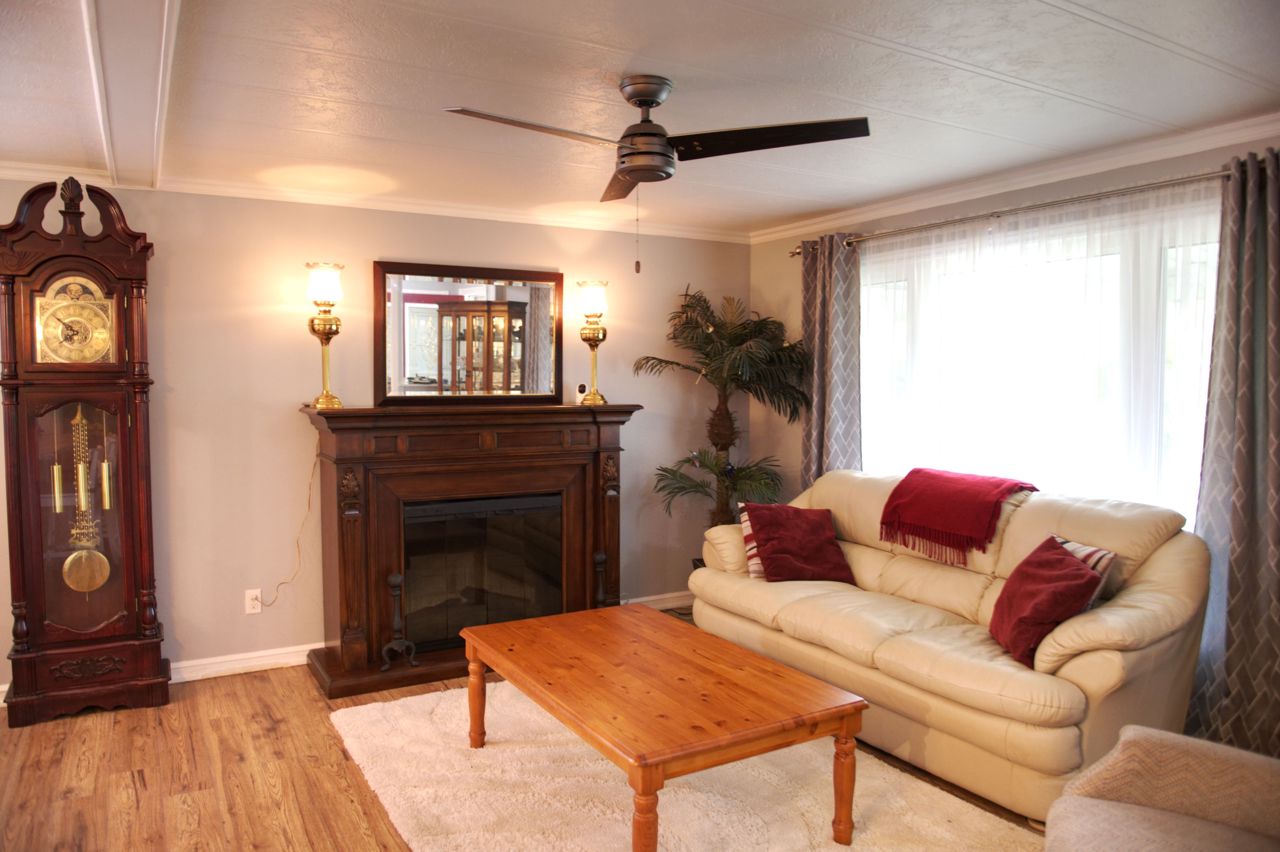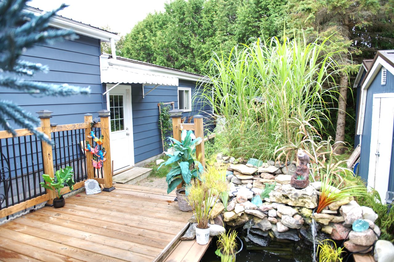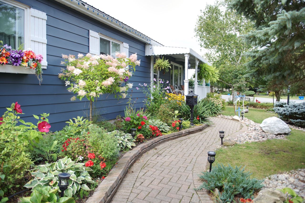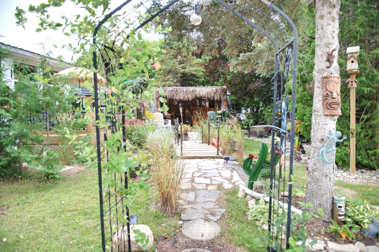 This 2 bed 2 bath bungalow is spectacular to look at as it is landscaped like no other. Front covered porch, double car attached garage , 2 large mennonite built sheds and a super fun tropical gazebo. ALL THIS with a land lease of $676.00 per month. GREAT News... this fee includes TAXES, WATER, and SEPTIC MAINTENANCE, POOL & CLUBHOUSE with shuffleboard, darts, library, day games, evening games and social events. You will love this living !