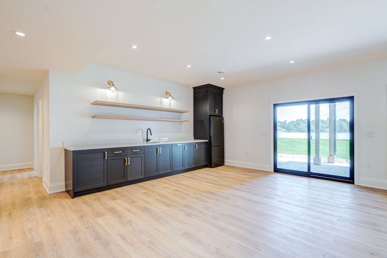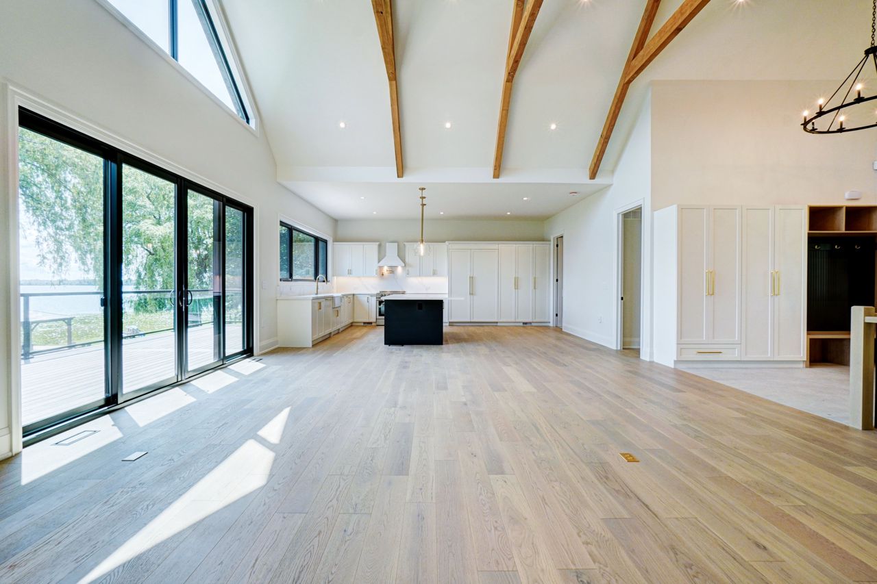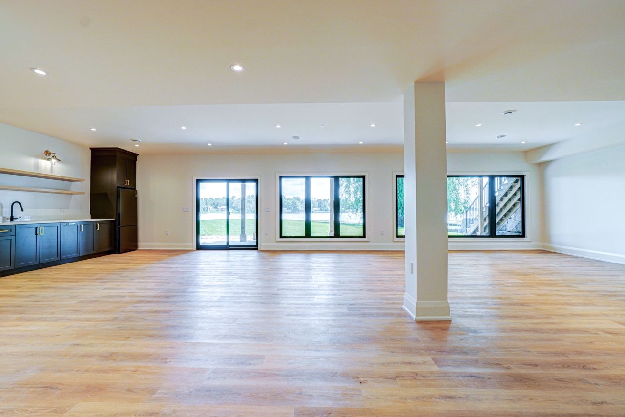 builtin separate fridge and freezer. Large dining area overlooking the water, walkout to the deck.