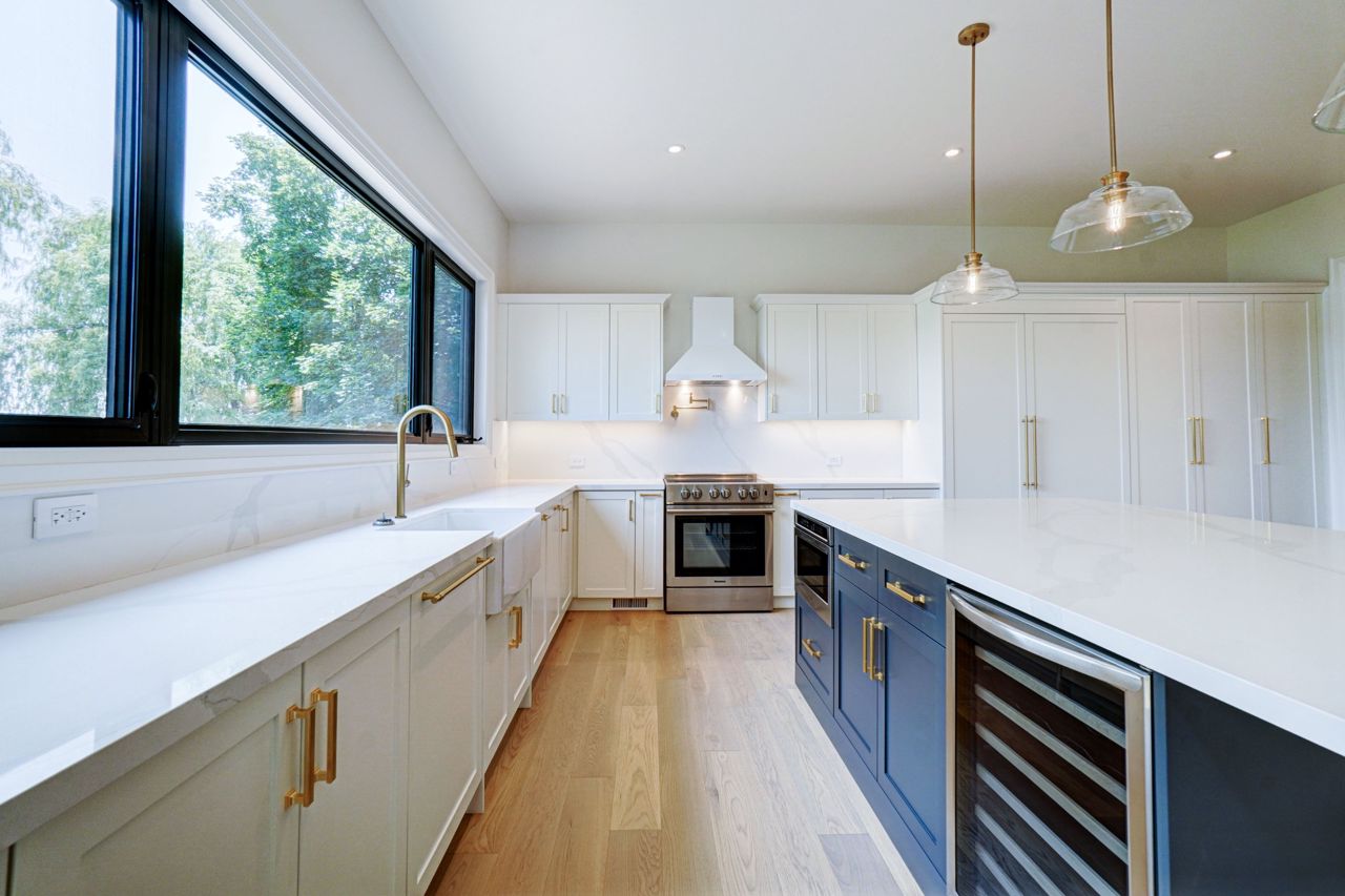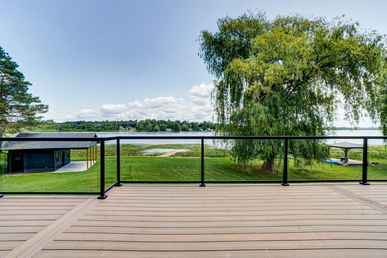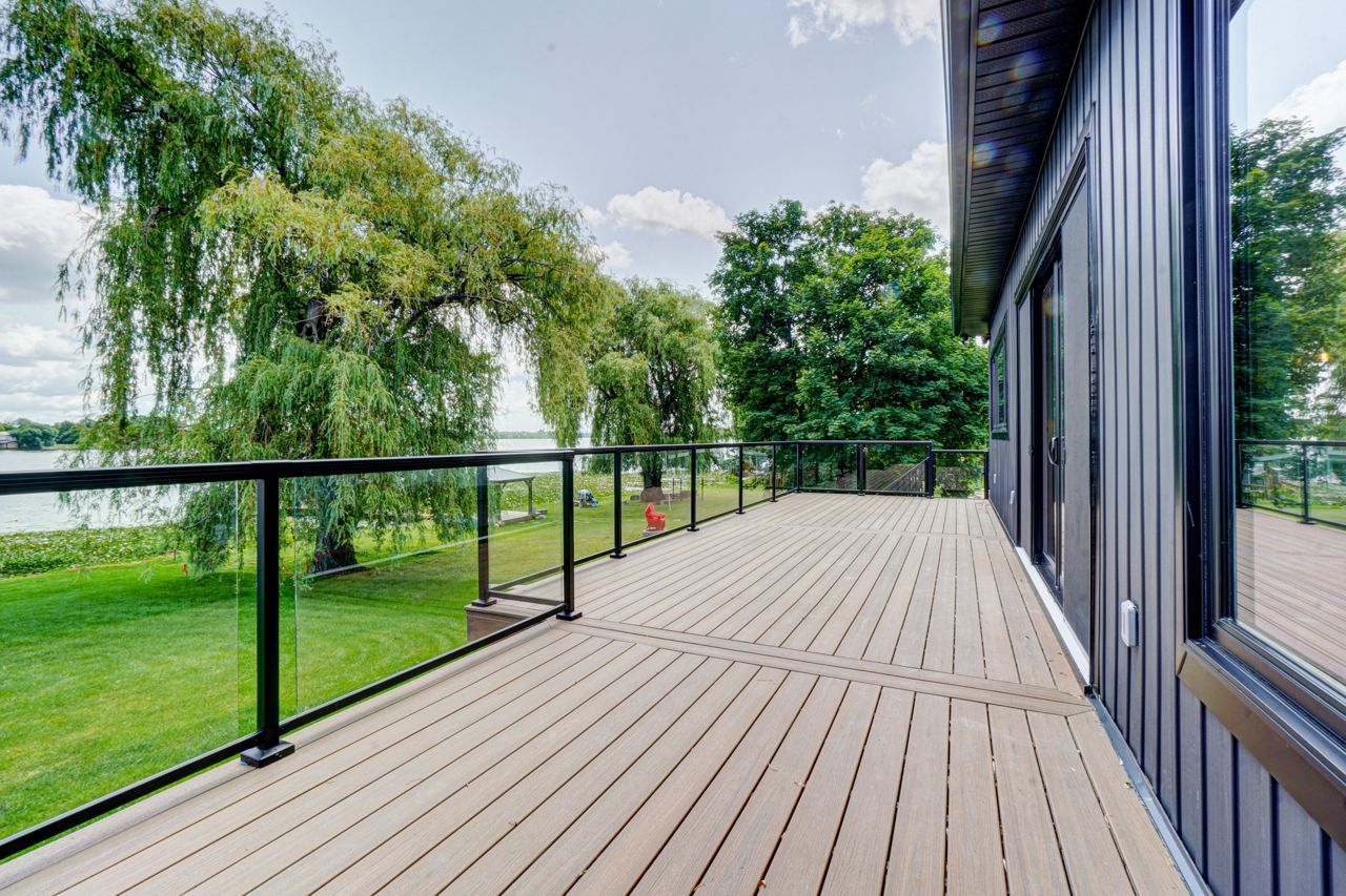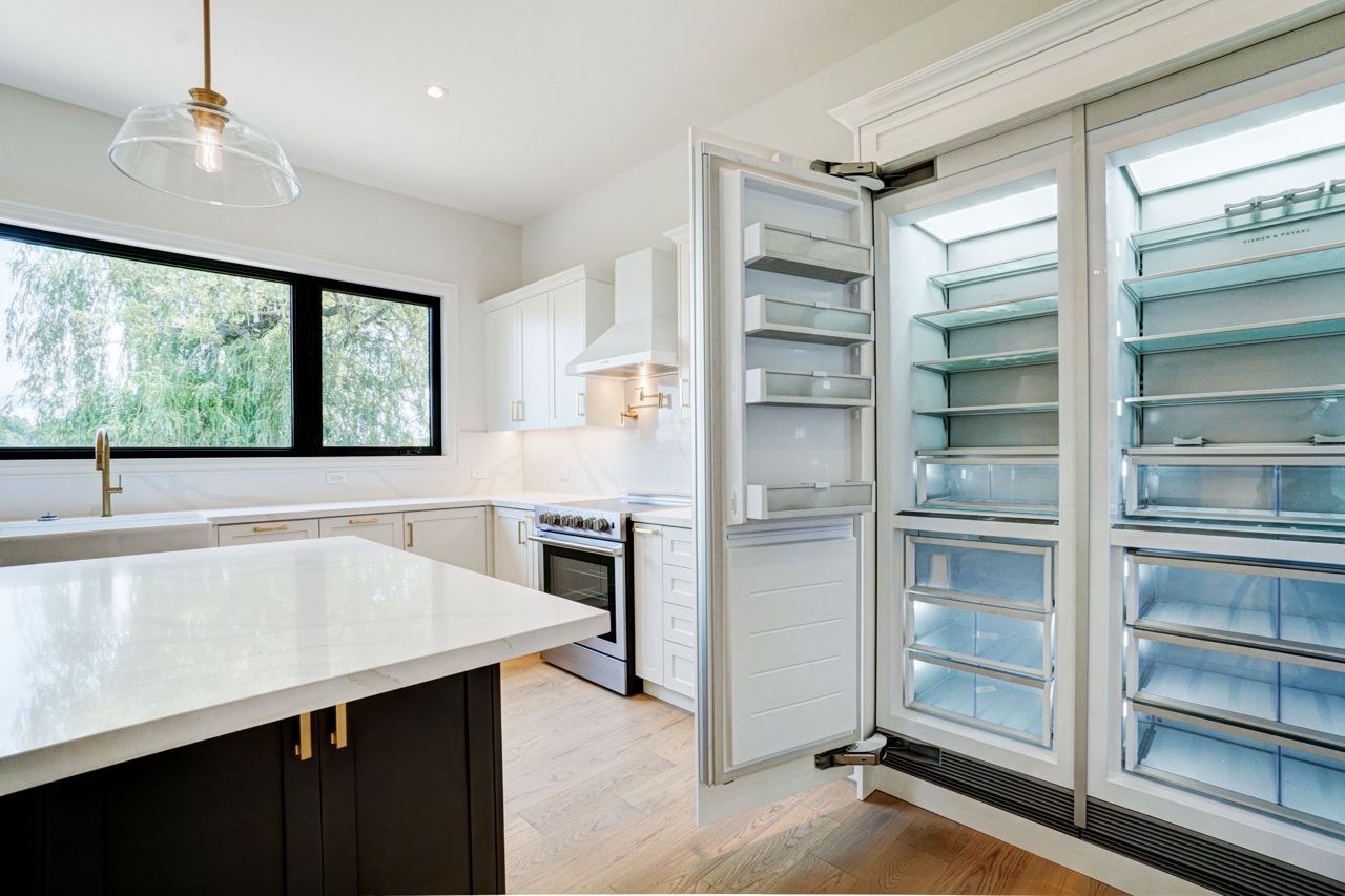 builtin separate fridge and freezer. Large dining area overlooking the water, walkout to the deck.
