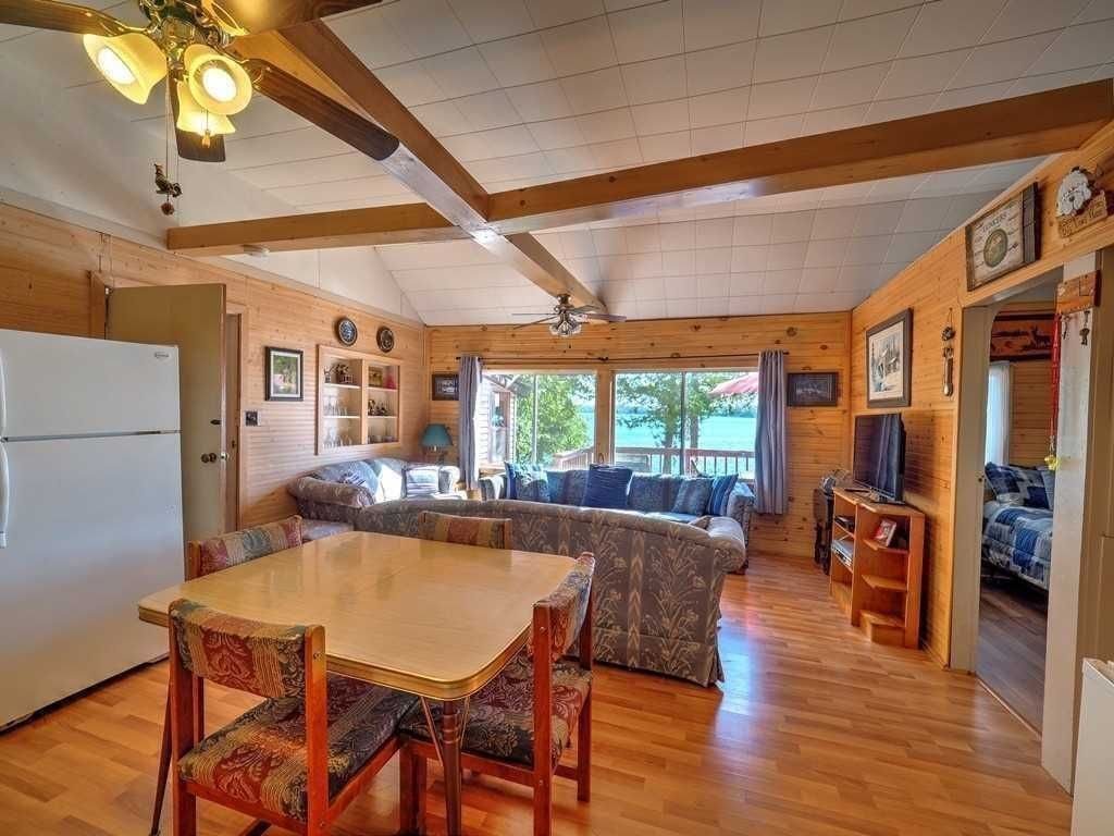 A Well Maintained Three Season Cottage On Four Mile Lake. A Generous 120 Ft Of Very Private Waterfront On A Gently Sloping Low Maintenance Lot On Wilkinson Drive, Which Has Some Of The Best Waterfront On The Lake. The Cottage Is Sited Near The Waters Edge And The Views Are Spectacular From Both The Interior Living Area With Its Large Windows And The Deck. Can Accommodate A Large Family As It Has Five Bedrooms And A Spacious Bunkie With Two Large Bunk Beds.The Property Comes Completely Turn-Key, With All Furnishings Included As Well As A 16 Ft Bowrider Boat And Trailer (As Is), A 12' Aluminum Boat (As Is), And A Canoe. The Property Is An Easy Drive From The Gta. A Quick Closing Is Possible.