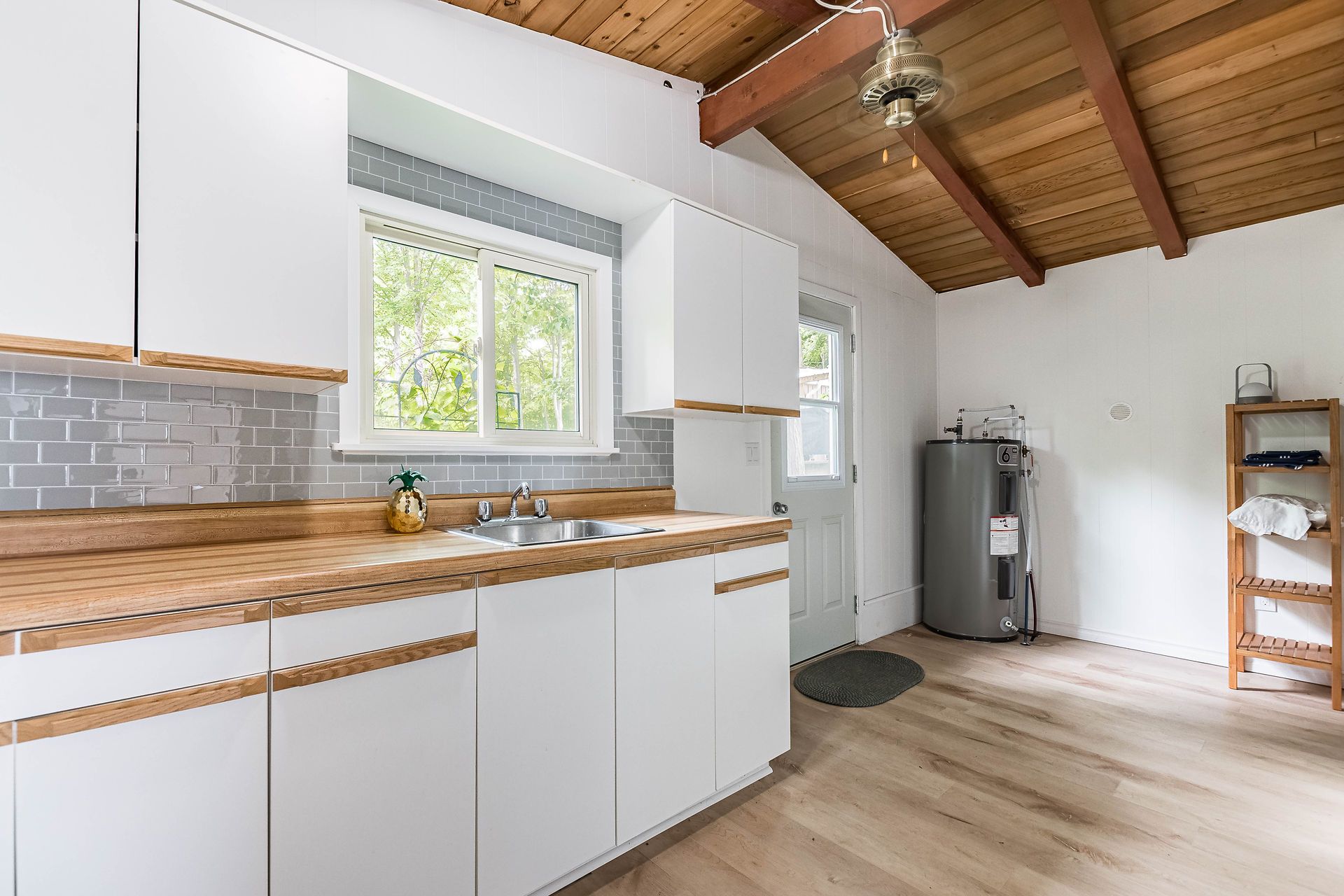 Enjoy the days and evenings by the water on the platform dock or on the deck of the updated single track boat house complete with a living area, new 3pc washroom, kitchenette and bunk beds.