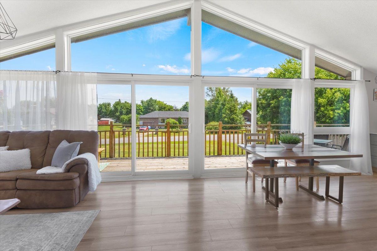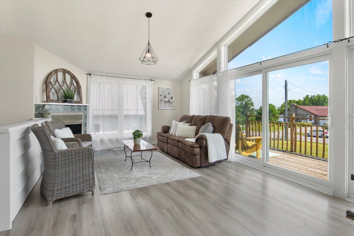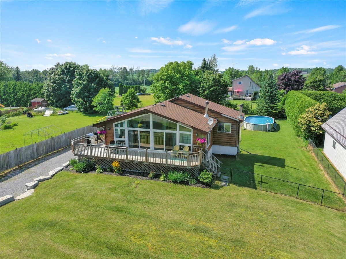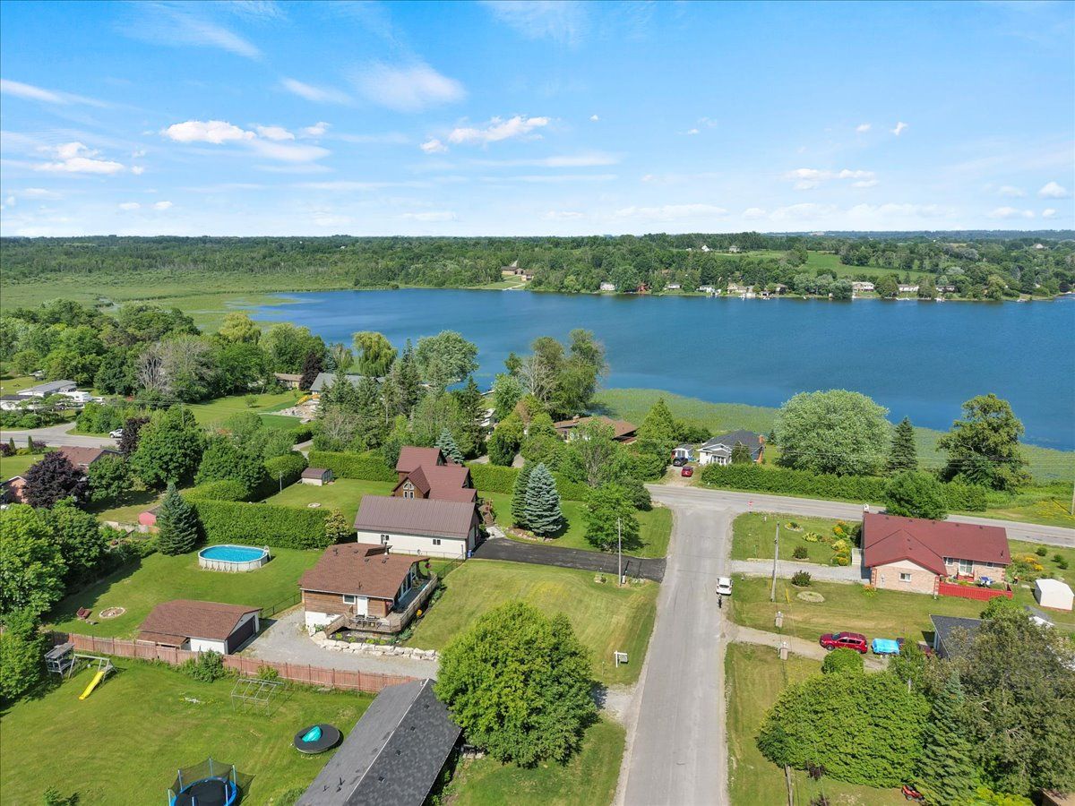 Sip a glass of wine on the 40 ft deck overlooking lake Scugog. 3 bedroom bungalow with open kitchen/family room combo + cathedral ceilings and a full wall of glass. Newer kitchen cabinetry with centre island, upgraded baths and a walkout lower level. 2 fireplaces including a pellet stove to keep the home warm. Family room down with an extra bath and a perfect work at home space with views over the 200 ft lot. Massive garage with 3 entry points, hydro – a perfect place to store snowmobiles and atv’s ready to hit the trails.Steps from the public lake access. This home is in a lovely family friendly neighborhood and a short drive to Little Britain and the Regions best butter tarts.