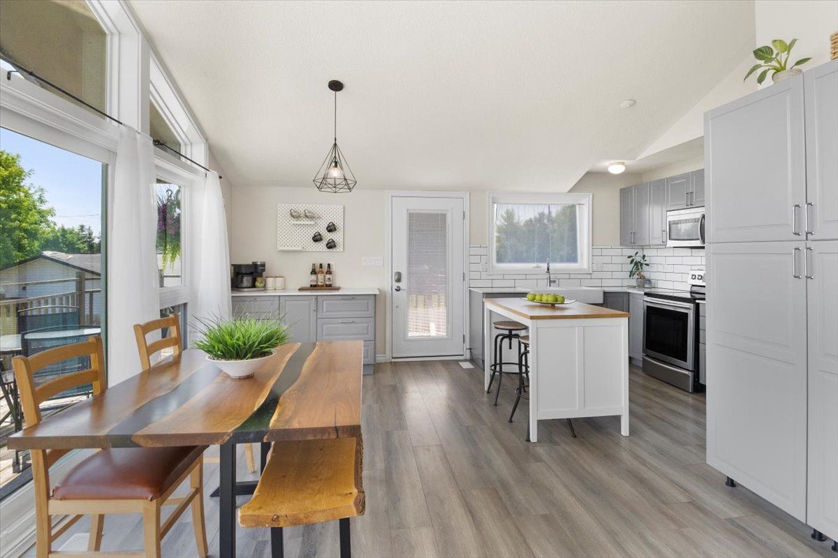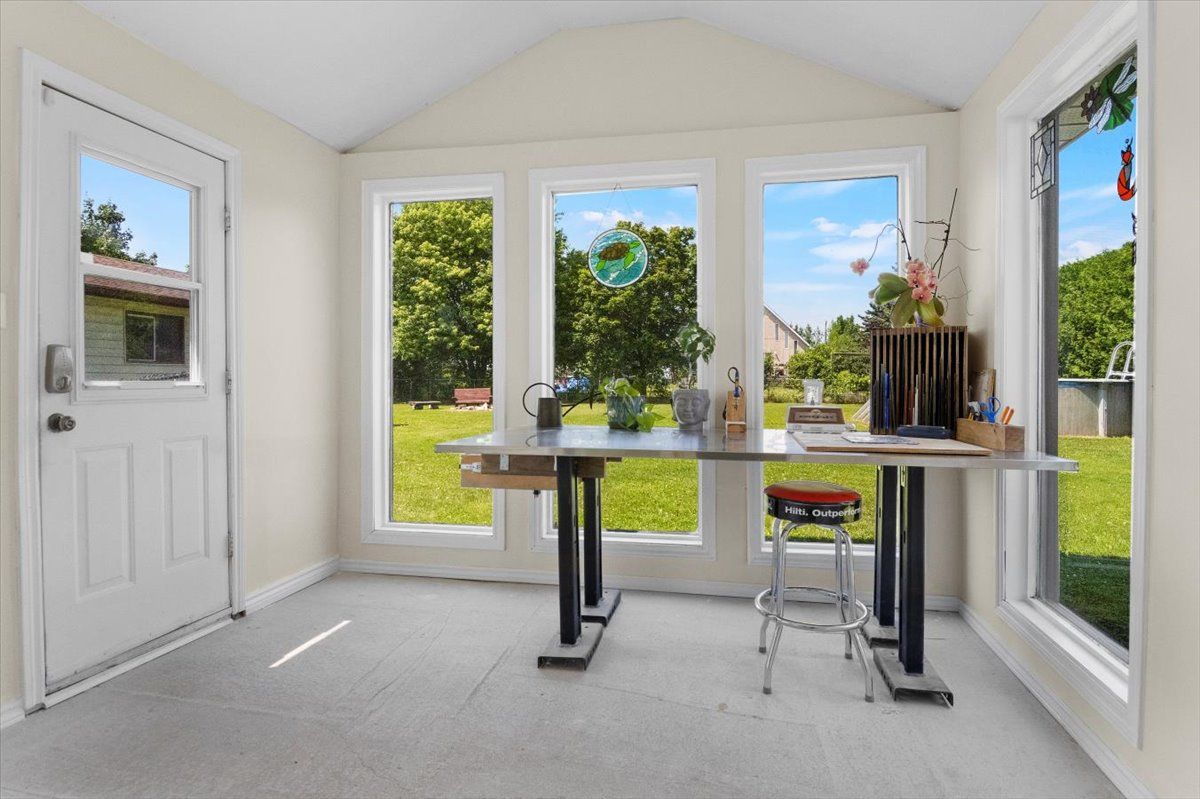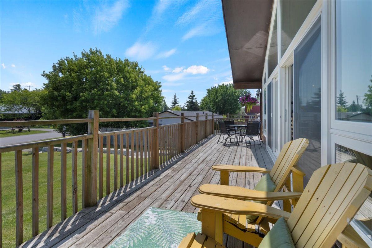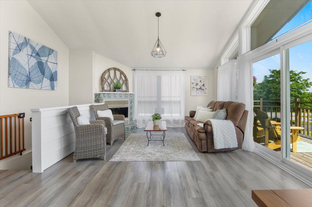Sip a glass of wine on the 40 ft deck overlooking lake Scugog. 3 bedroom bungalow with open kitchen/family room combo + cathedral ceilings and a full wall of glass. Newer kitchen cabinetry with centre island, upgraded baths and a walkout lower level. 2 fireplaces including a pellet stove to keep the home warm. Family room down with an extra bath and a perfect work at home space with views over the 200 ft lot. Massive garage with 3 entry points, hydro – a perfect place to store snowmobiles and atv’s ready to hit the trails.Steps from the public lake access. This home is in a lovely family friendly neighborhood and a short drive to Little Britain and the Regions best butter tarts.