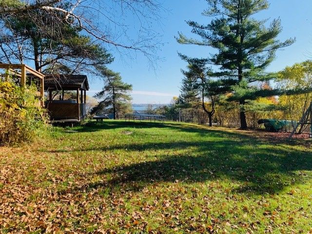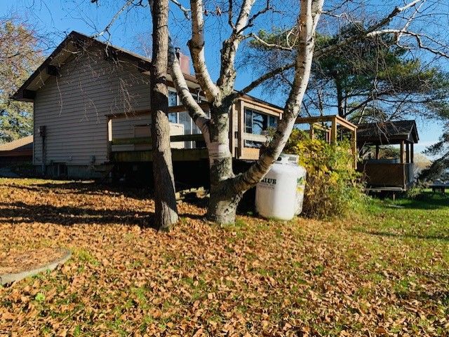 Live near the lake & enjoy beautiful views of Lake Sc ugog.This bungalow with walkout basement is perfectly situated on huge corner lot overlooking the lake.Just shy of 3/4 acres enjoy fully fenced yard w/mature trees,plenty of parking.Main floor offers 1 bed,1 bath,vaulted ceilings,open kitchen & DR.LR has propane f/p,multiple walkouts to newer deck.Excellent potential to make property your own do your own upgrades & finishing touches. (Main floor heat pump not functioning).Kitchen counter top will be installed before closing.