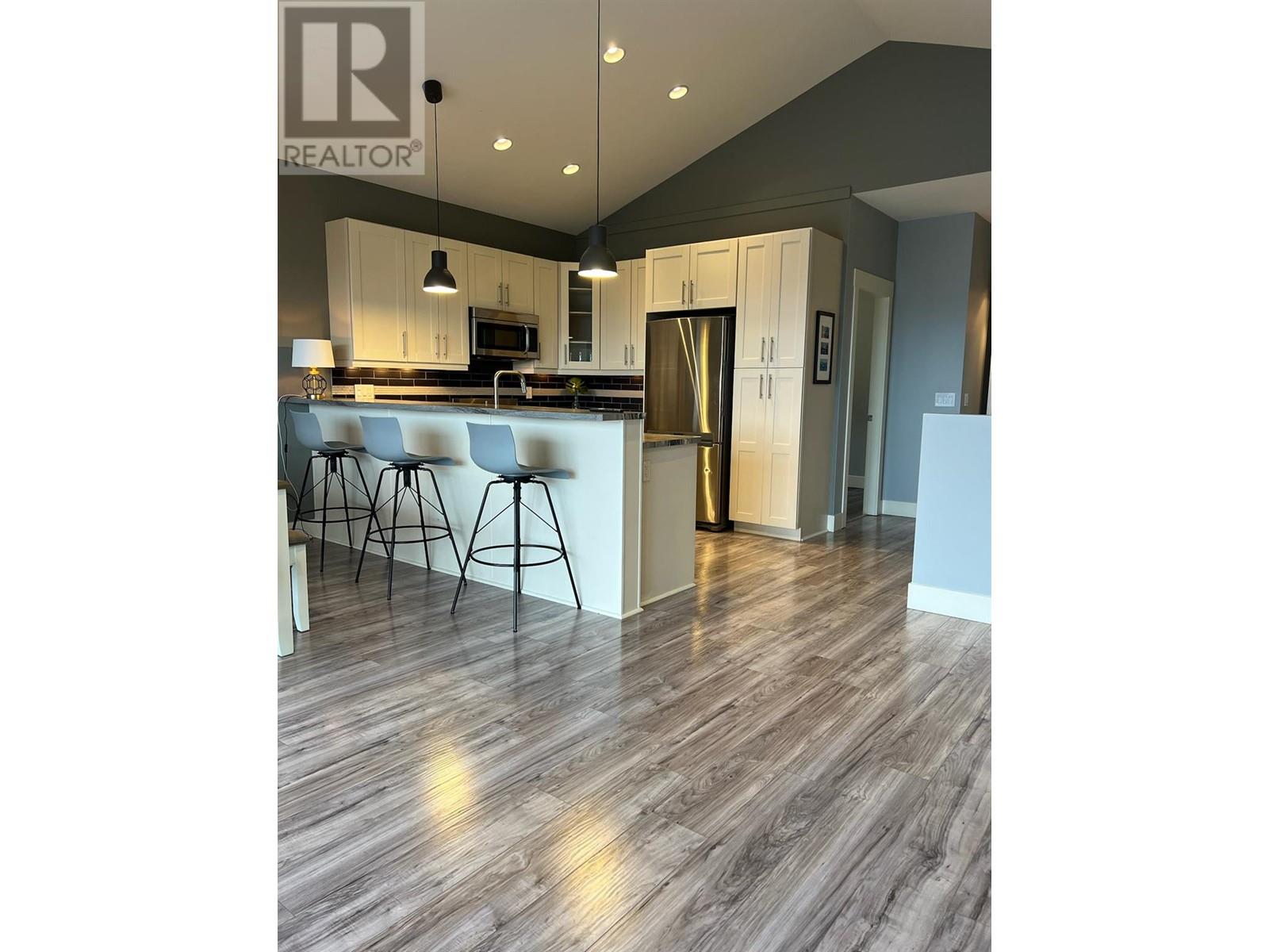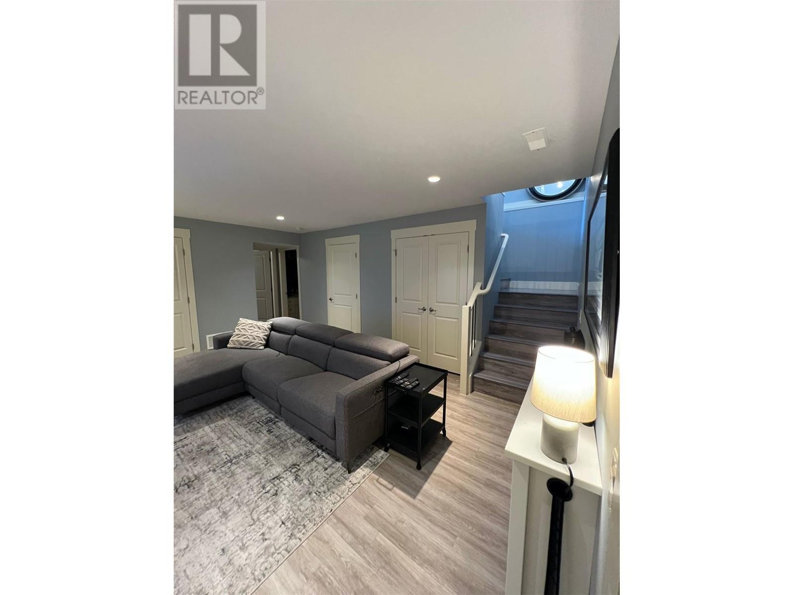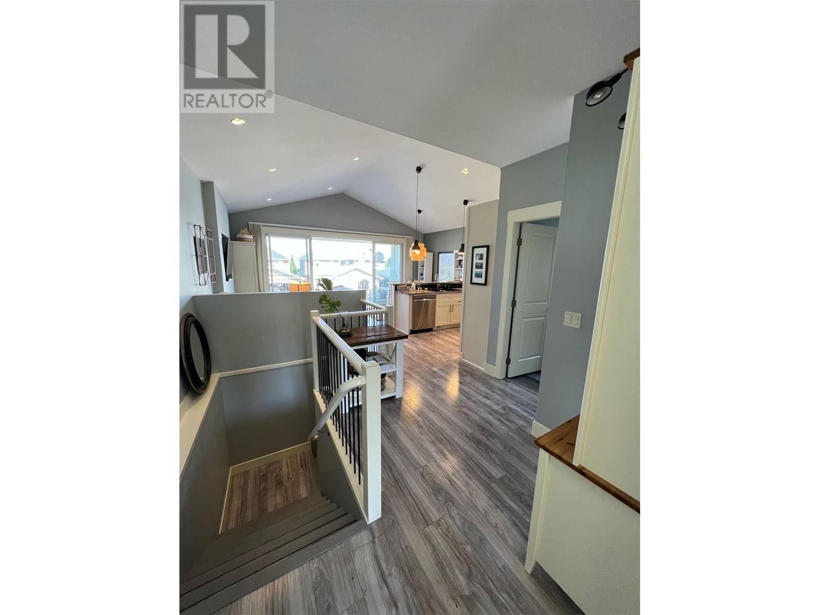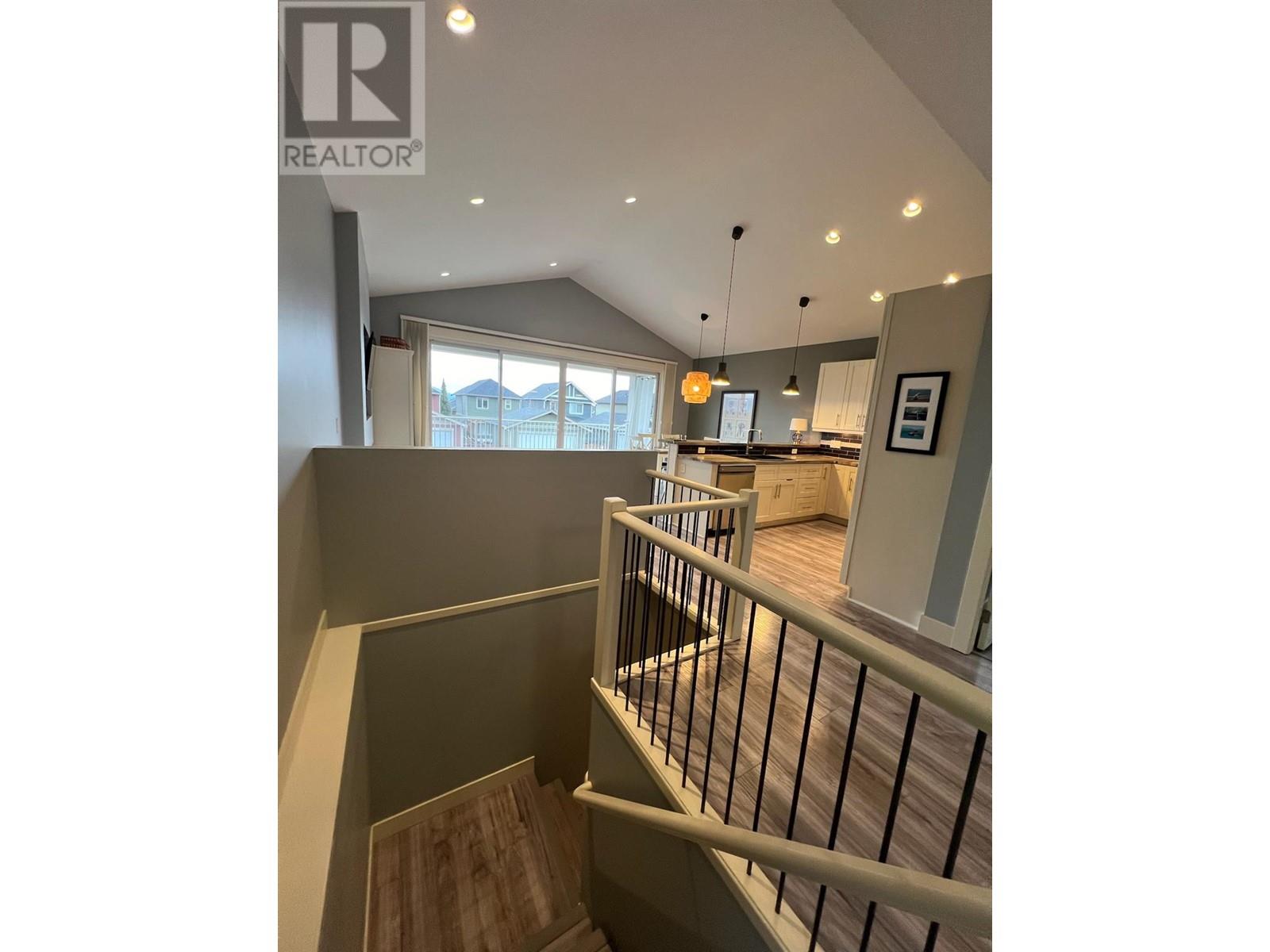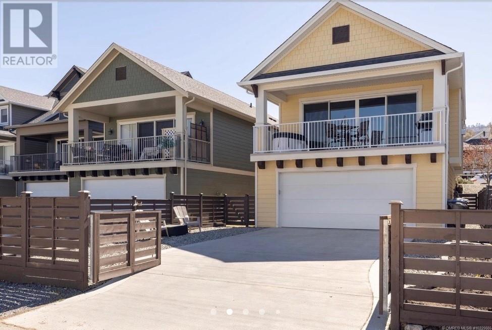 Built in 2013 this beautiful south facing home, boasts vaulted ceilings in the main living area with over-sized sliding glass doors providing easy access to the large covered deck where you can enjoy gorgeous Okanagan summer sunsets, amazing mountain views and a view to the lake and city. The kitchen is open to the central floor plan which includes stainless steel appliances, dual fuel gas stove, a raised counter top bar, updated pendants, under cabinet lighting, soft close cabinetry and tile backsplash. The primary bedroom is on the main floor with ensuite featuring double sinks and a large soaker tub. Also on the main floor, you'll find another bedroom, powder room, living room & dining area. Downstairs leads to a large family room, great for watching movies and relaxing. The third bathroom and bedroom are also located on the lower level. The renovated laundry room features stacking washer/dryer with shiplap, great lighting and new vinyl flooring. Other features include an oversized double garage wired with 240V. Lots of room for additional parking with lane-way access. The fully fenced yard is very low maintenance and comes with a 6 zone sprinkler system. Natural Gas fireplace, gas range, gas furnace and air conditioning. Great community, 3 min walk to Canyon Falls Middle School, 4 min walk to the new Mission Village shopping centre and there are countless trails for walking/hiking and mountain biking right from your back door. (id:22211)