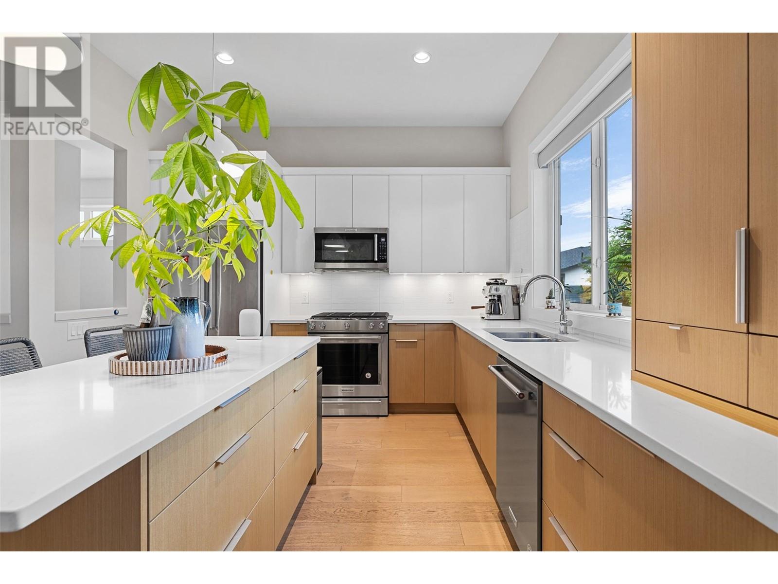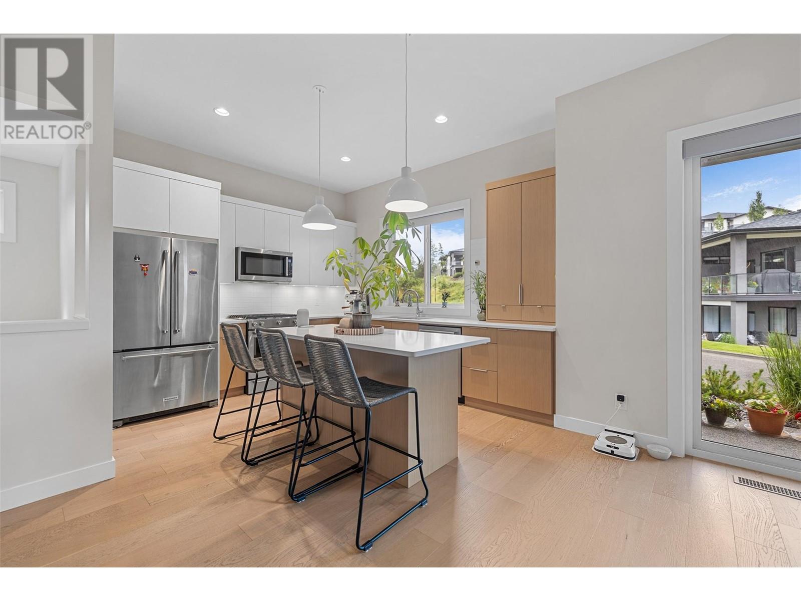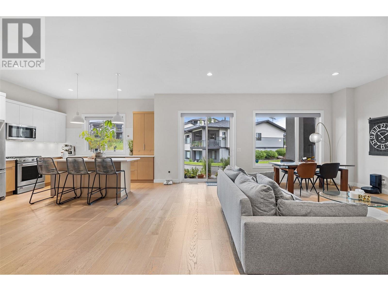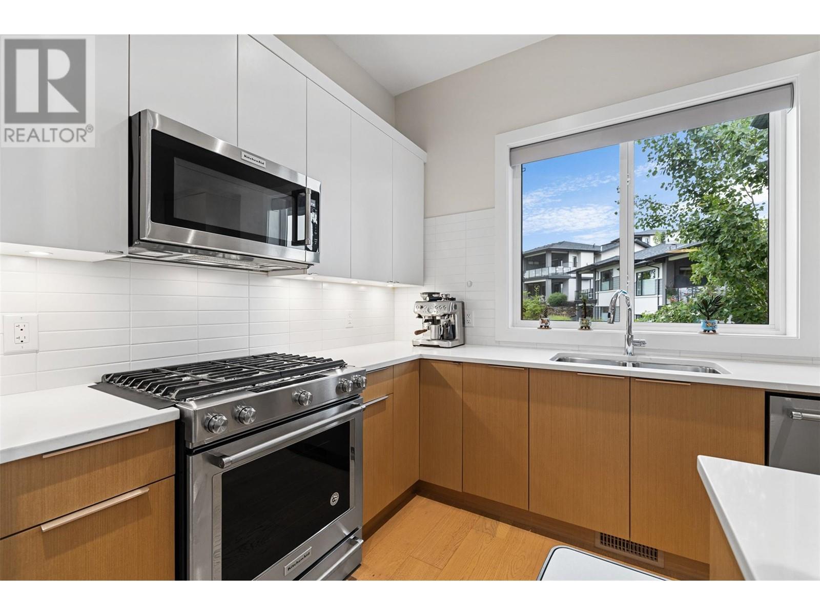 Discover luxurious living in this stunning semi-detached 4-bedroom, 3-bathroom south-facing home, offering over 2100 sq ft of modern elegance. With a spacious double garage and double parking out front, convenience meets style in every corner. Step inside and be greeted by the lower level, featuring 9 ft. high ceilings and a uniquely wide hallway that adds a sense of spaciousness rarely found in townhomes. This level hosts a versatile bedroom/office with, a second bedroom/gym room, and a full bathroom. The laundry room and utility room are also conveniently located on this floor, ensuring noise is separated from the main living area. Ascend to the main living area where 10 ft. high ceilings create a feeling of openness. This home boasts abundant natural light flooding through its large south-facing living room windows. The contemporary kitchen, equipped with a gas range, sleek quartz countertops, and a tasteful layout of cabinetry, flows seamlessly into the adjacent living room, leading to a generous covered patio. Here, you can enjoy serene afternoons, surrounded by beautiful landscaping. Located in the highly sought-after Wilden neighborhood, this home offers tranquility and peace while being close to all essential amenities. This home also features several upgrades, including Lutron noiseless electric blinds in living room and a low-maintenance water softener. The highly energy-efficient construction (BC step code 4), ensuring sustainability and cost savings. (id:22211)