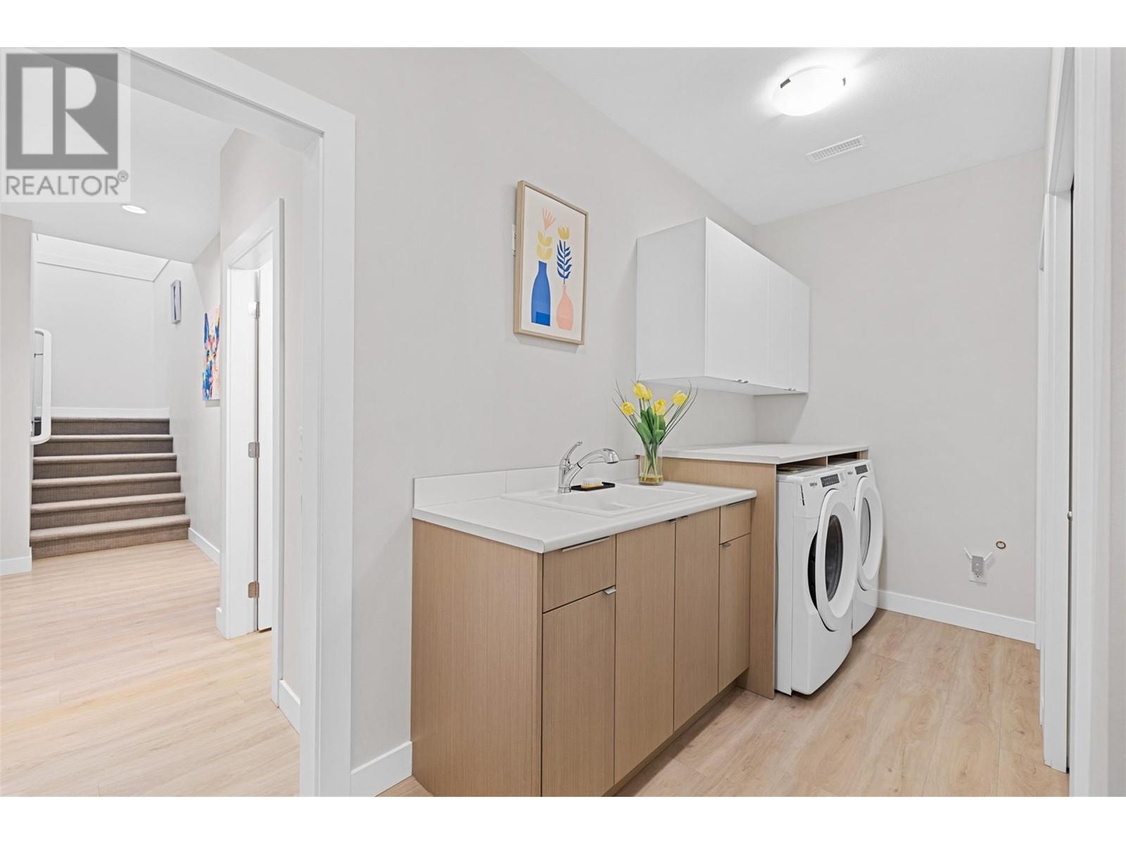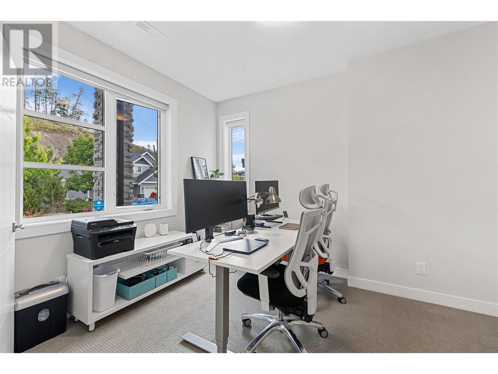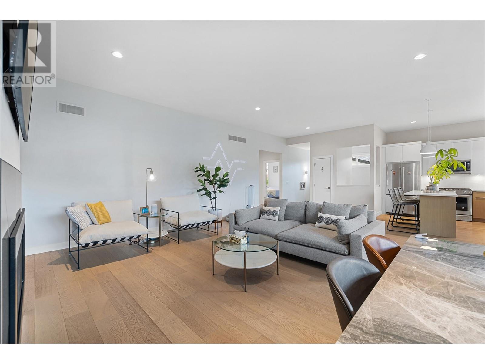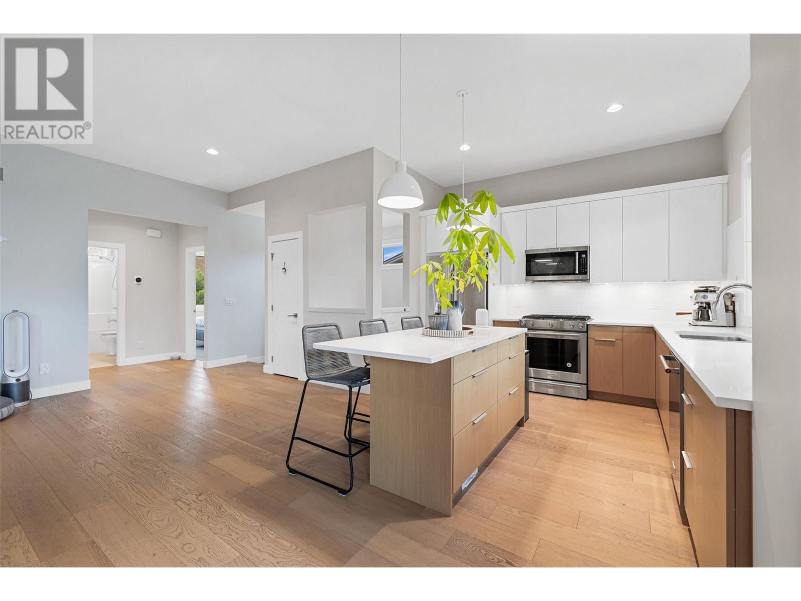 Discover luxurious living in this stunning semi-detached 4-bedroom, 3-bathroom south-facing home, offering over 2100 sq ft of modern elegance. With a spacious double garage and double parking out front, convenience meets style in every corner. Step inside and be greeted by the lower level, featuring 9 ft. high ceilings and a uniquely wide hallway that adds a sense of spaciousness rarely found in townhomes. This level hosts a versatile bedroom/office with, a second bedroom/gym room, and a full bathroom. The laundry room and utility room are also conveniently located on this floor, ensuring noise is separated from the main living area. Ascend to the main living area where 10 ft. high ceilings create a feeling of openness. This home boasts abundant natural light flooding through its large south-facing living room windows. The contemporary kitchen, equipped with a gas range, sleek quartz countertops, and a tasteful layout of cabinetry, flows seamlessly into the adjacent living room, leading to a generous covered patio. Here, you can enjoy serene afternoons, surrounded by beautiful landscaping. Located in the highly sought-after Wilden neighborhood, this home offers tranquility and peace while being close to all essential amenities. This home also features several upgrades, including Lutron noiseless electric blinds in living room and a low-maintenance water softener. The highly energy-efficient construction (BC step code 4), ensuring sustainability and cost savings. (id:22211)