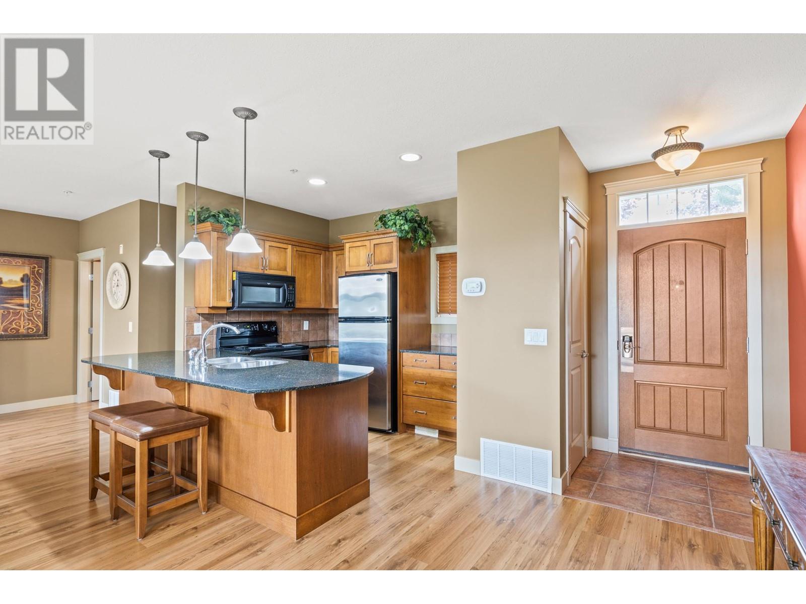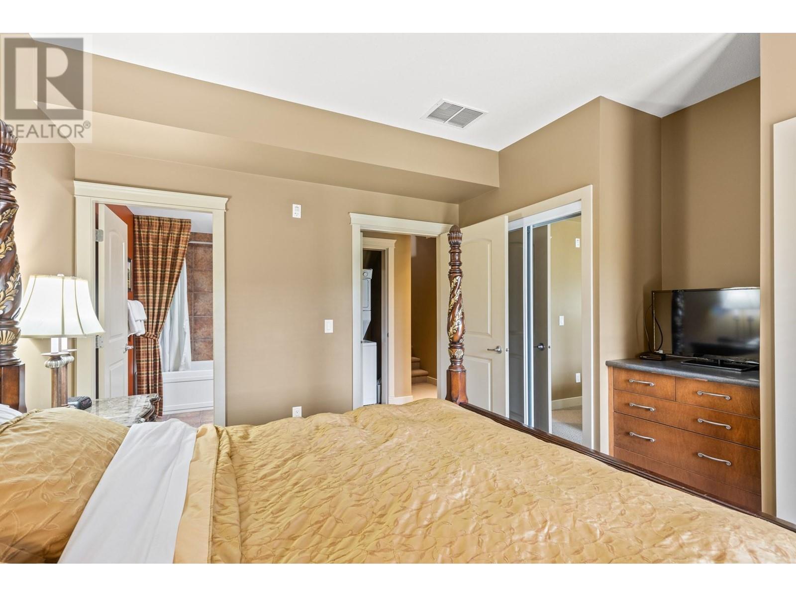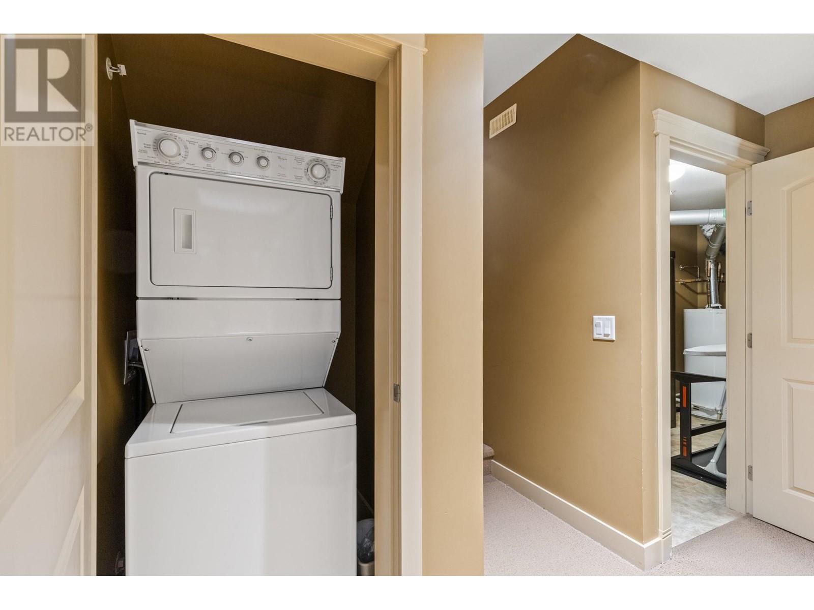 Welcome to Unit 127 in the renowned Bella Sera community adjacent to Quail Ridge Championship Golf Course. Walking into this unit, you will be greeted with beautiful forrest and mountain views directly out the back east facing windows. The kitchen boasts a granite countertop, sunken in sink, a mix of black and stainless appliances and durable wood-grain laminate flooring throughout! Next to the kitchen is a cozy living room that is situated around the large gas fireplace. Tucked away in the corner is a 2 piece bathroom, right next to the stairs which leads us to the lower level. On the lower level, you will find two spacious bedrooms, each with its own en-suite bathroom for added privacy. Fitted on the same floor as the bedrooms, there is a stacked washer and dryer, and a large utility room providing ample storage space. Amenities include: heated pool, hot tub, and fitness room. Conveniently located within walking distance UBCO and minutes to the University District, and the Kelowna International Airport. This townhouse presents an amazing opportunity for a multitude of different lifestyles! Book your showings and visit this beautiful townhome! (id:22211)