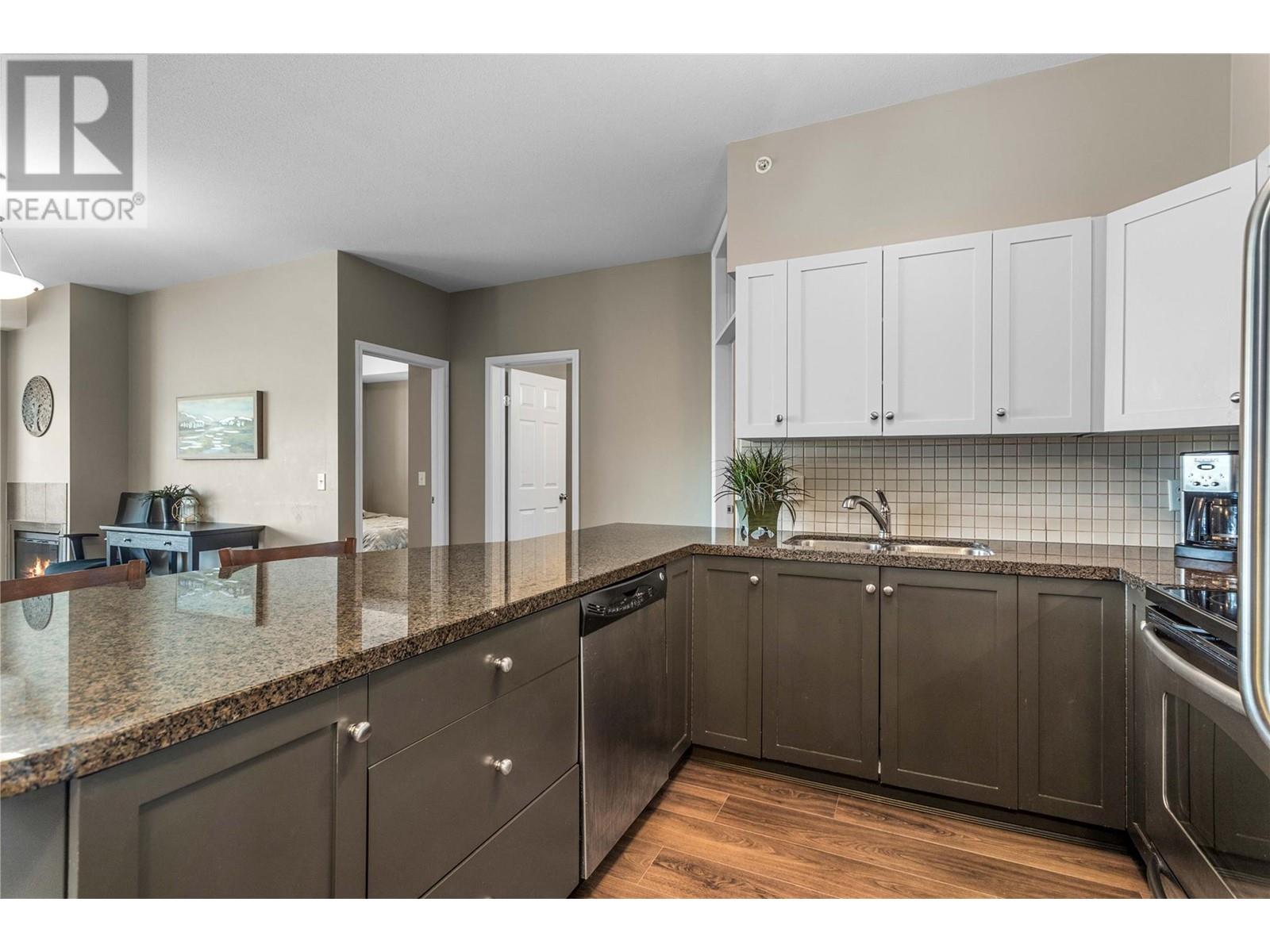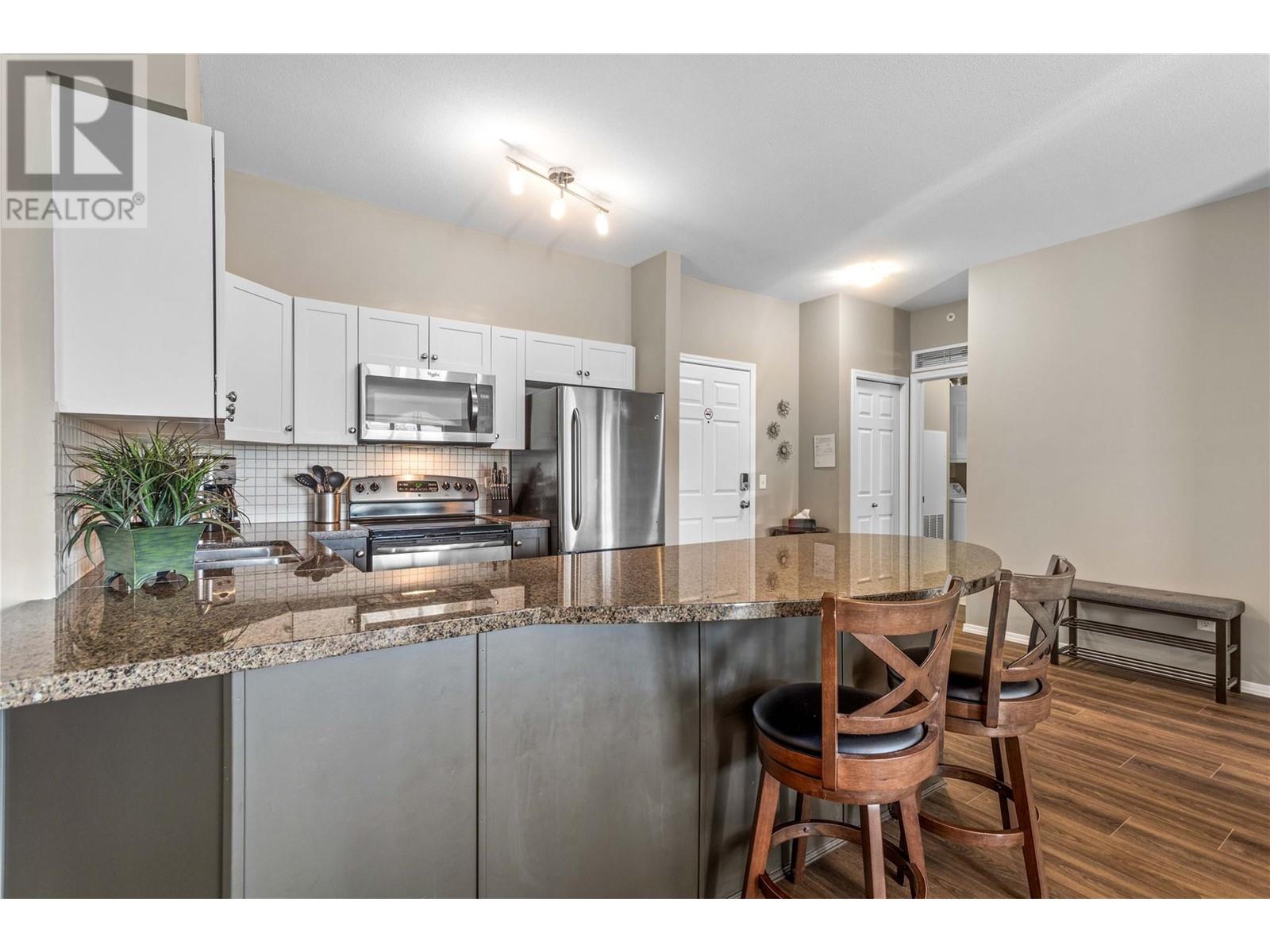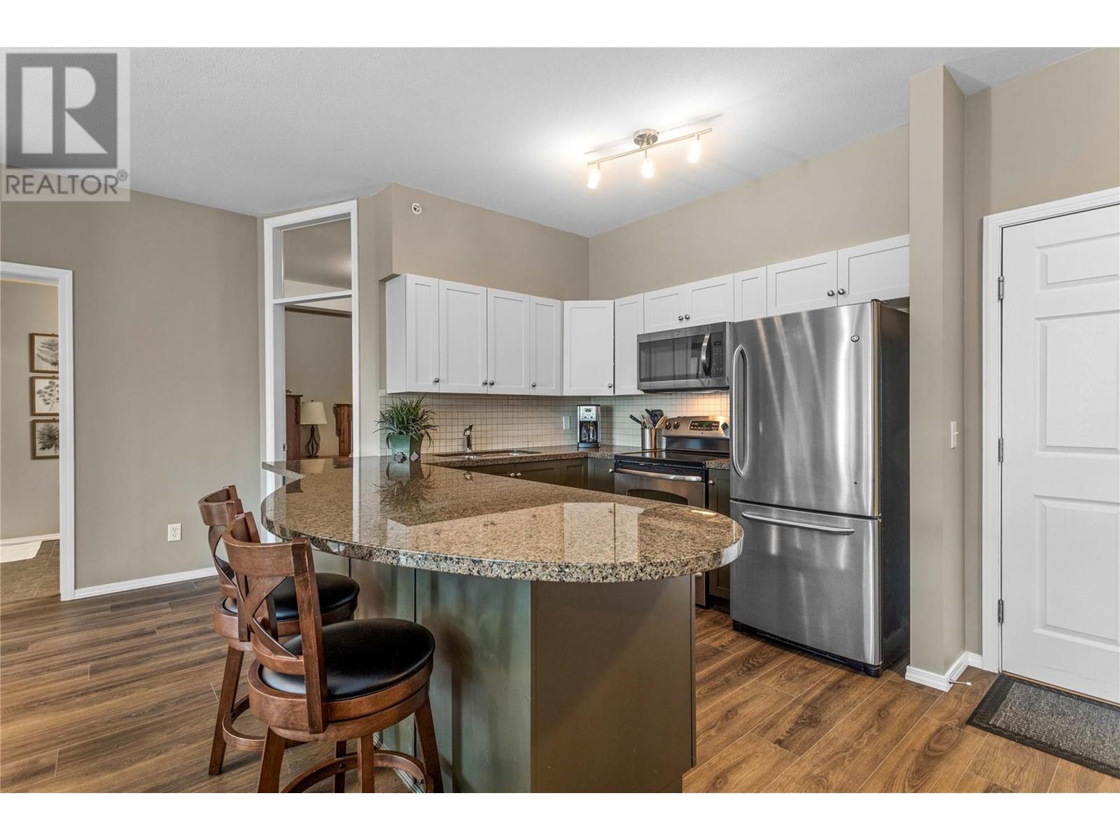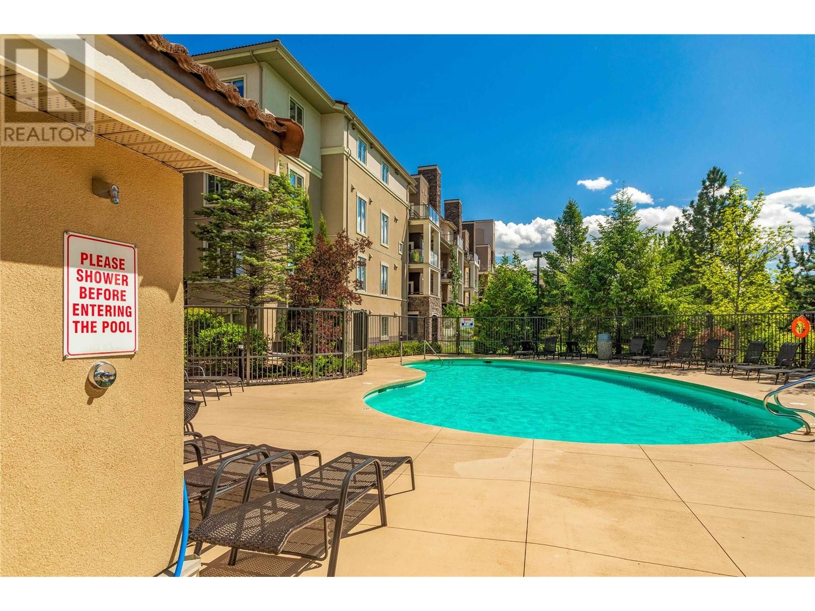 A spacious and bright home near the Bear & Quail golf courses and The University of British Columbia (Okanagan), you will love Pinnacle Pointe in Quail Ridge. This top floor unit has been recently renovated with new flooring, cupboards, and paint. The unit features a great layout that offers plenty of room with large windows allowing natural daylight in the living area and a stunning view of the forest, golf course and valley below. The unit has 1150 square feet of living space, with a split floor plan that gives you privacy and convenience. The large south facing patio backs on to the golf course and forest, perfect for enjoying your morning coffee, BBQing dinner, or relaxing with an evening beverage. The facilities include a beautiful pool and hot tub area as well as a gym and underground parking. Whether you want to live here year-round or use it as a summer getaway or rent it out to UBCO students ($3000+/mth), this unit is perfect for you. You will also have access to many amenities nearby, such as golf, wineries, grocery stores, restaurants, coffee shops, liquor store, airport, transit and more. Don't miss this chance to own this amazing unit. This fully furnished condo is vacant and ready to move in. (id:22211)