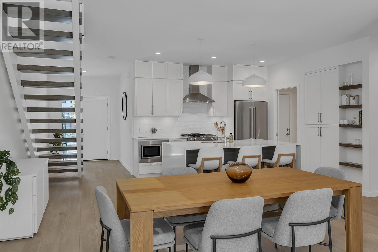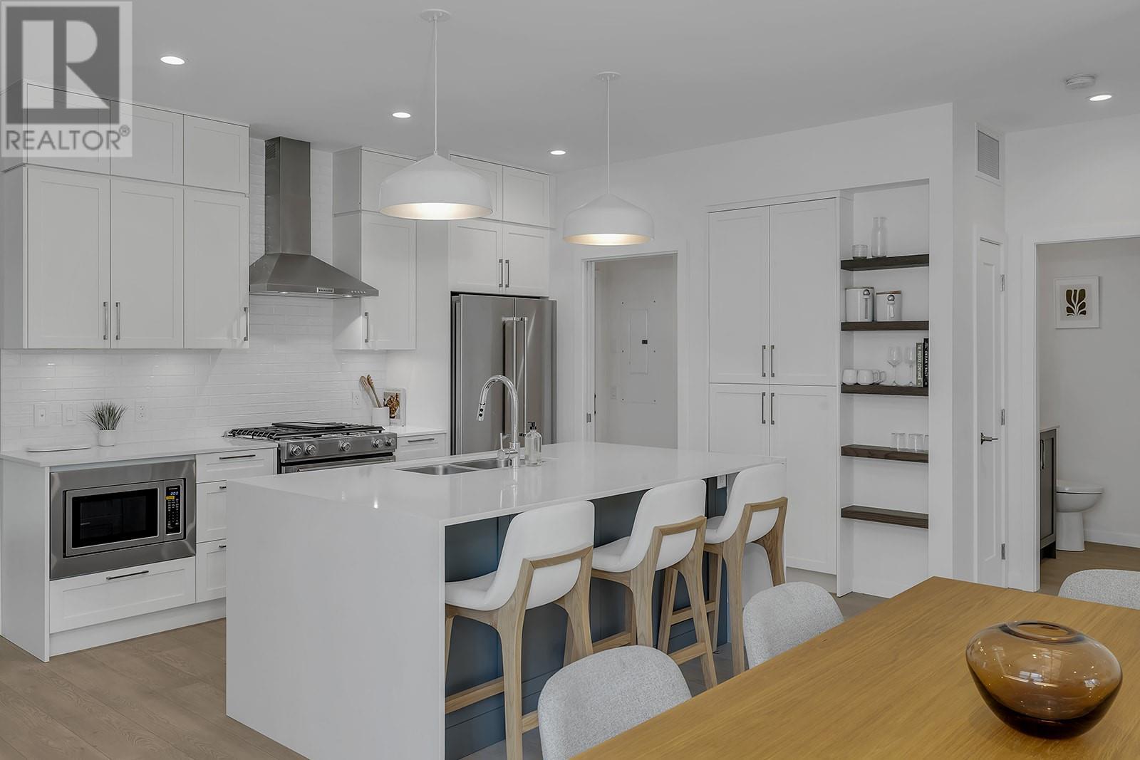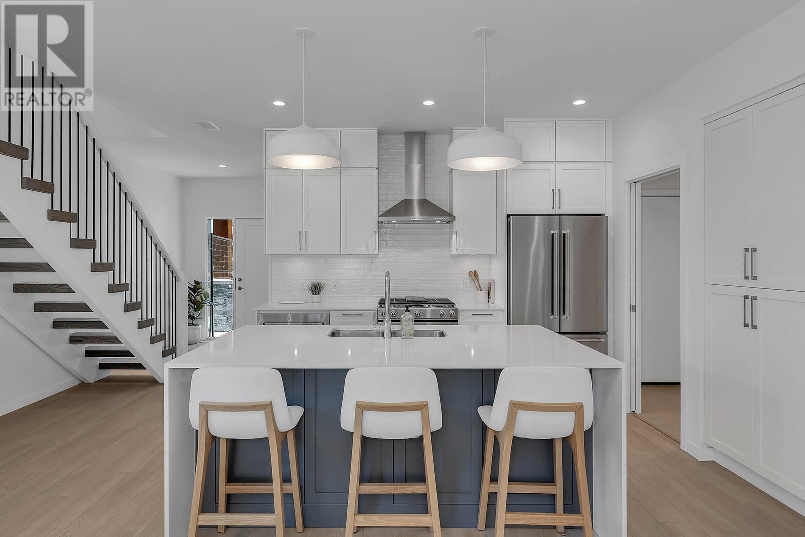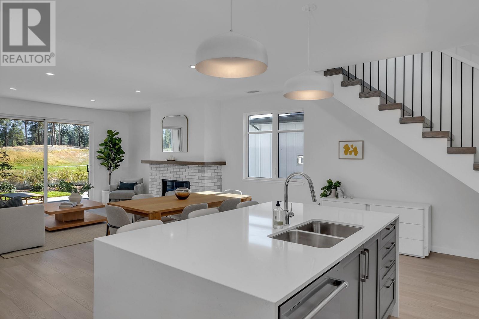 Only One Carefree Country Club Living Incentive Remaining! On the next home sale ONLY, enjoy 2 years of spousal golf memberships and monthly meals at Table Nineteen plus approx. 2 years of strata fees and property taxes covered by the Developer. A value of up to over-$53,000! Visit the showhome this Saturday & Sunday 12-4pm for all the details, or by appointment. Take advantage of BUYING NEW. This home is PTT Exempt (some conditions may apply), meaning additional savings of almost $20,000. BRAND NEW GOLF COURSE TOWNHOME with peaceful lake & golf course views. Over 1,900 sqft, featuring a main floor primary with two additional bedrooms and a den/flex area upstairs. Designer details include the open tread wood staircase, German-made laminate flooring on the main floor, LED lights, and an open floorplan. The kitchen includes KitchenAid appliances, 5-burner gas range stove, quartz countertops, waterfall island with storage on both sides, and shaker cabinetry with under cabinet lighting. Your living extends outside to your covered patio with natural gas bbq hook up and views of the 18th hole of the Quail Course. 2-5-10 Year New Home Warranty and meets step 3 of BC’s energy code. Great location for your active golf course lifestyle or the beauty of the natural scenery outside your home. Walk to the Okanagan Golf Club’s newly renovated clubhouse and Table Nineteen restaurant. Minutes to YLW, UBCO, and shopping and dining. Photos/virtual tour are of a similar home in the development. (id:22211)