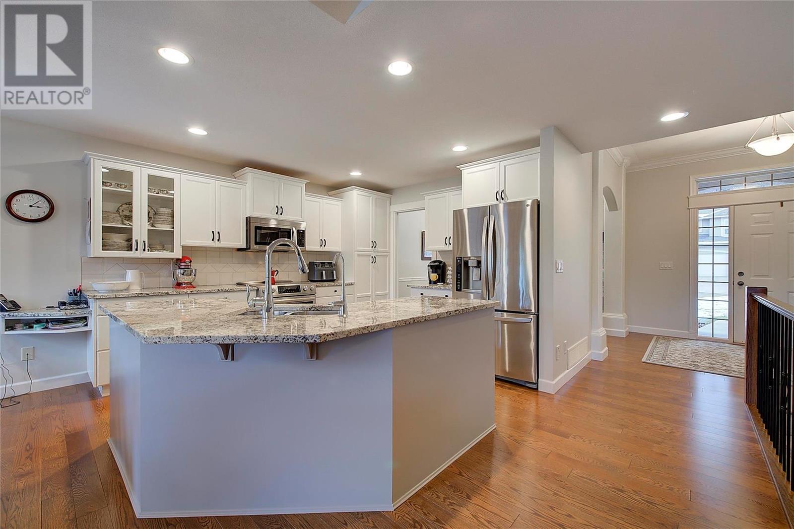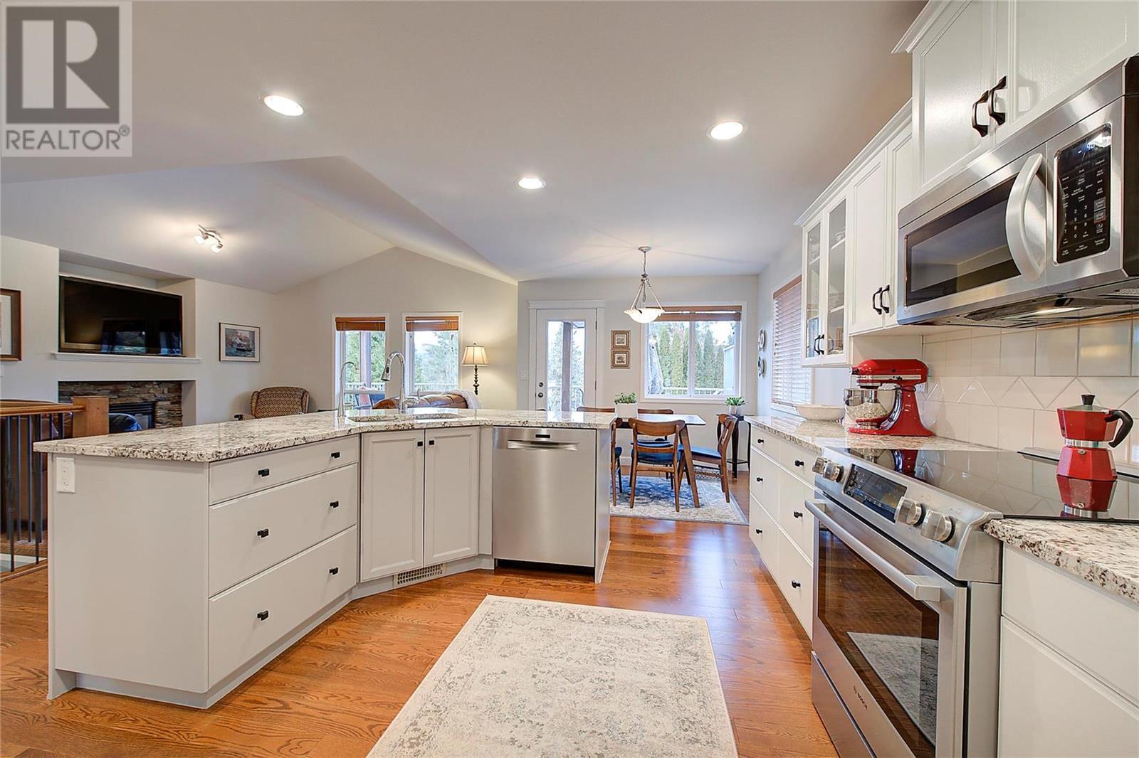 Situated in the sought after Dilworth Mountain neighbourhood, this quality walkout rancher is ideal for any family. The 2800+ sq. ft. home sits on a .247 acre lot with large and private backyard (room for a pool) and two covered patios - great for entertaining. Open concept main living area showcases vaulted ceilings in the great room with cozy fireplace, a spacious kitchen with granite counters, new appliances, and an elegant dining room. New hardwood floors throughout the main floor. Primary bedroom is conveniently located on the main floor and offers 3pc en-suite and large closet. Second bedroom and laundry room complete the main floor. Great lower level with 3rd and 4th bedrooms, full bathroom, and large rec/family room- could be converted into suite. Plenty of storage throughout and a large double garage with additional boat/RV parking. Hiking and snowshoeing right out the back door, and within minutes from restaurants, shops, schools, and more - this location is ideal. (id:22211)