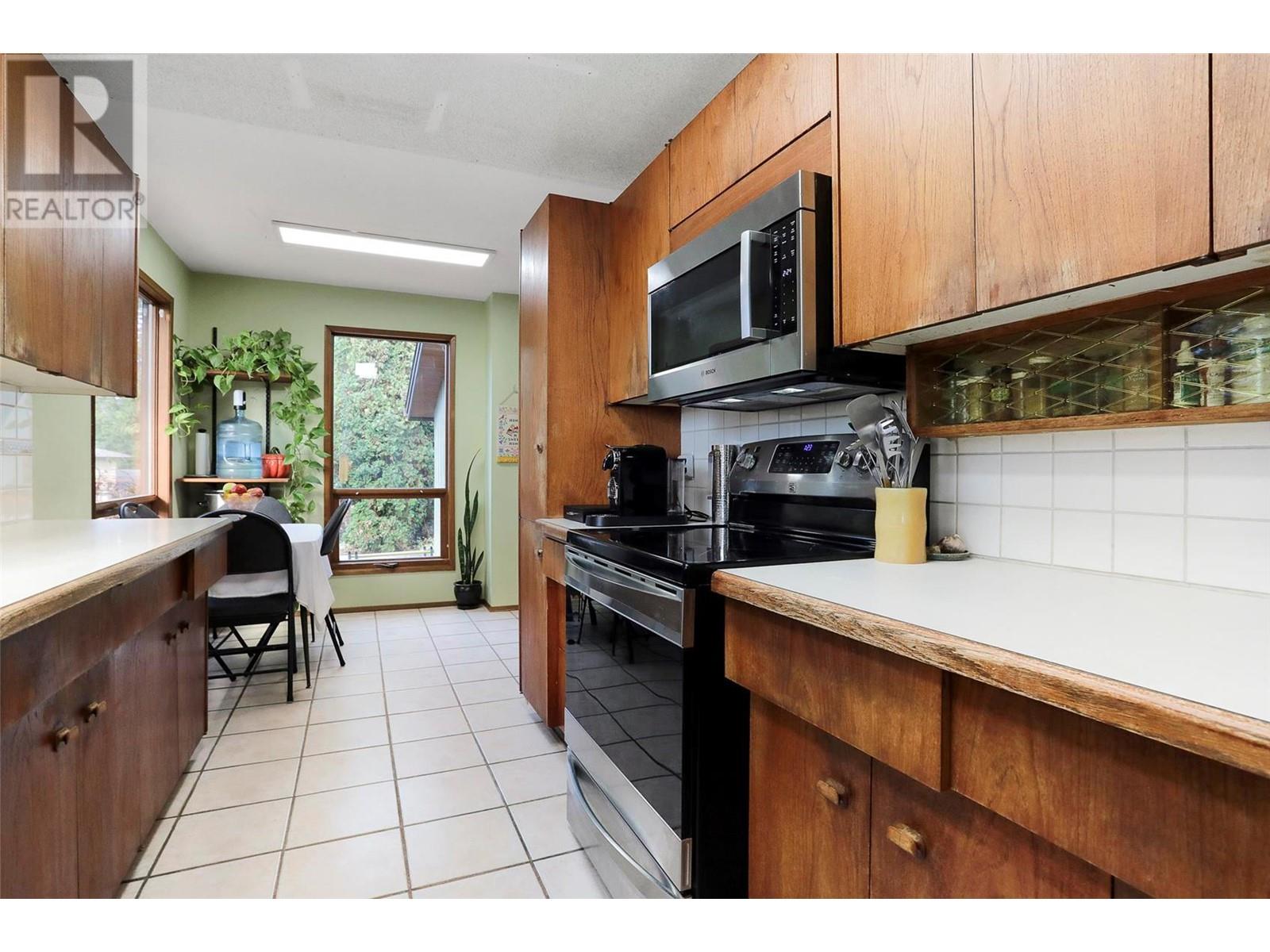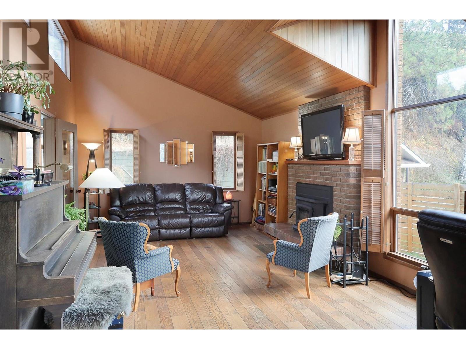 Not to be missed! This rare West Coast contemporary is nestled in one of Kelowna’s best neighbourhoods, in a private, country like setting yet close to town. These homes are hard to find; upon entry you are greeted by stunning vaulted cedar ceilings, hardwood floors and a cozy wood burning fireplace. The expansive windows, stretching to the floor, bathe all rooms with light and views and the vaulted ceilings continue throughout the house. This multi level home totals 4 bedrooms, 2 1/2 bathrooms and tons of storage. The .31 acre property includes a double carport with an attached workshop and, best of all, an upper deck featuring a lake view and gorgeous sunsets. Truly a unique opportunity! (id:22211)
