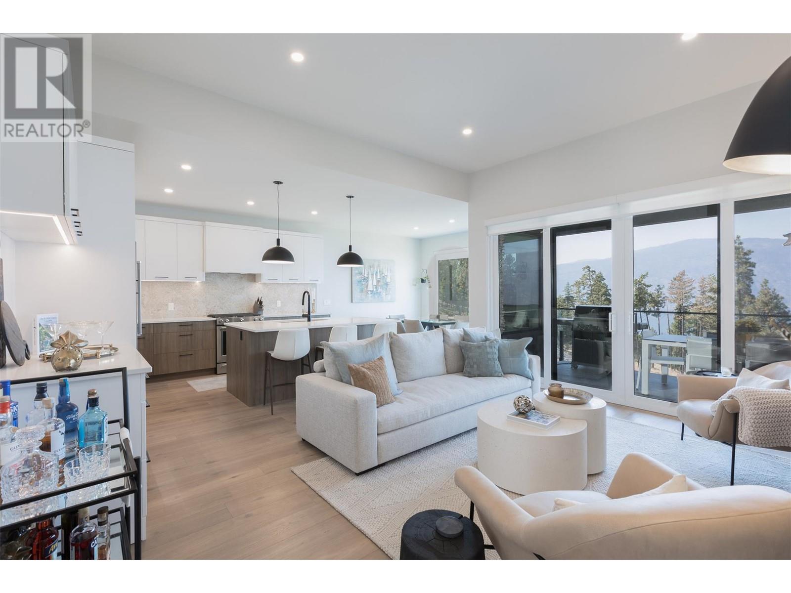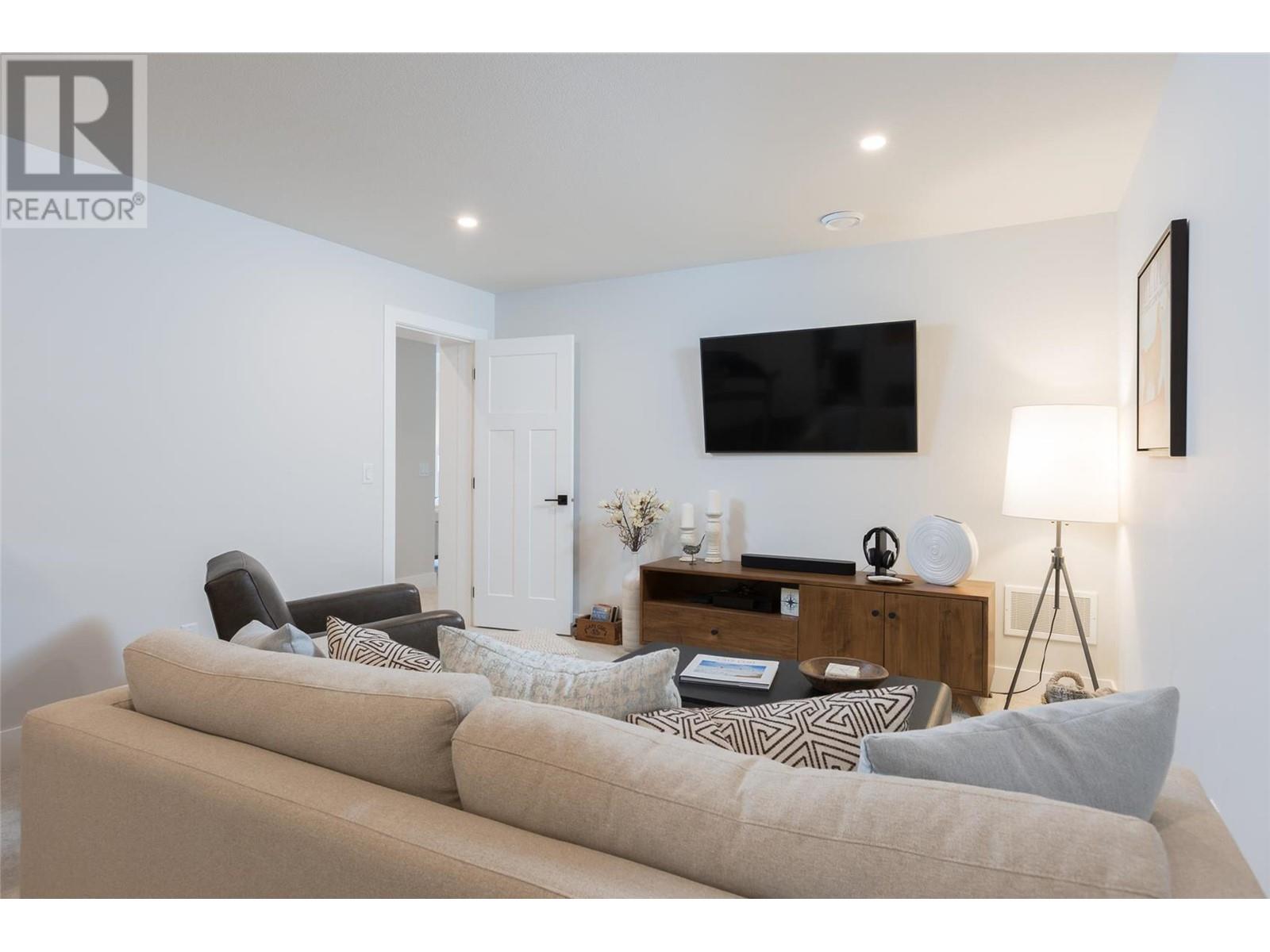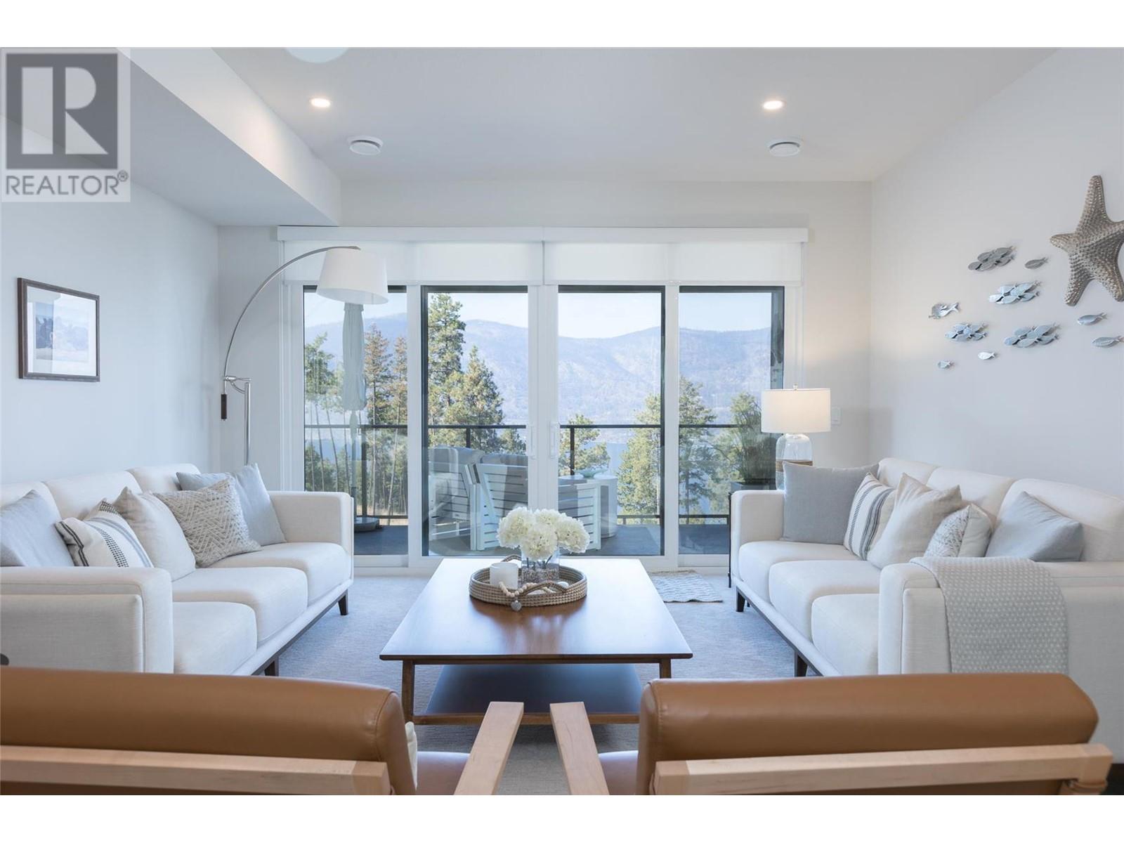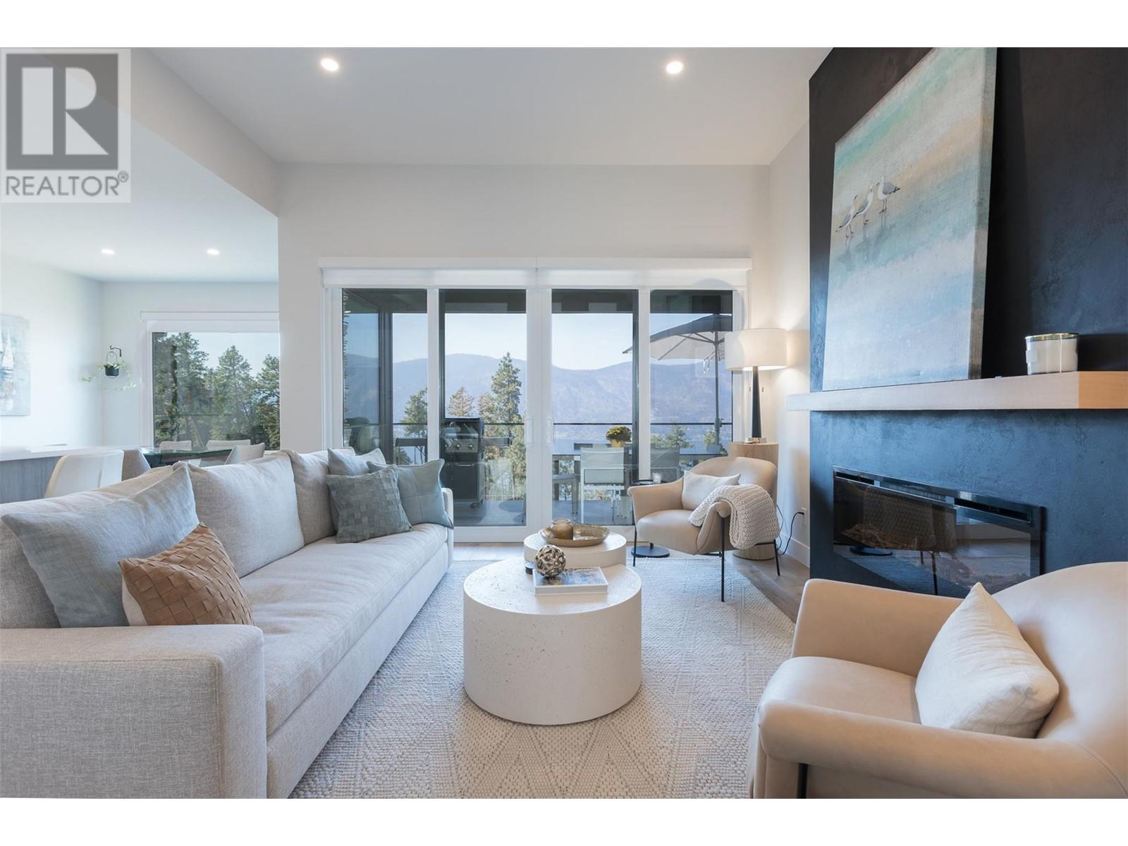 Experience luxury living in this meticulously designed walkout rancher home with a stunning lake view.The main level boasts a primary bedroom with ensuite and walk-in closet, while the lower walkout level offers 2 additional bedrooms.Light oak plank flooring runs throughout the main floor,leading to a covered deck with panoramic lake views.The designer kitchen and feature fireplace wall create an elegant focal point.Additional features include a powder room and laundry space on the main level,while the lower level offers a storage room,open family room,media room,and a full bath.This home backs onto a scenic walking path,providing both privacy and the convenience of a bareland strata.McKinley Beach,a desirable community, just 15 minutes from Kelowna International Airport and offers a community garden, pickleball/tennis courts, private marina,play park and upcoming rec centre with indoor pool & retail services.Experience lakeside luxury living in a thriving community at its finest. (id:22211)