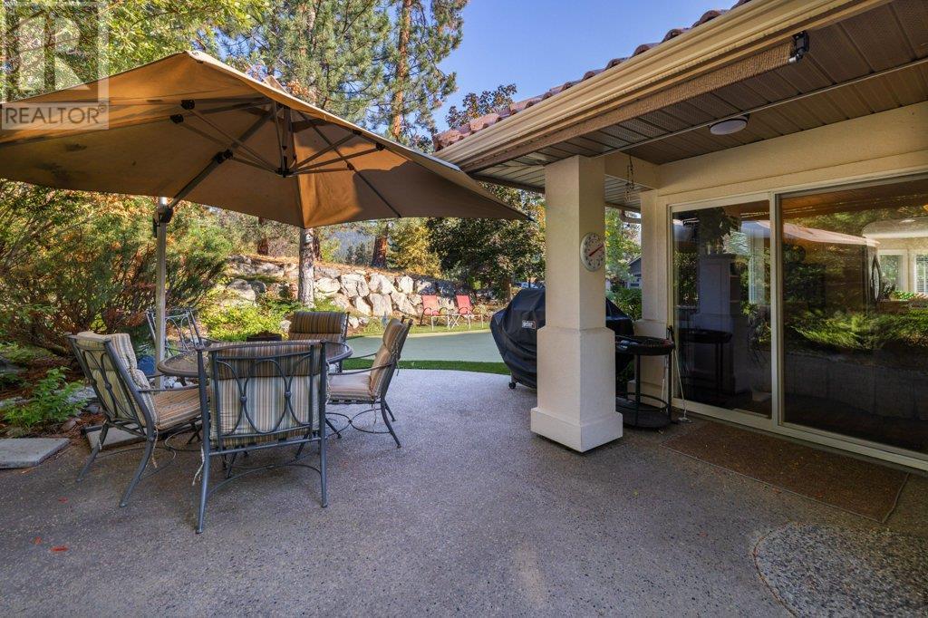 This is the one you’ve been waiting for! One of the best locations in Gallaghers, close to the Club House yet positioned in a quiet and private setting at the end of a cul de sac. This 2 bed 2 bath rancher has been thoroughly updated with all major mechanical items upgraded. New A/C, furnace, hot water on demand, poly-b replaced, but it doesn’t end there - a renovated kitchen with new appliances, both bathrooms fully renovated with master ensuite featuring a luxurious stand up shower. New flooring, washer/dryer, brand new syn-lawn chipping and putting green, new garage door, the list goes on. If you want a worry free turn key Gallaghers home this is it! Experience the true Okanagan lifestyle in the highly sought after gated Gallaghers Canyon community, offering an impressive array of amenities, including a fitness center, tennis courts, indoor pool, games room, art studio, workshop, golf club restaurant, and access to two spectacular golf courses. (id:22211)